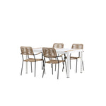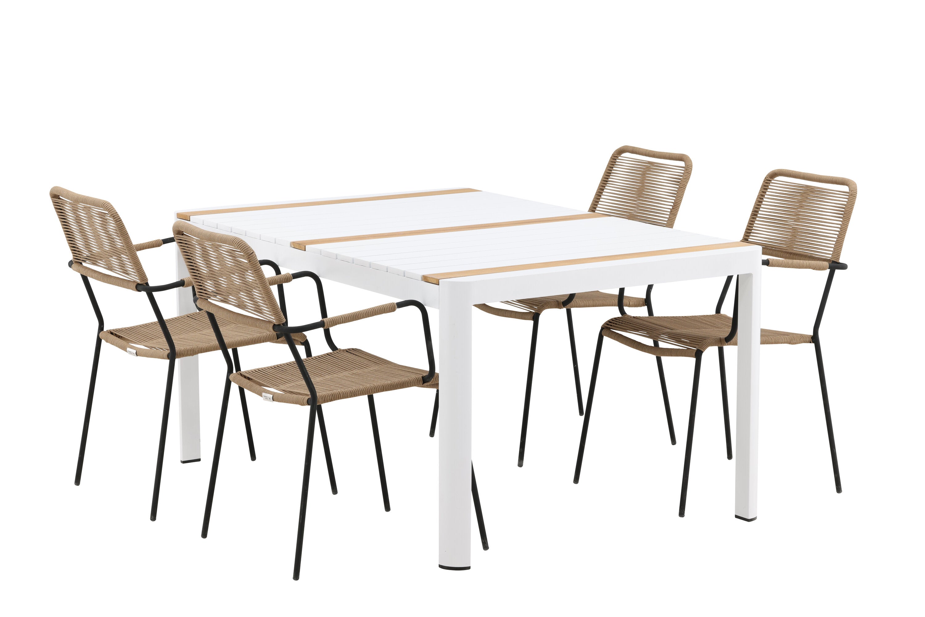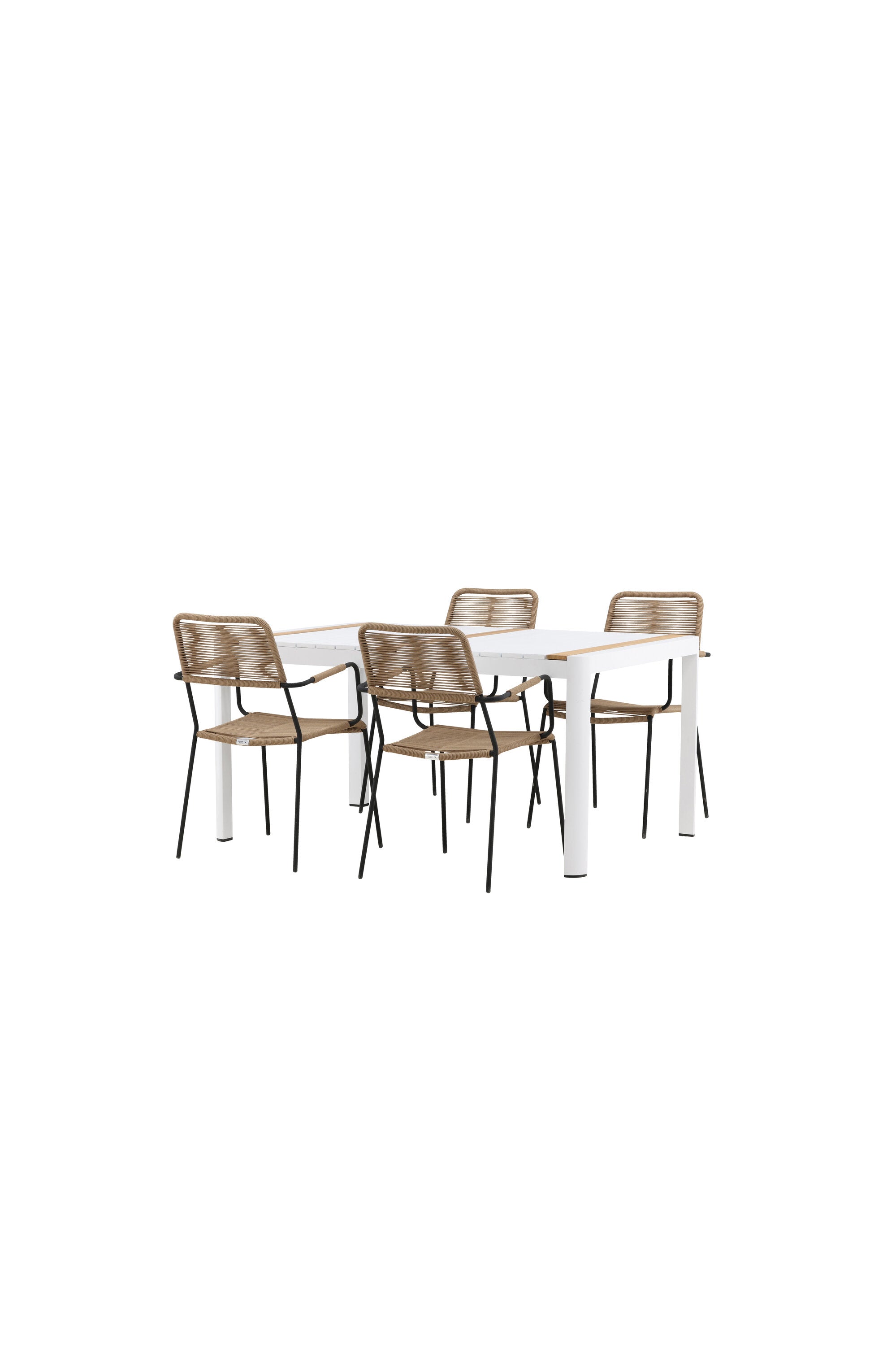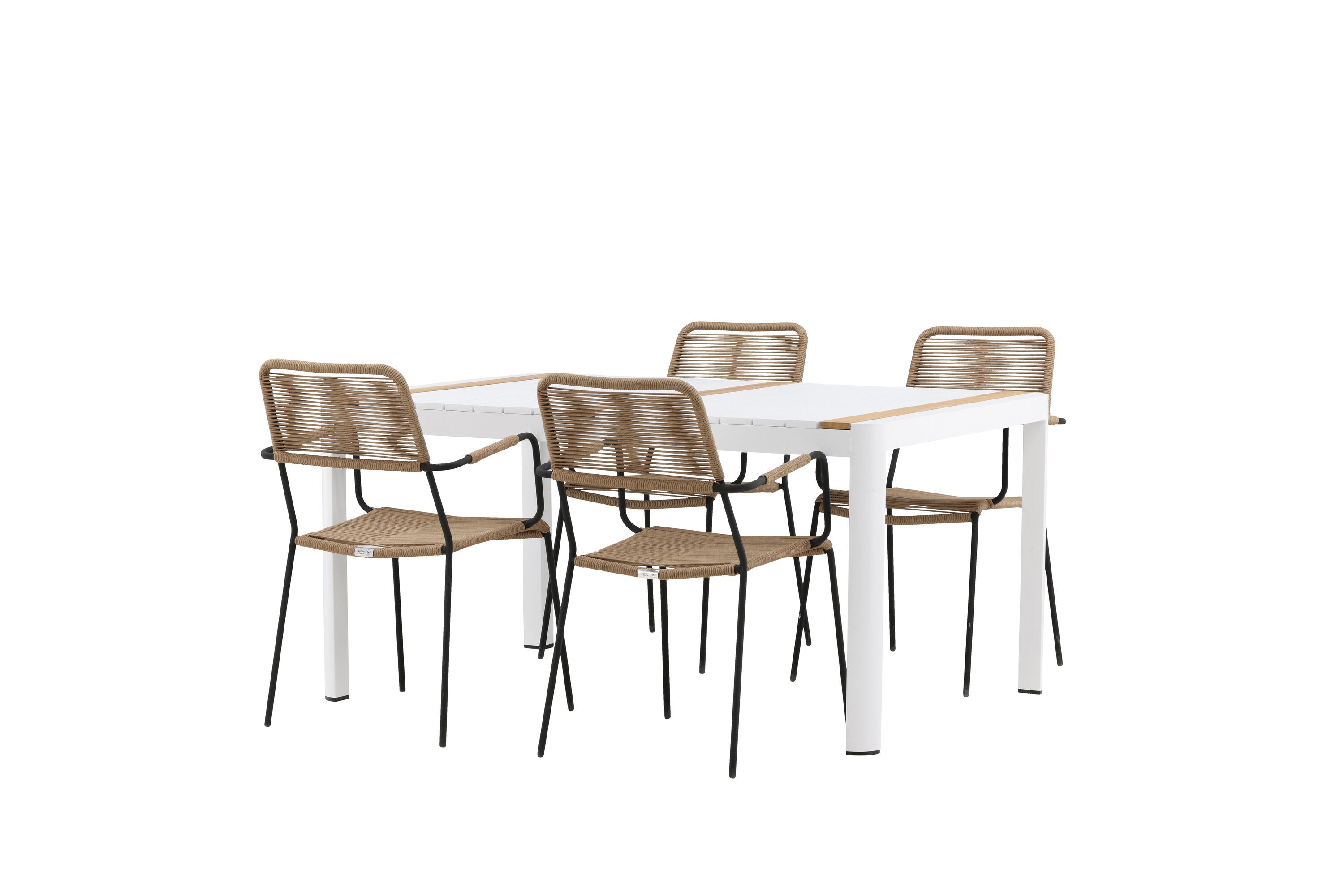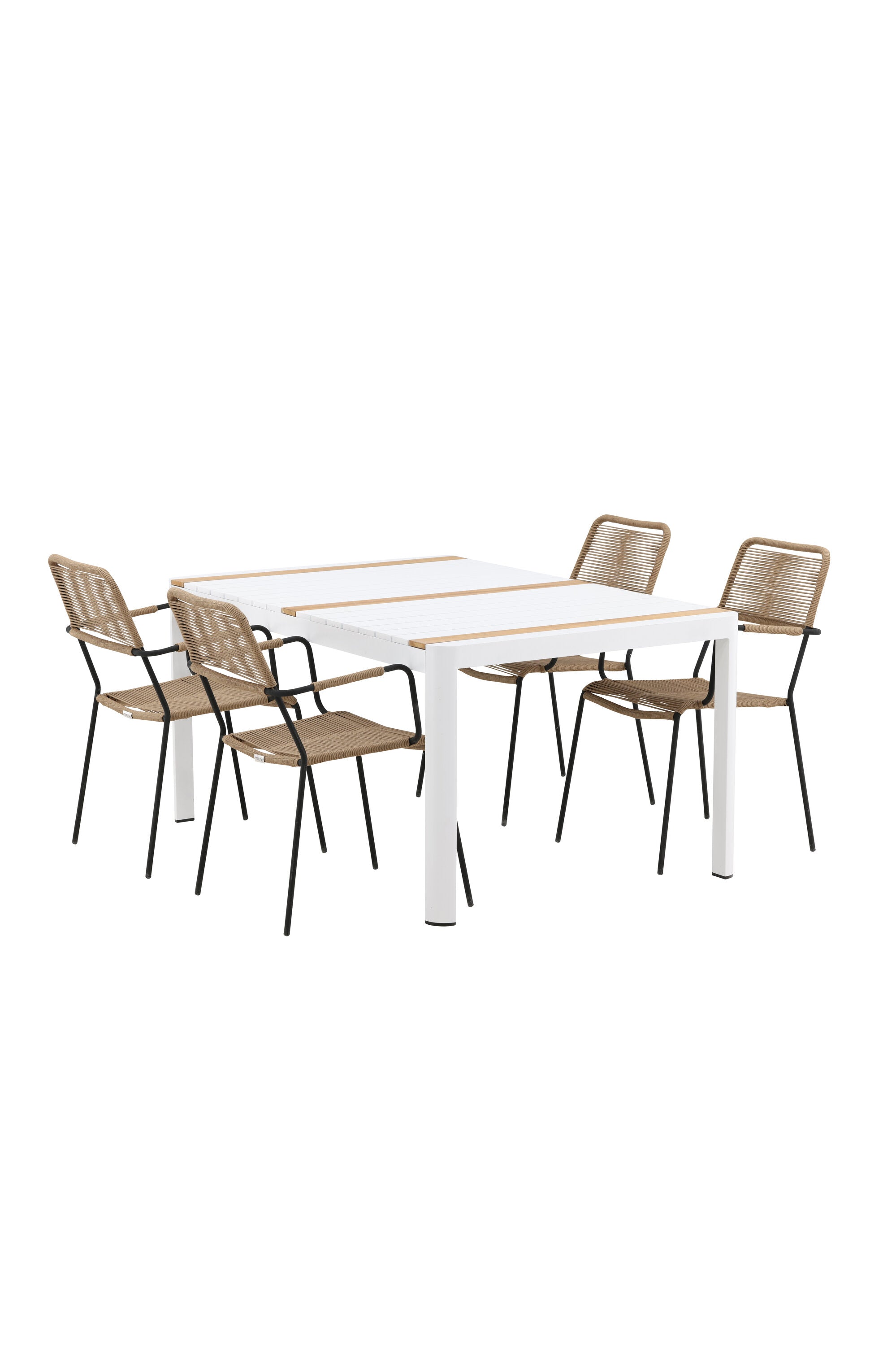 Togo - Jídelní stůl - Bílá / Teak - Allu / Teak - 150*100 _1+ Lindos - Křeslo - Black Alu / Latte Latte _4