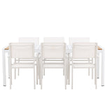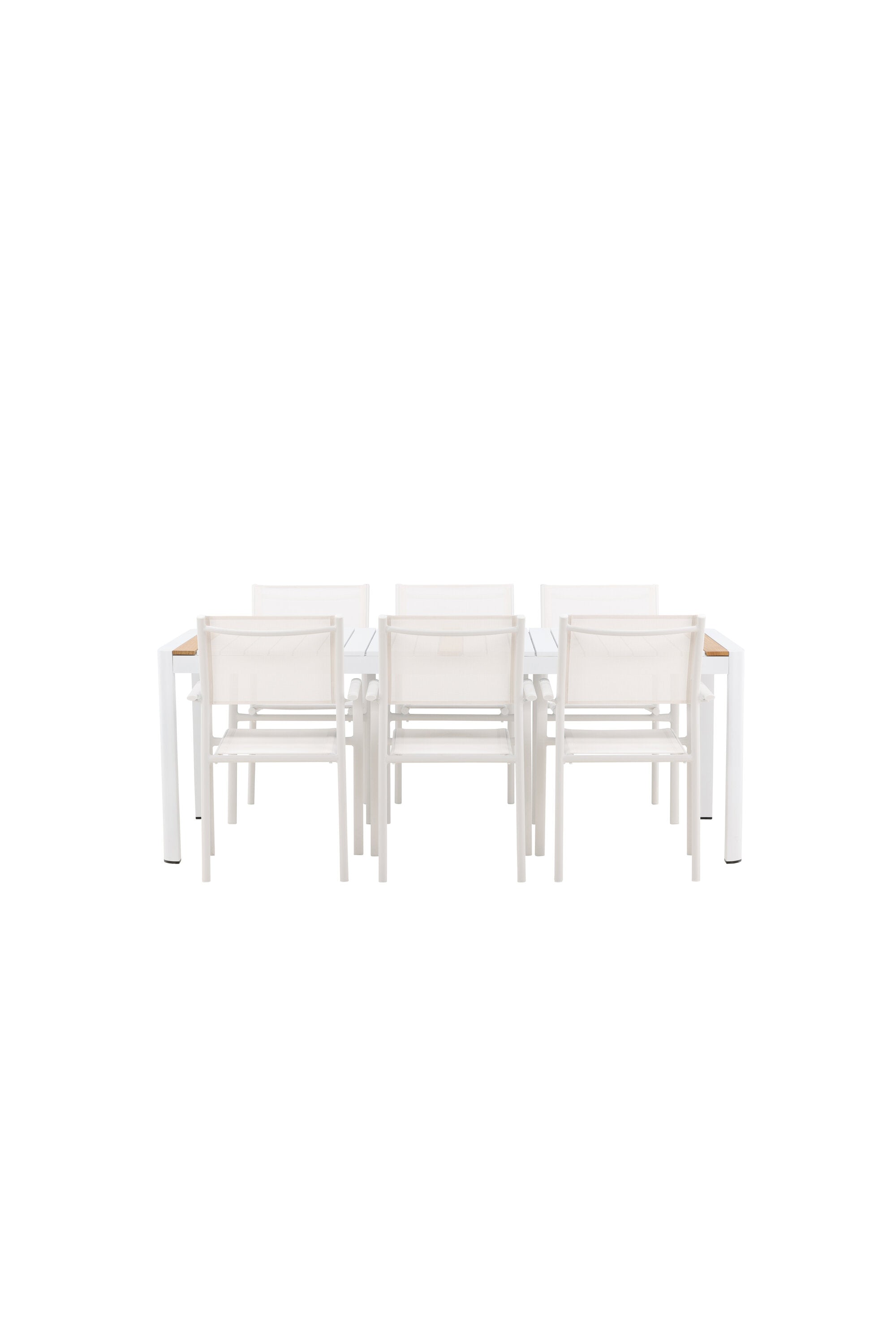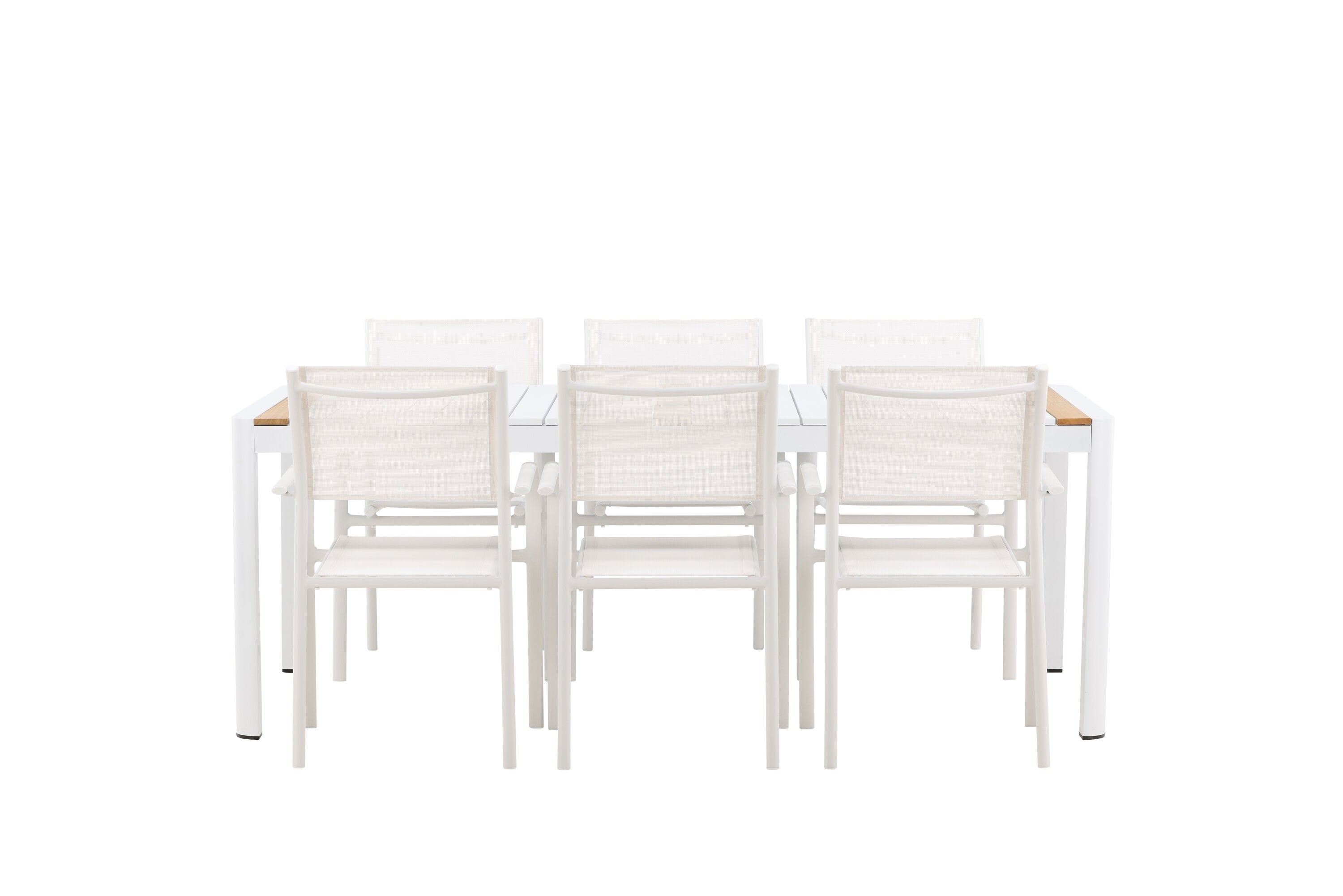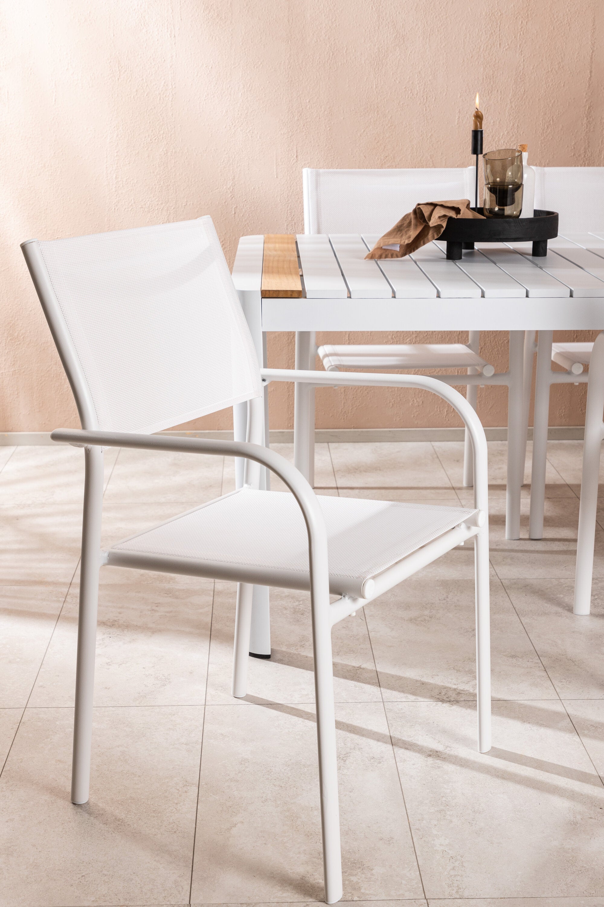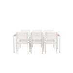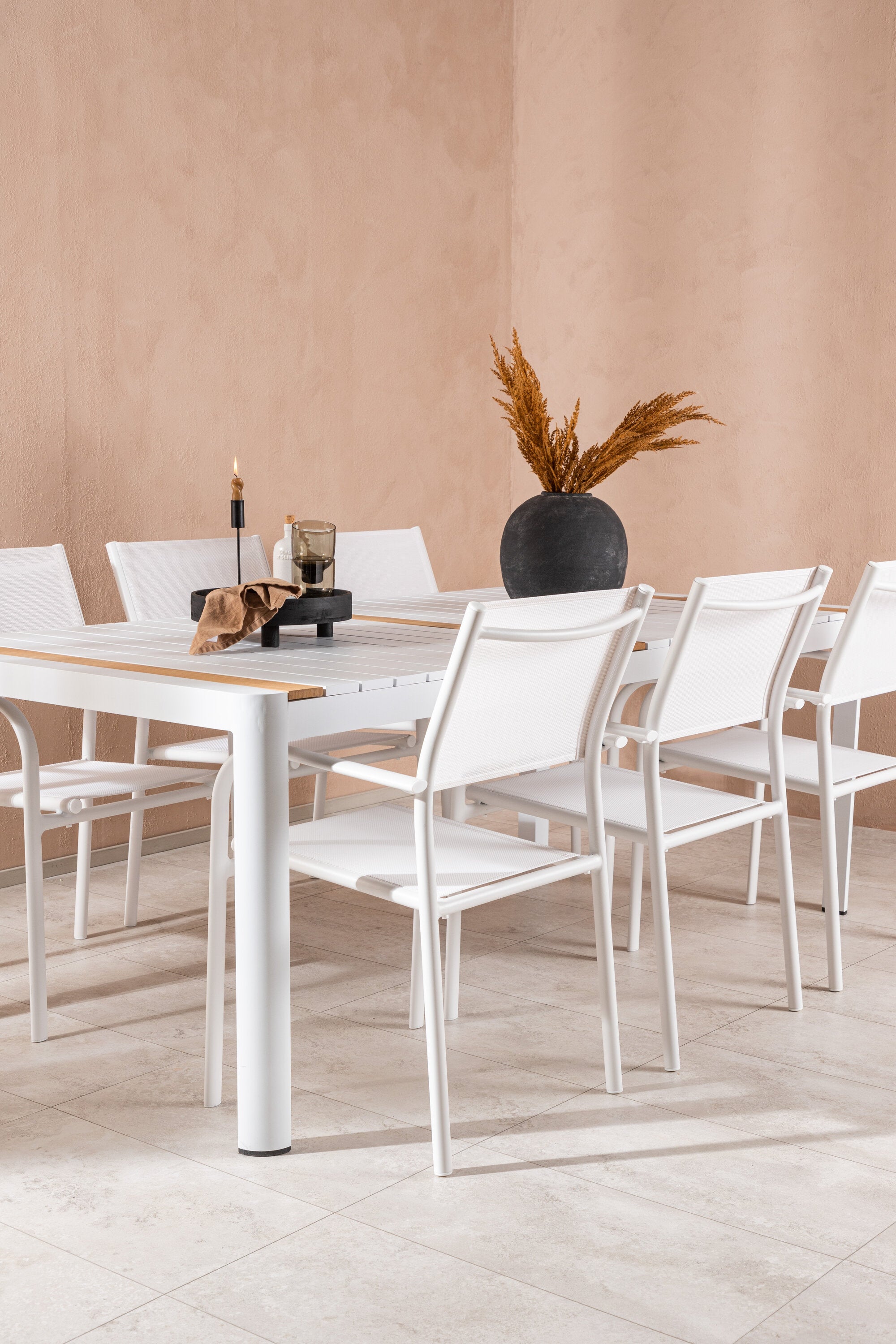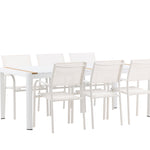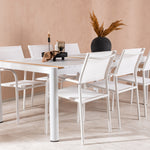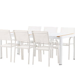 Togo - Jídelní stůl - Bílá / Teak - Allu / Teak - 200*100 + křeslo Santorini (stohovatelné) - Bílá Alu / Bílá textilie _6