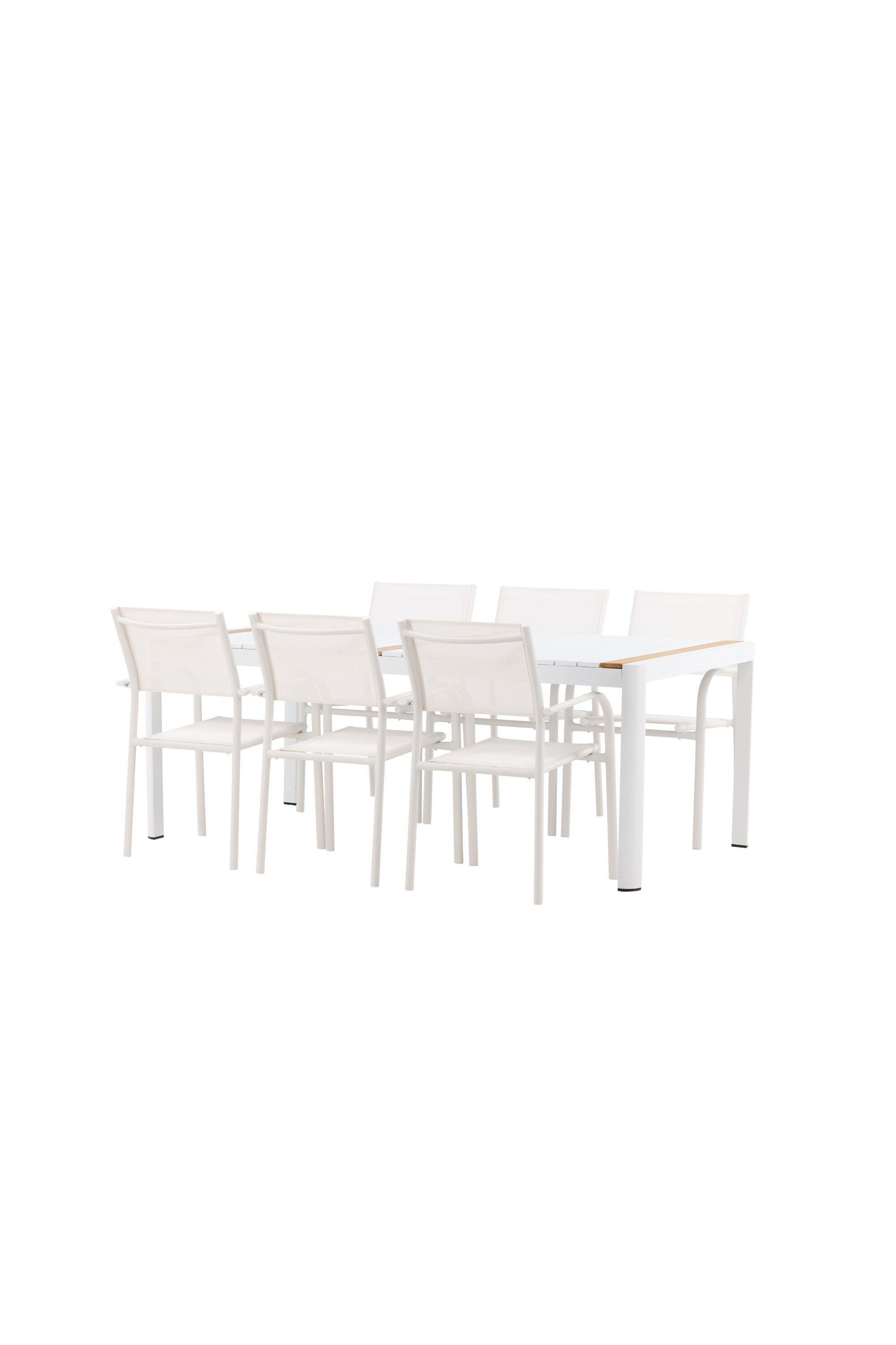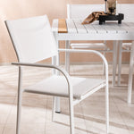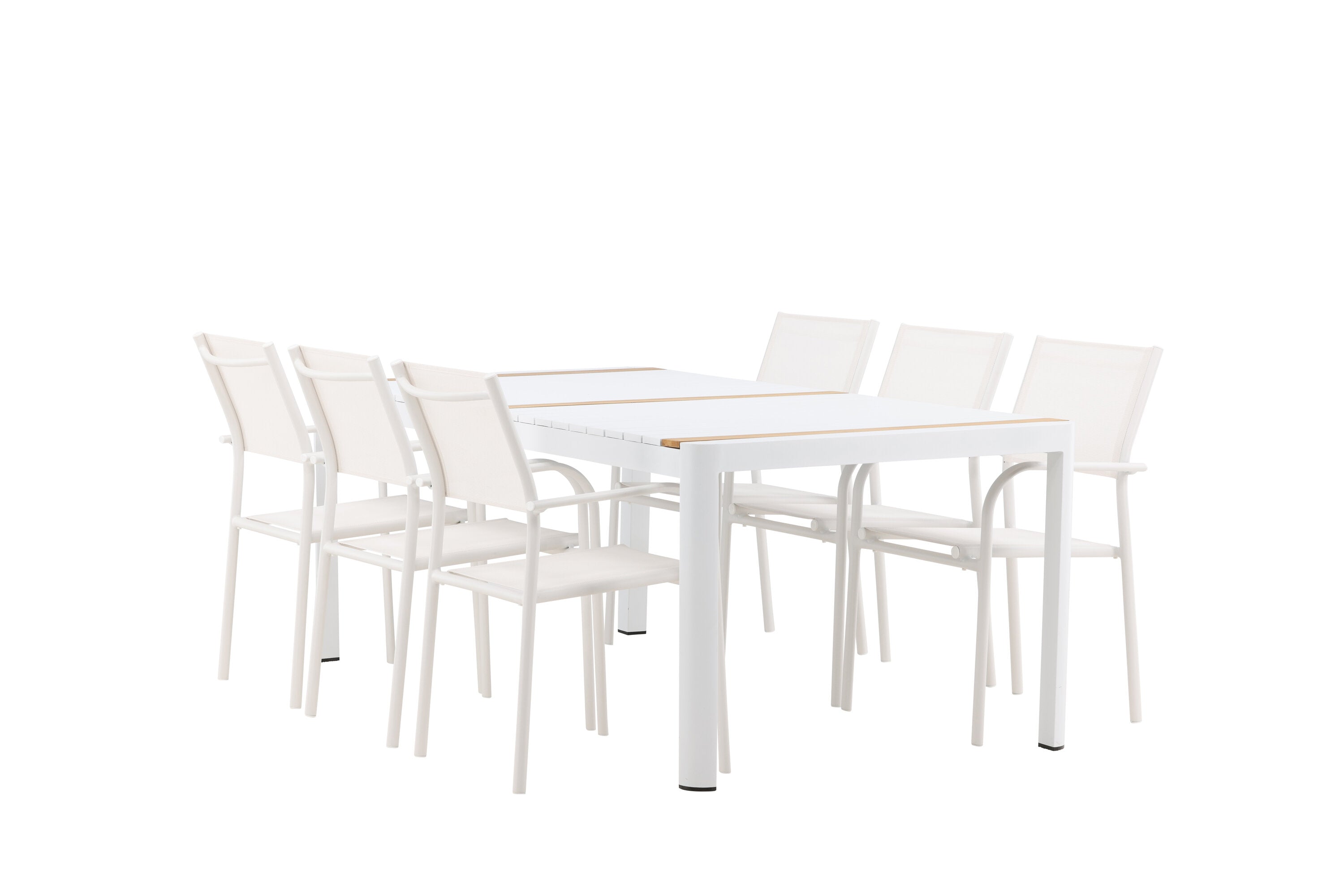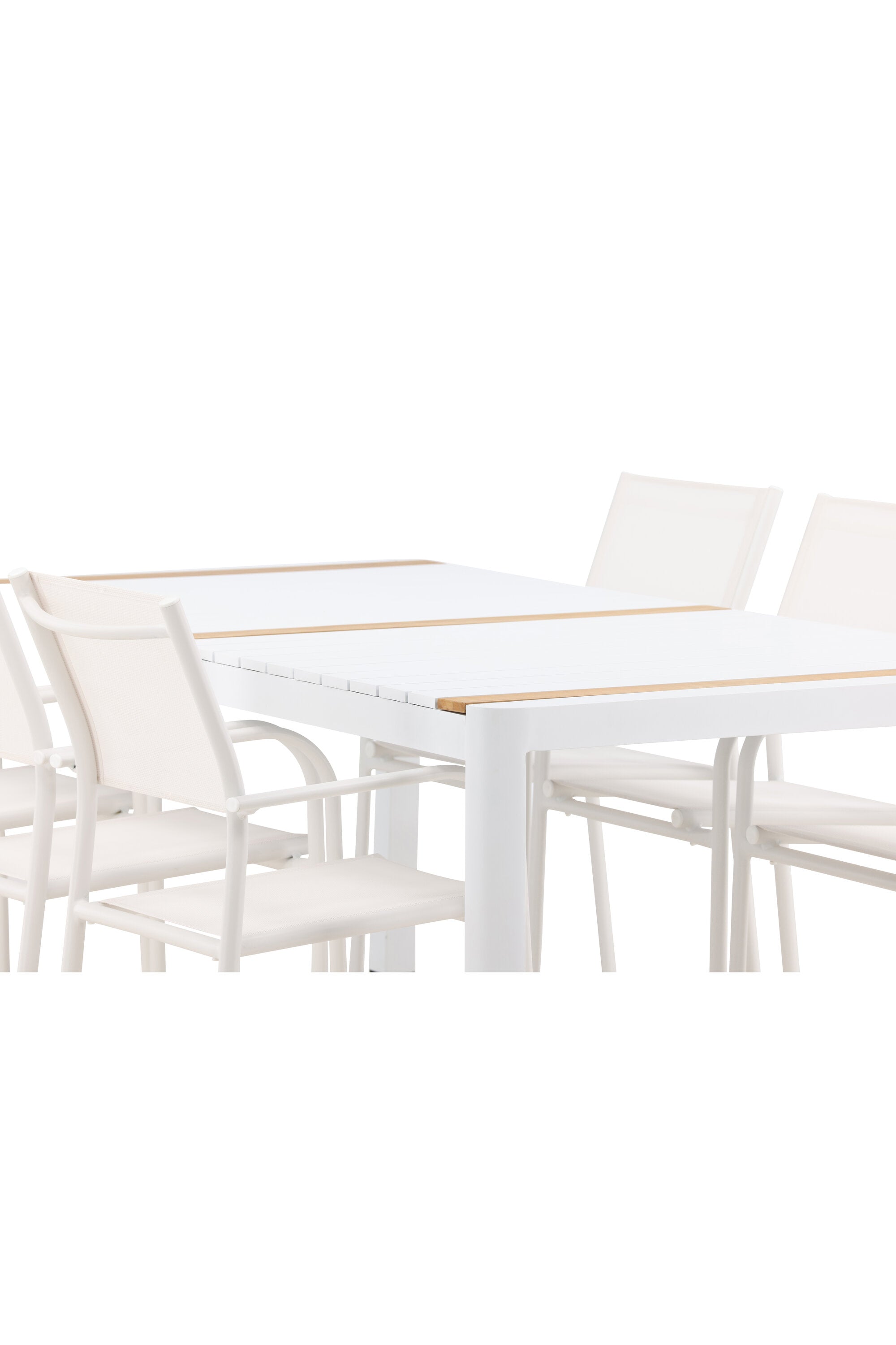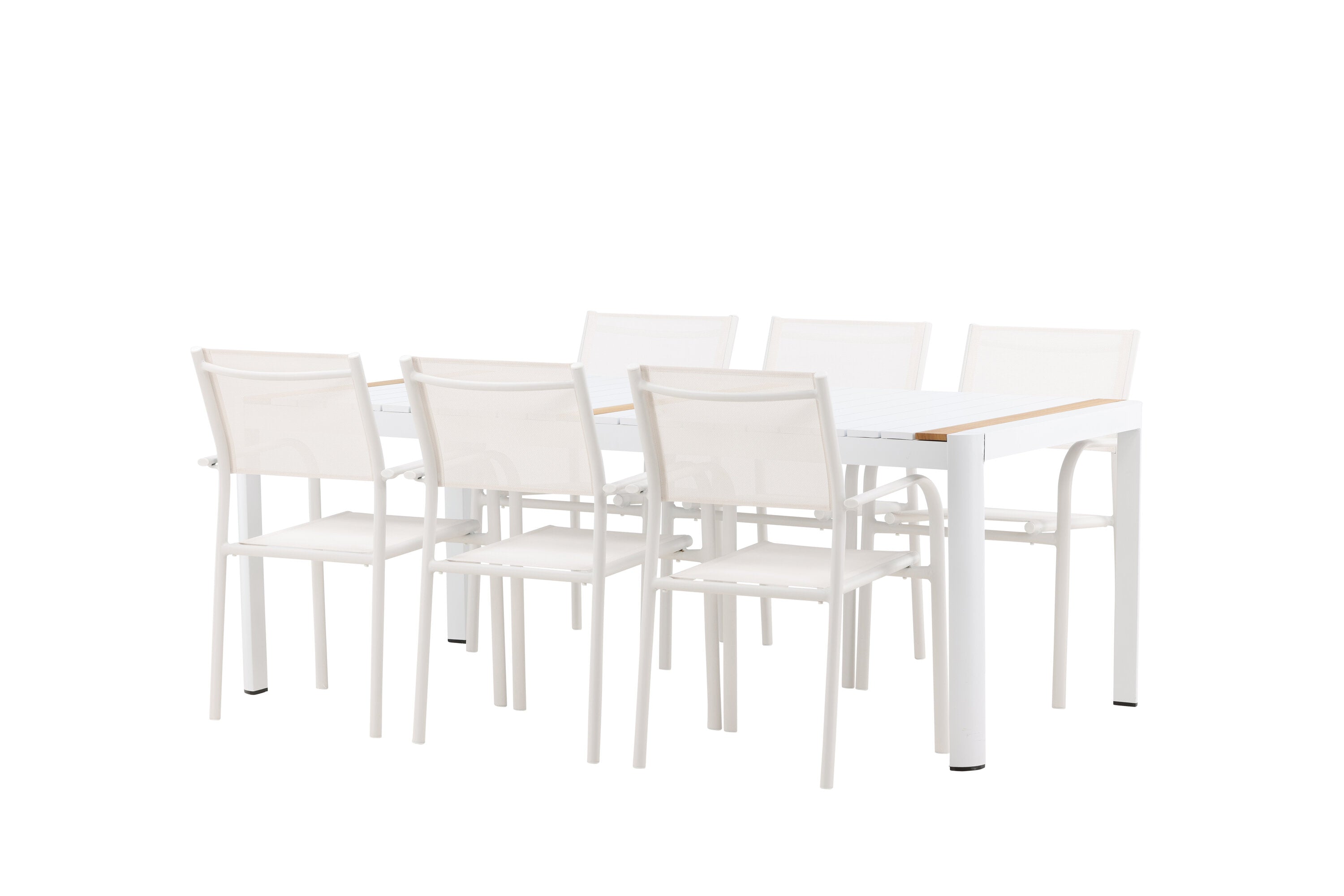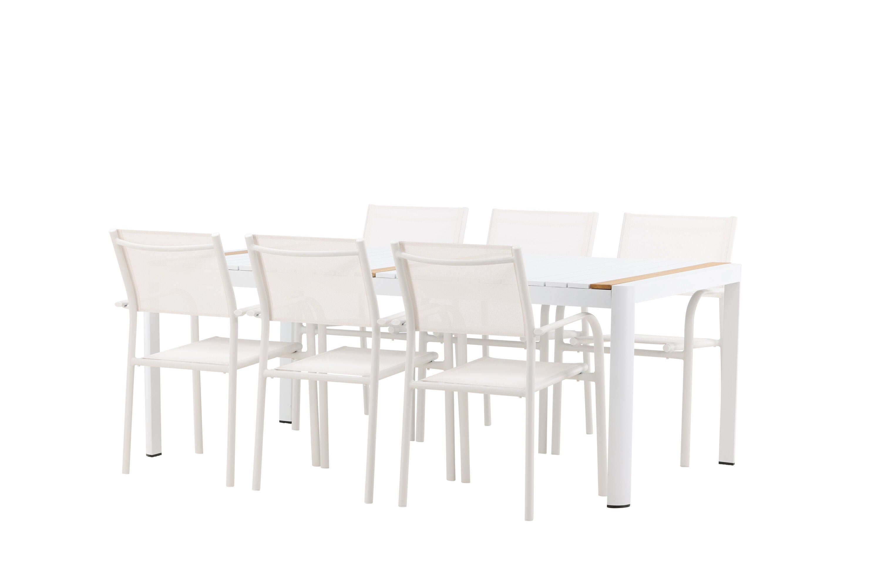 Togo - Jídelní stůl - Bílá / Teak - Allu / Teak - 200*100 + křeslo Santorini (stohovatelné) - Bílá Alu / Bílá textilie _6