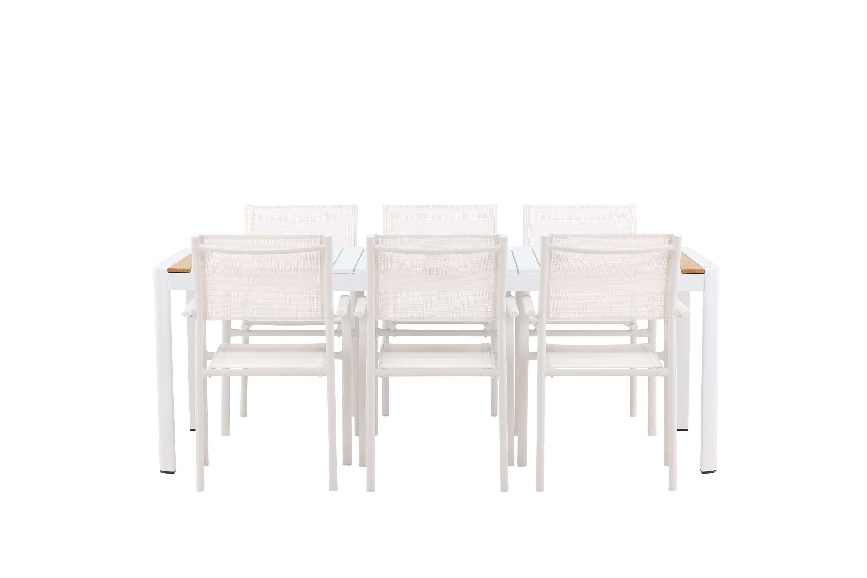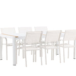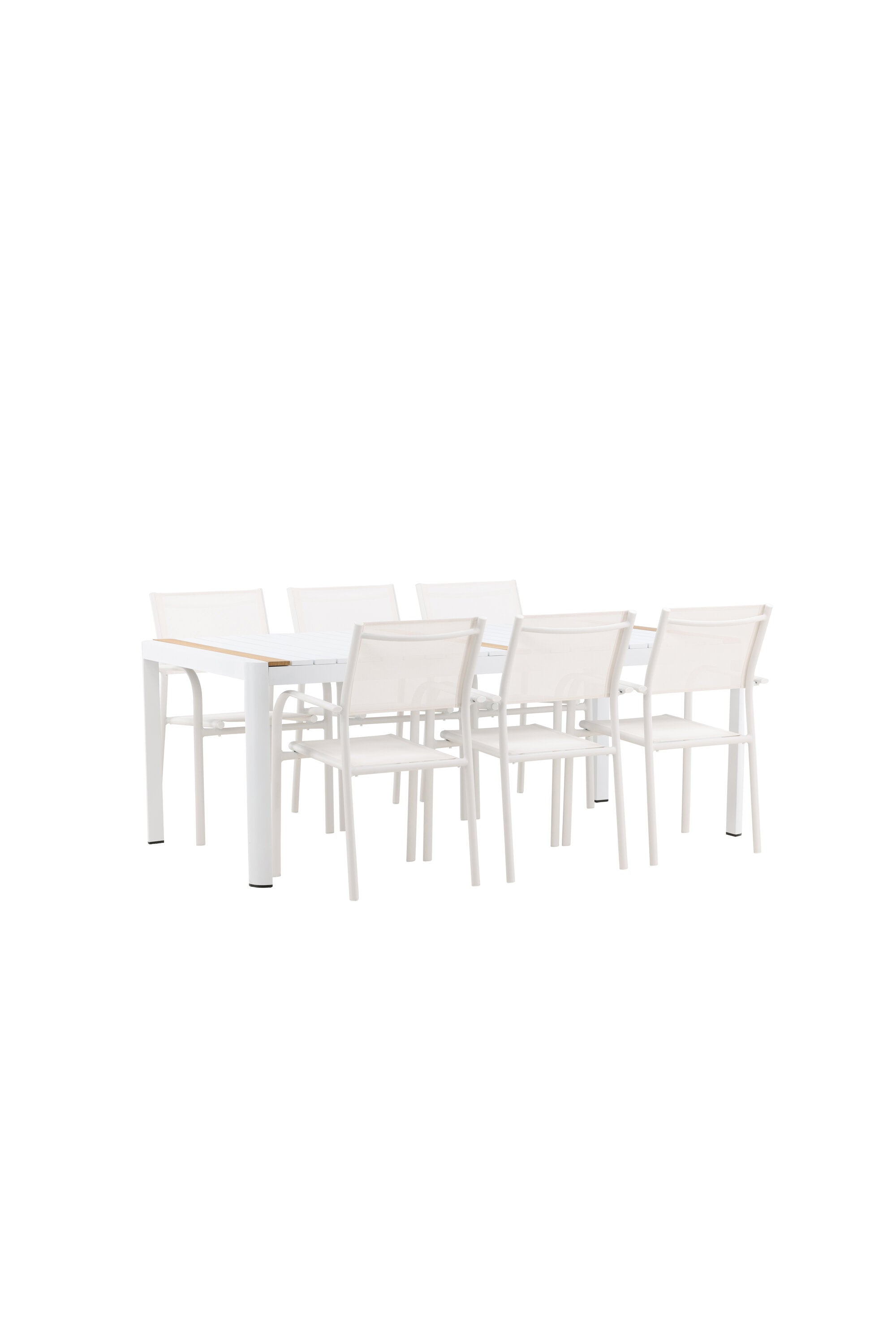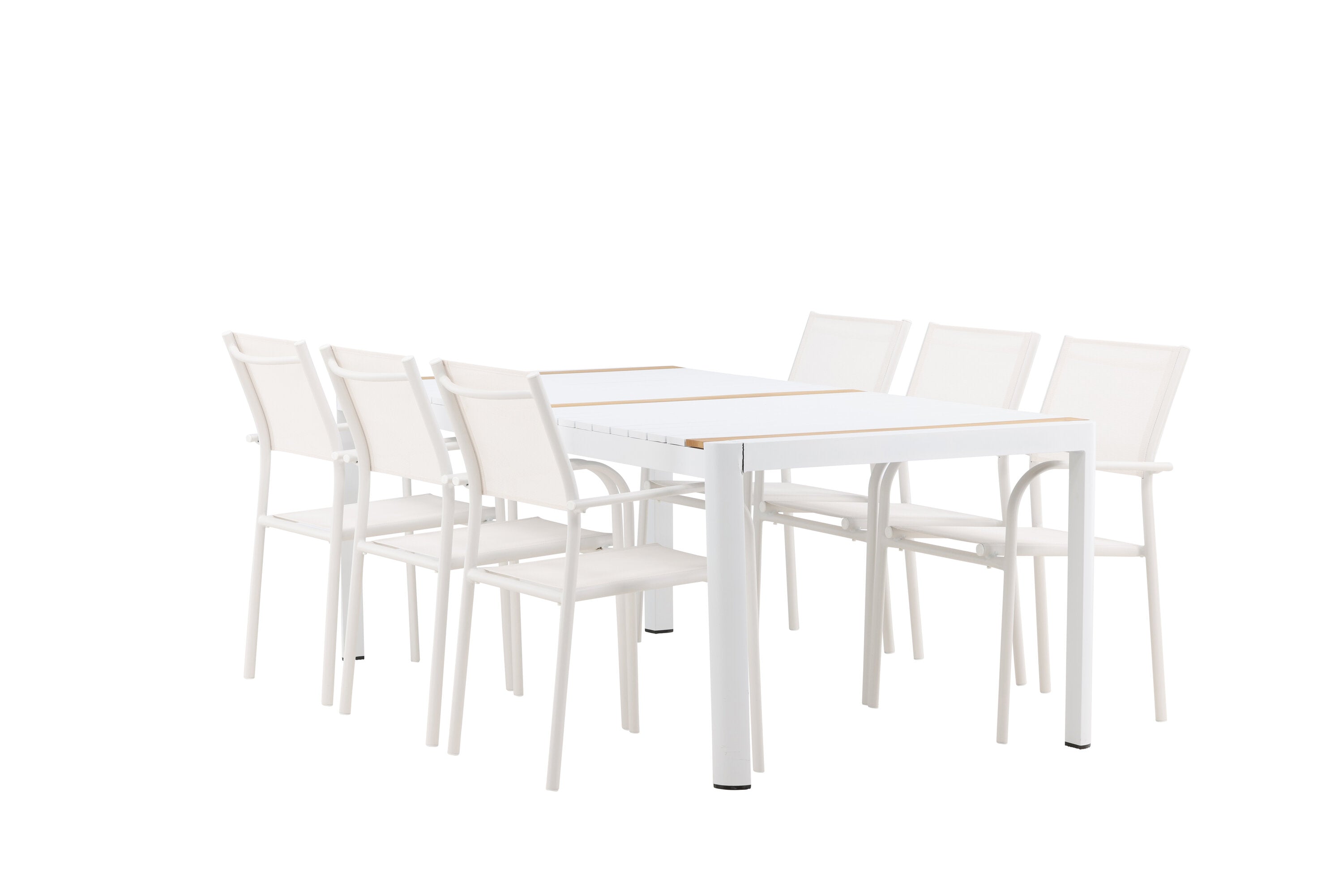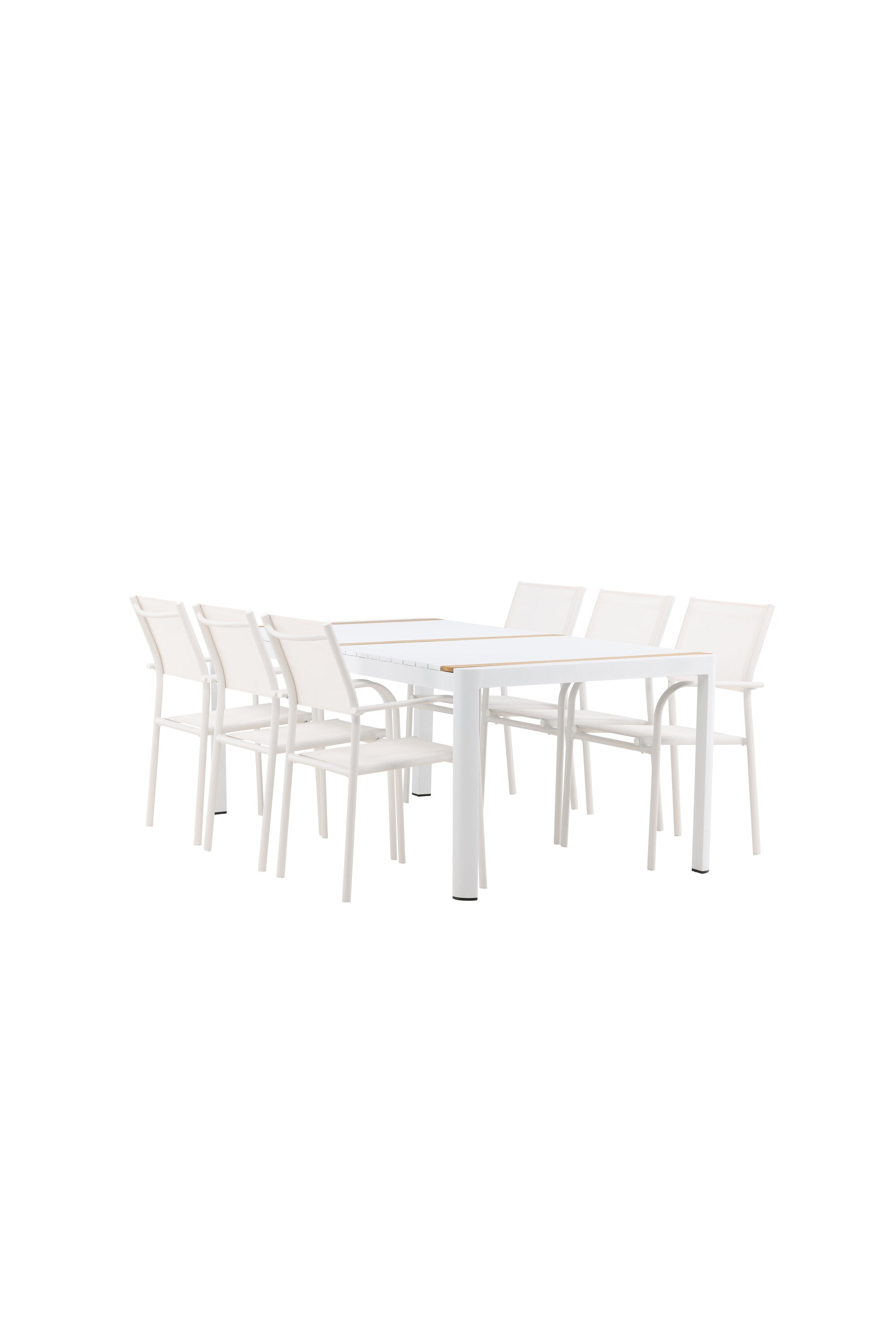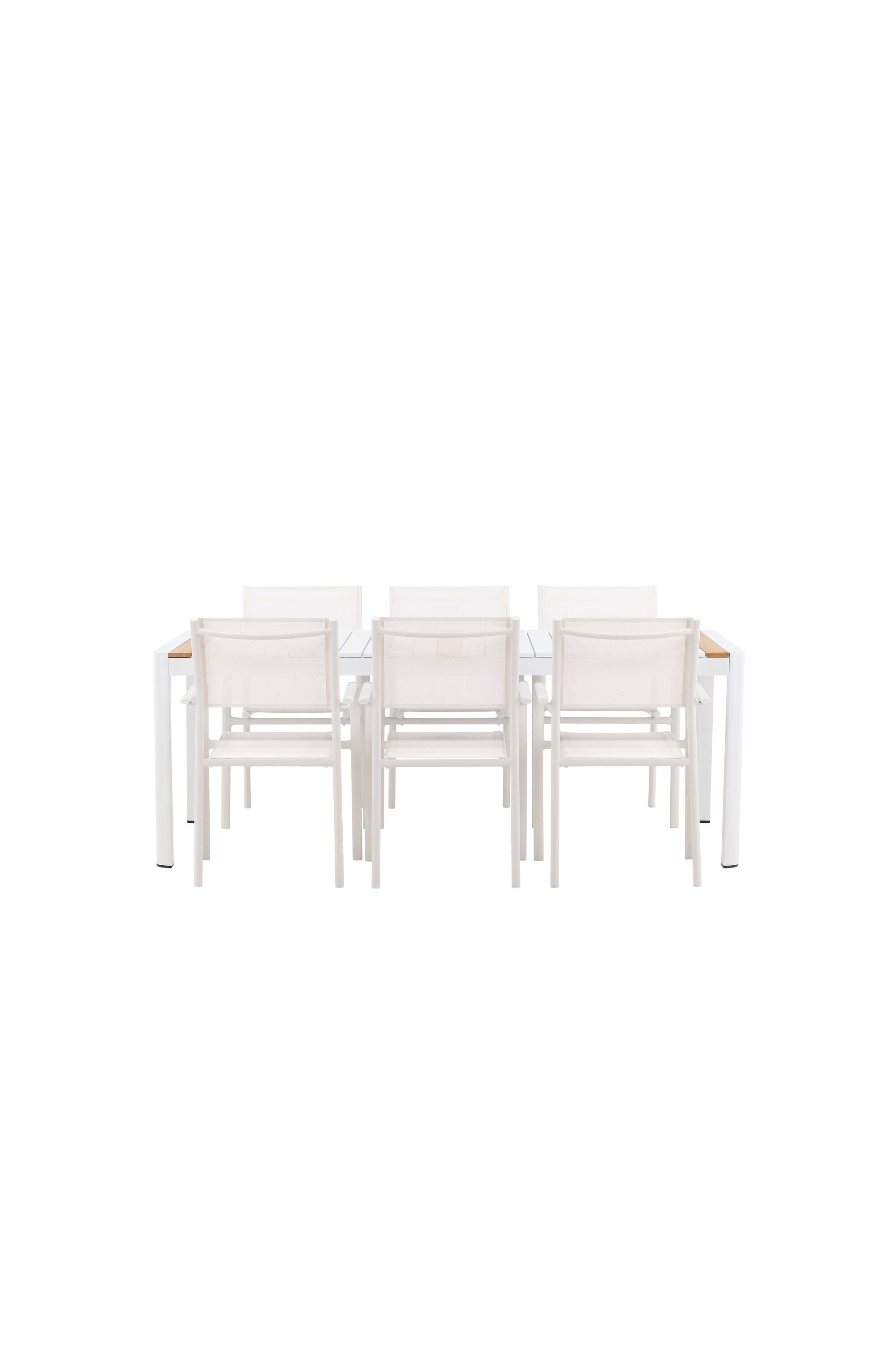 Togo - Jídelní stůl - Bílá / Teak - Allu / Teak - 200*100 + křeslo Santorini (stohovatelné) - Bílá Alu / Bílá textilie _6