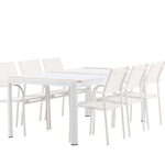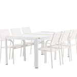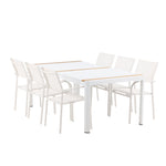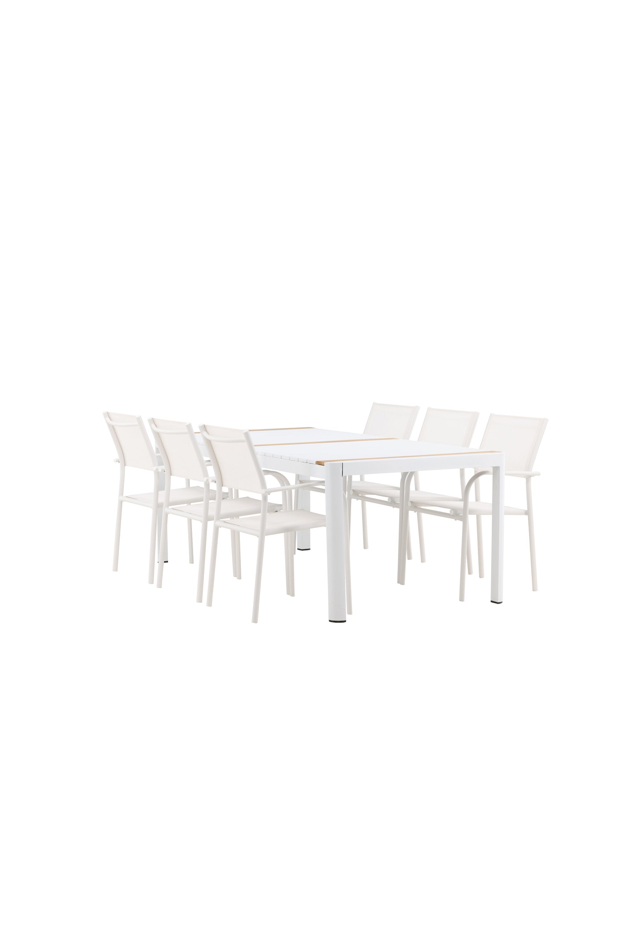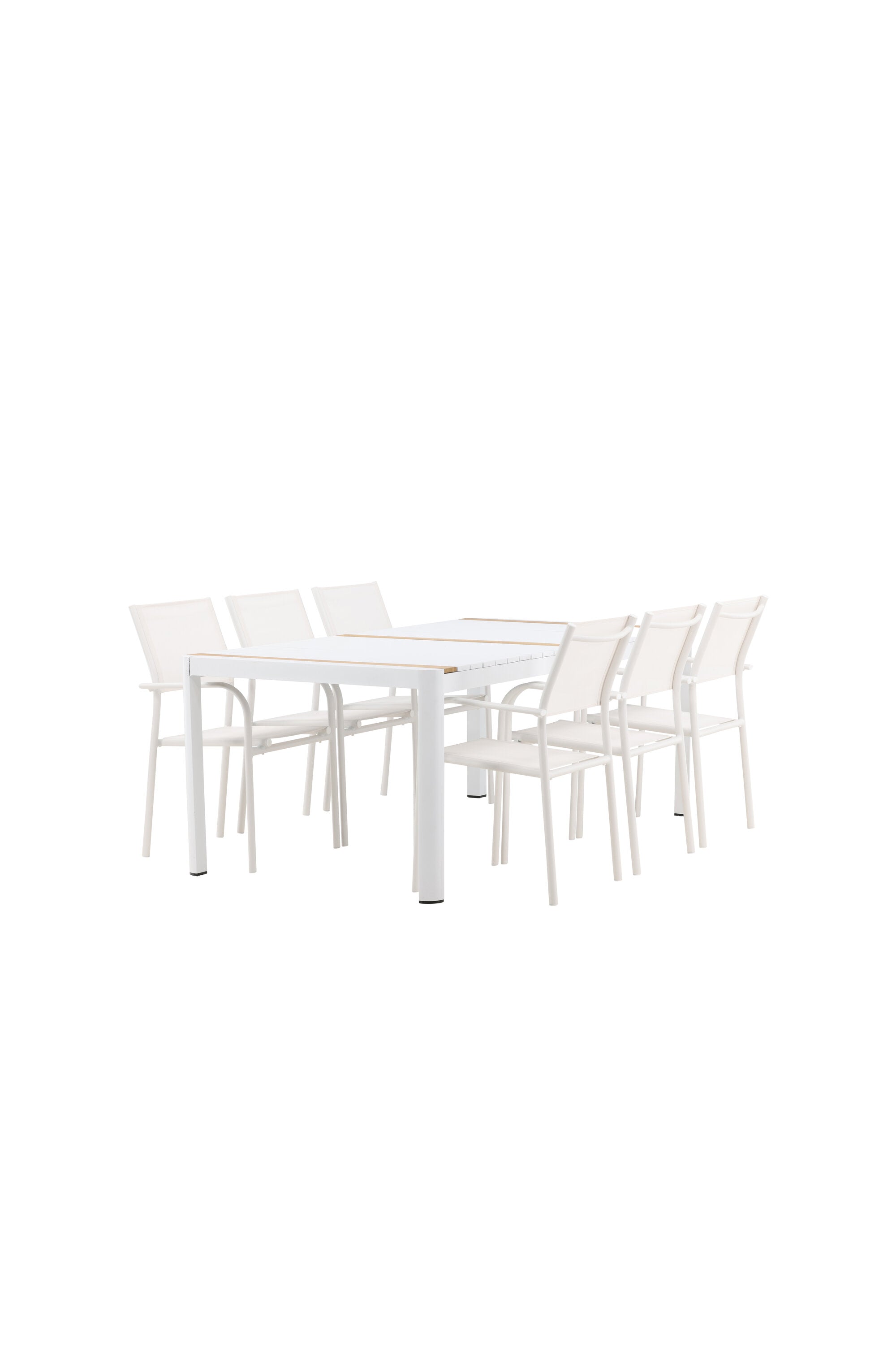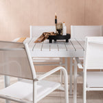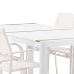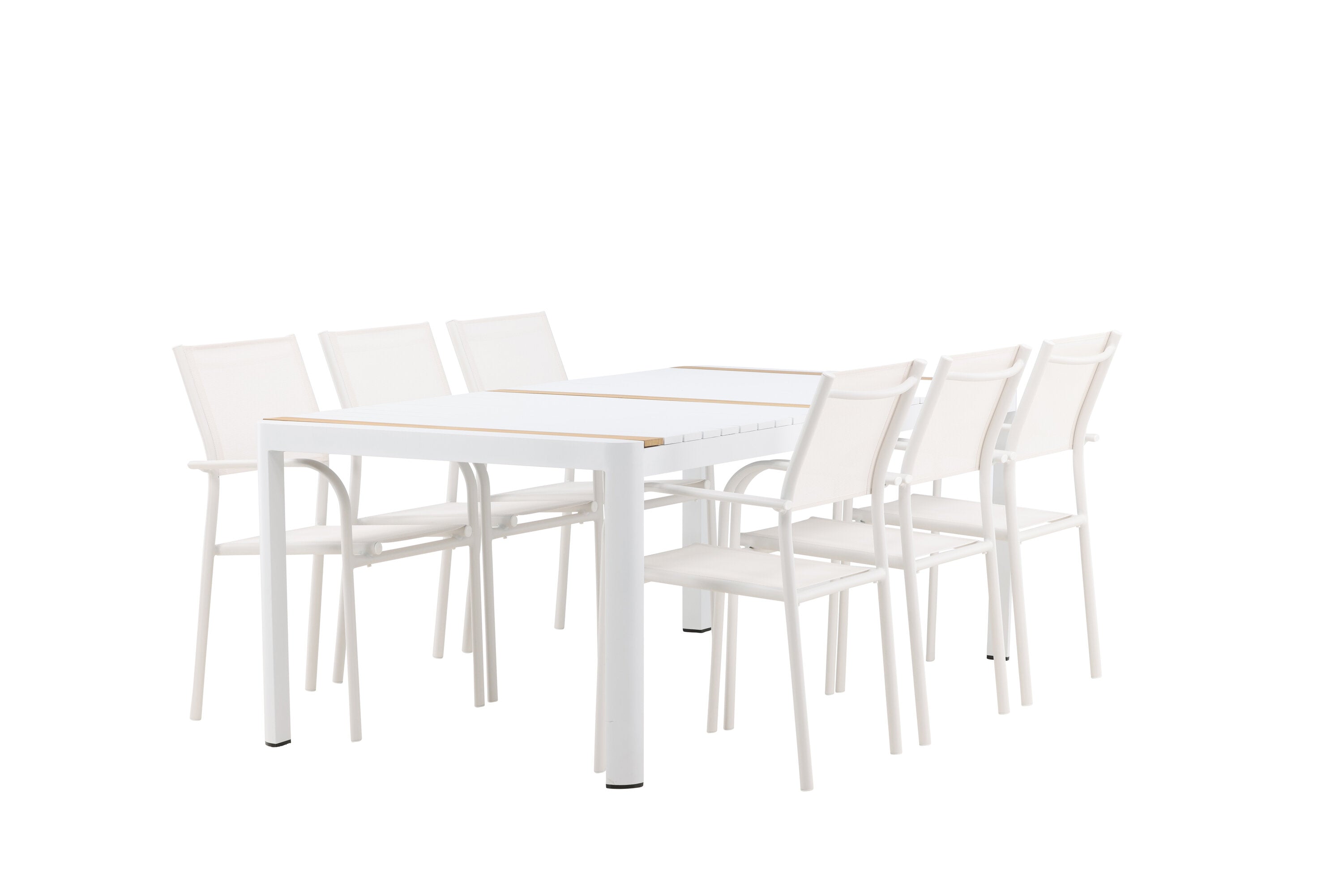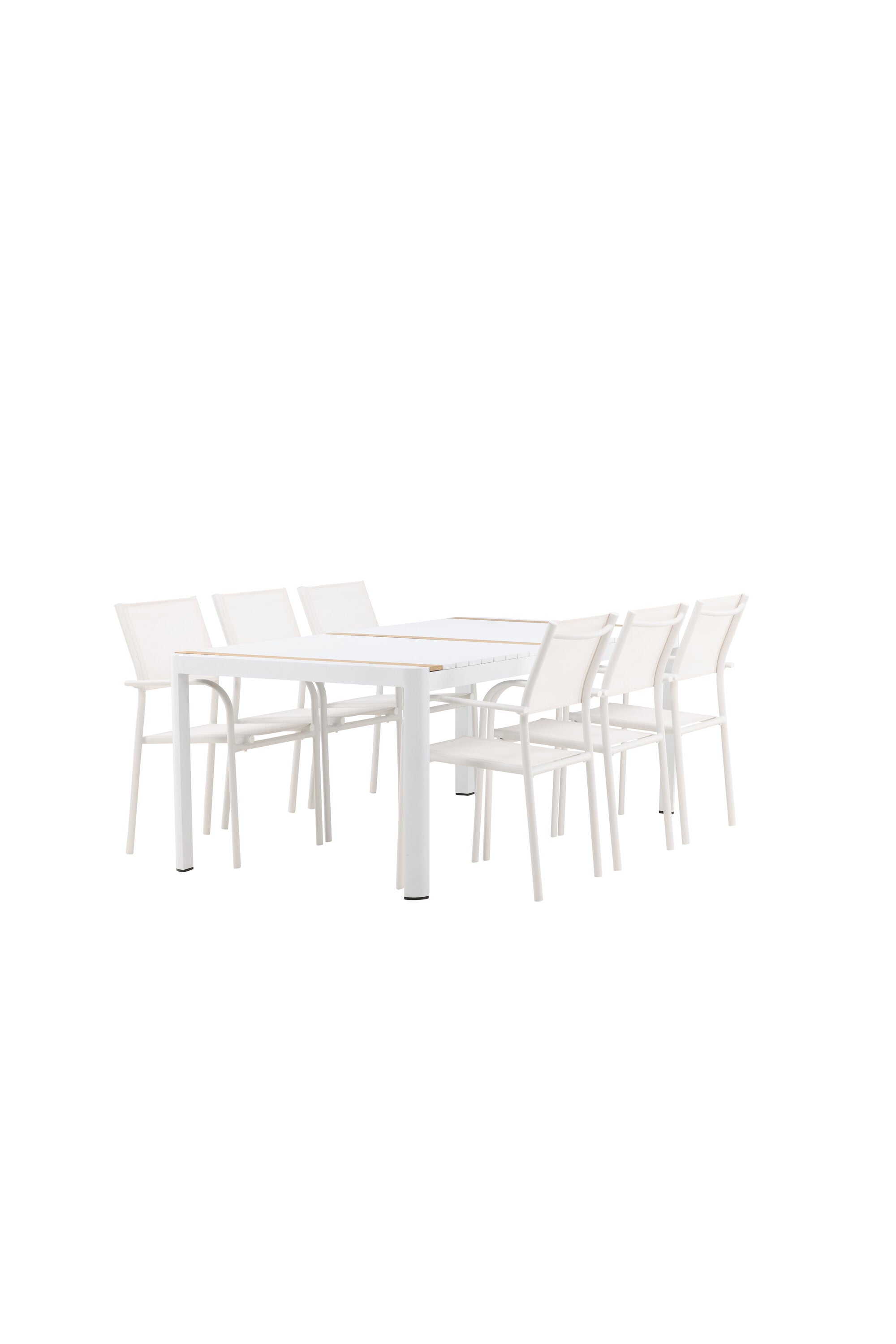 Togo - Jídelní stůl - Bílá / Teak - Allu / Teak - 200*100 + křeslo Santorini (stohovatelné) - Bílá Alu / Bílá textilie _6