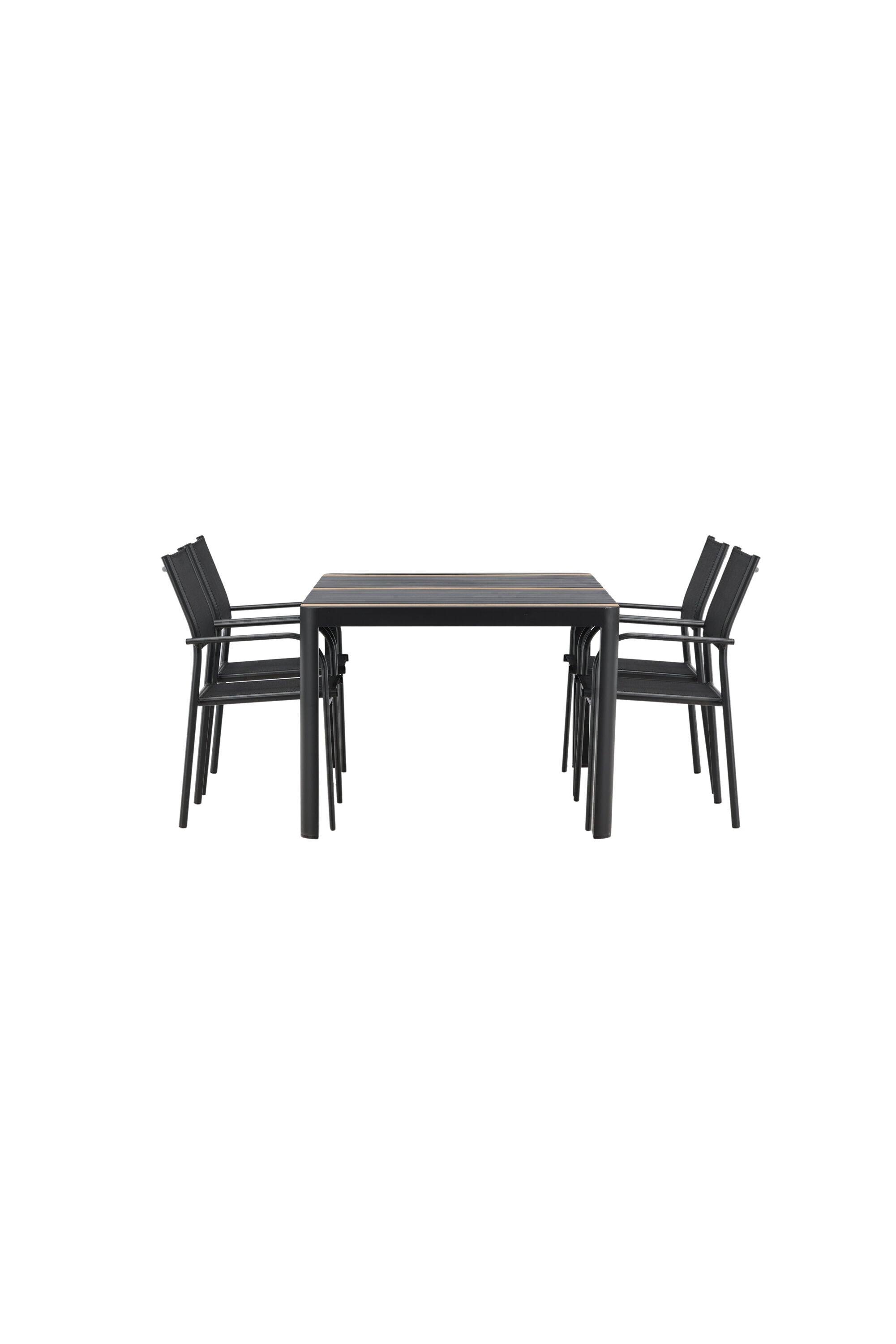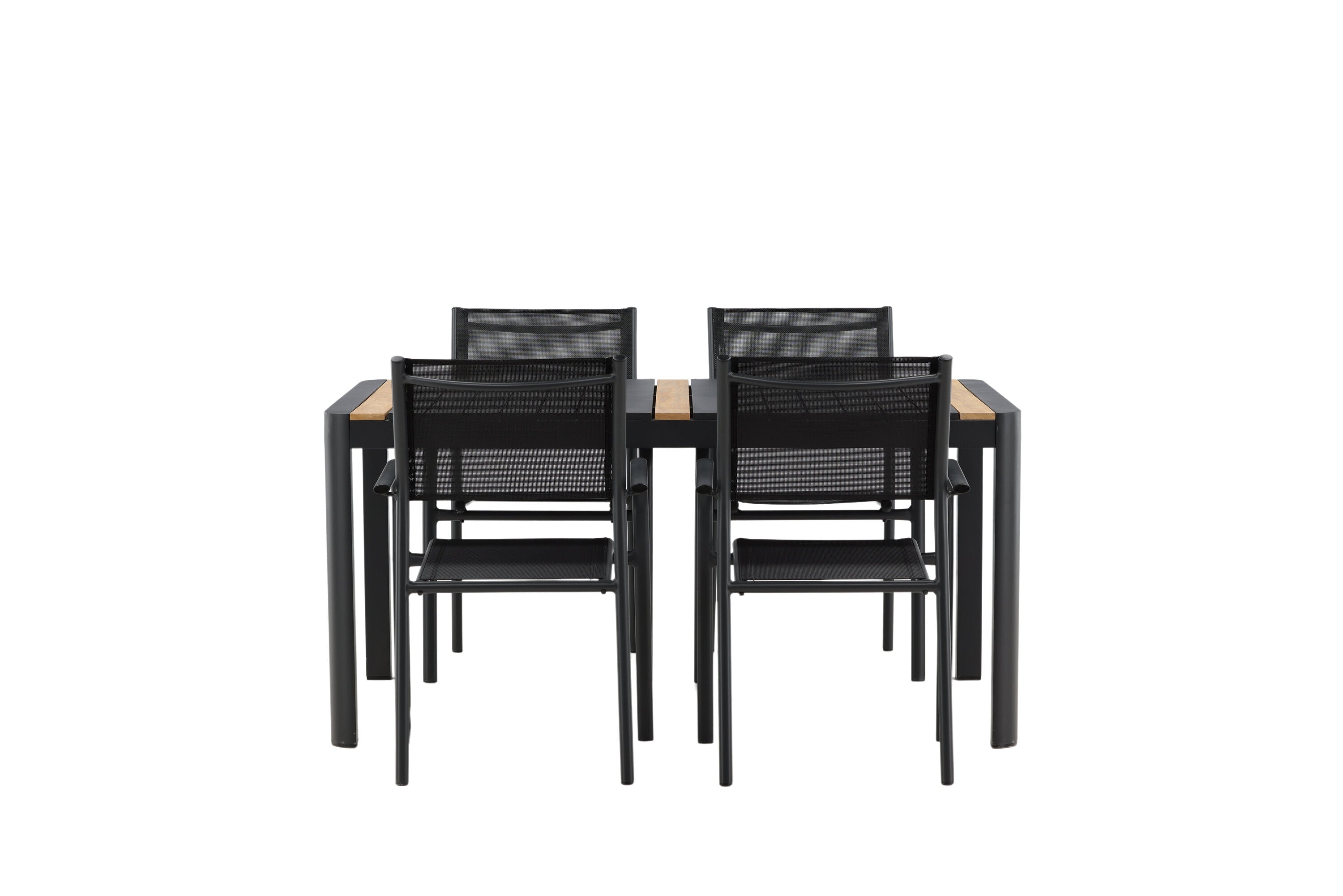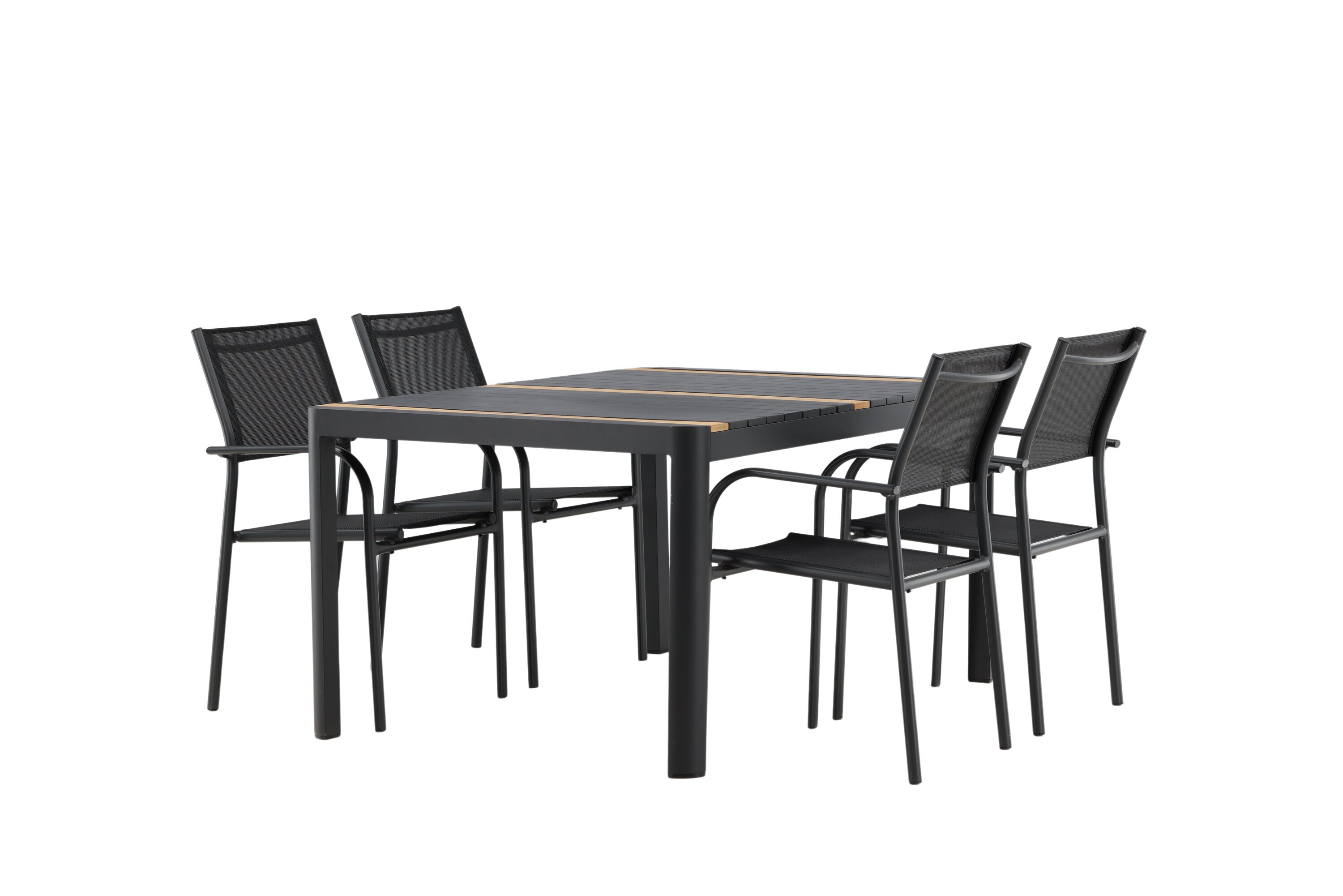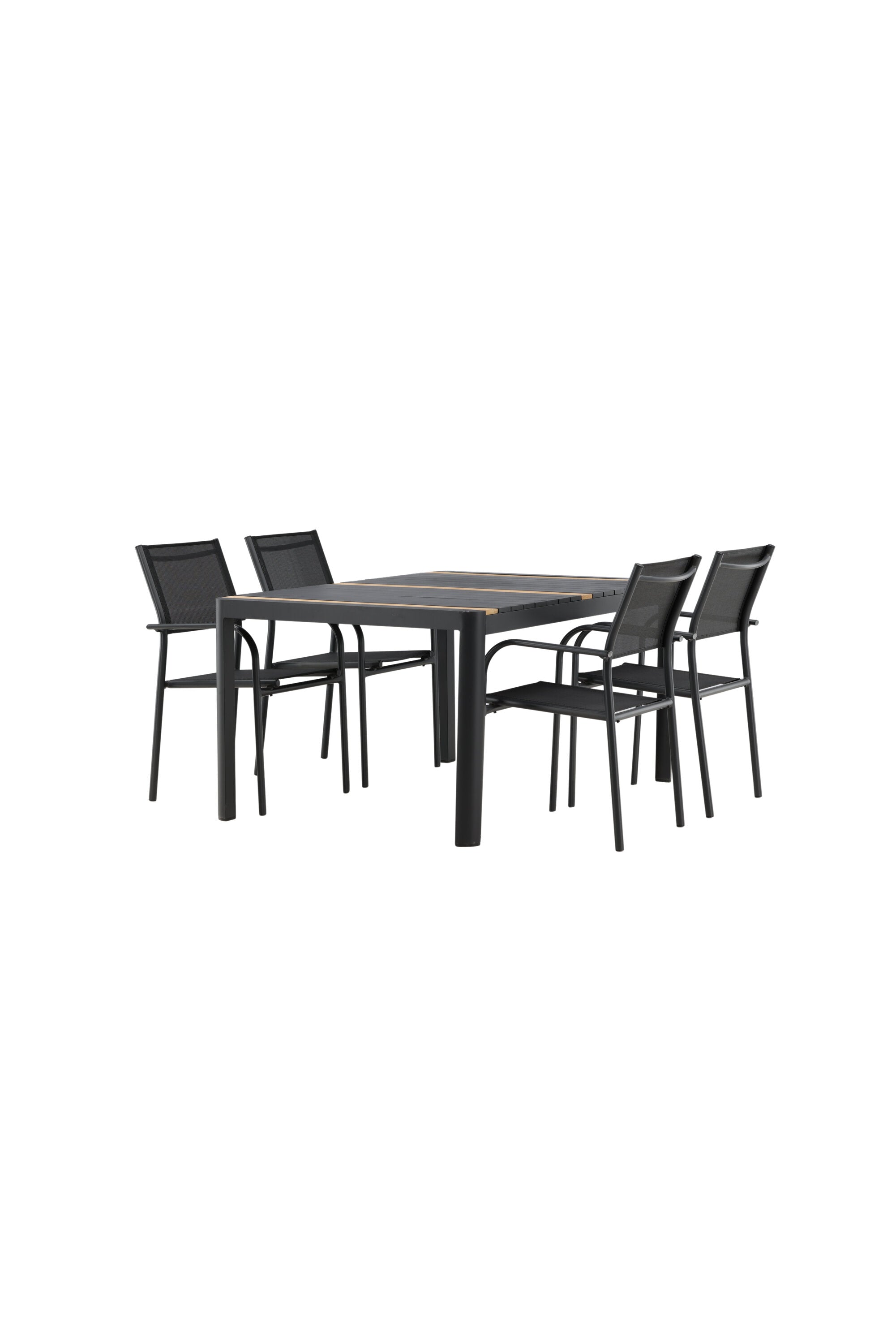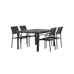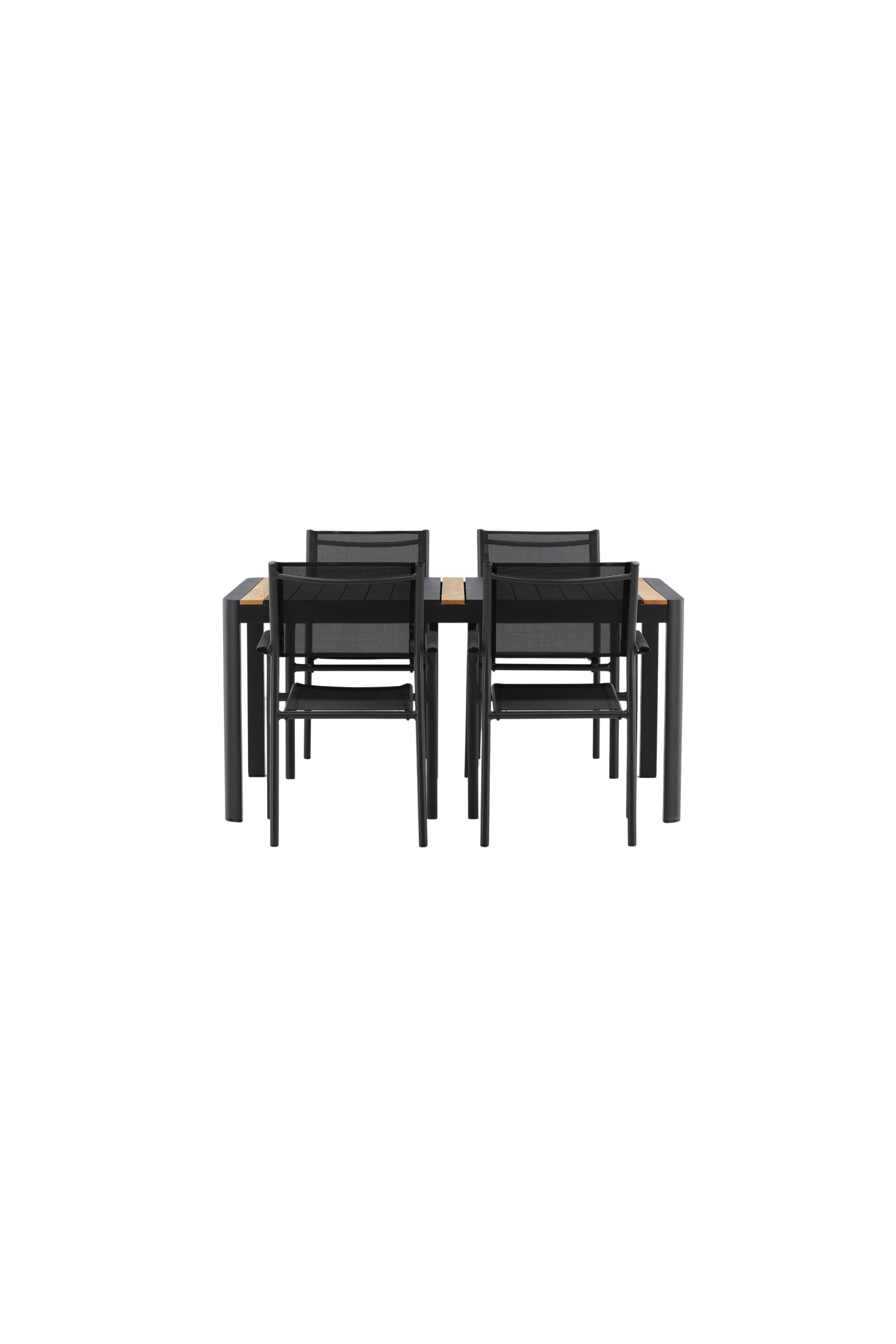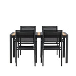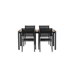 Togo - Jídelní stůl - Černá / Teak - Allu / Teak - 150*100 _1+ křeslo Santorini (stohovatelné) - Černá alu / Černá textilie _4