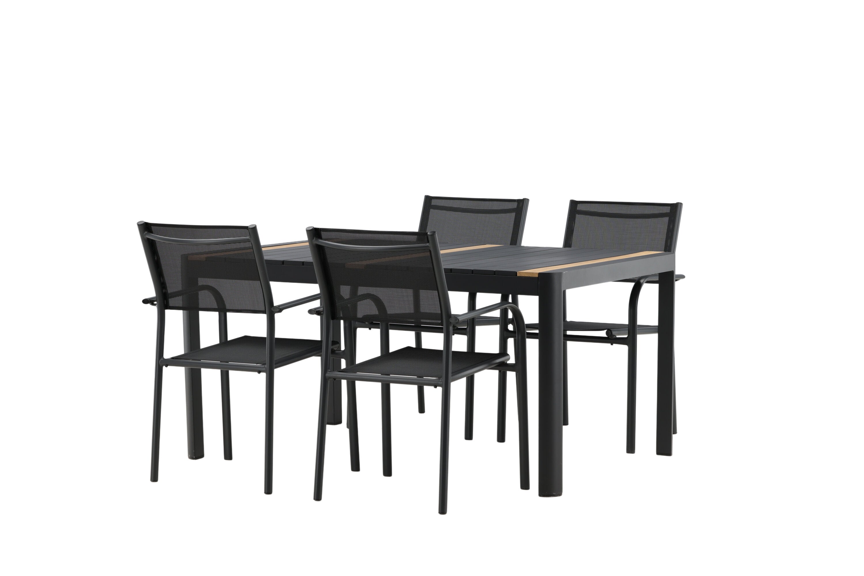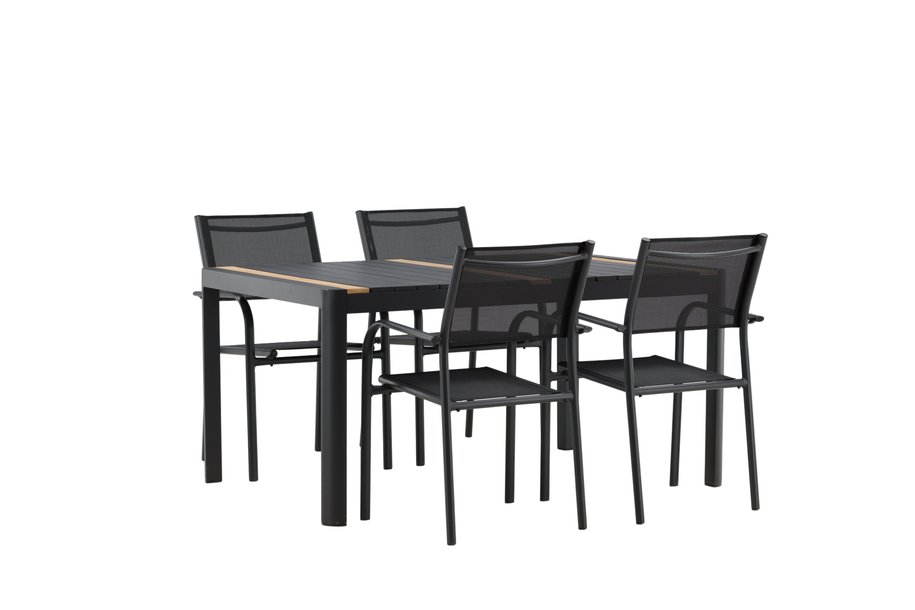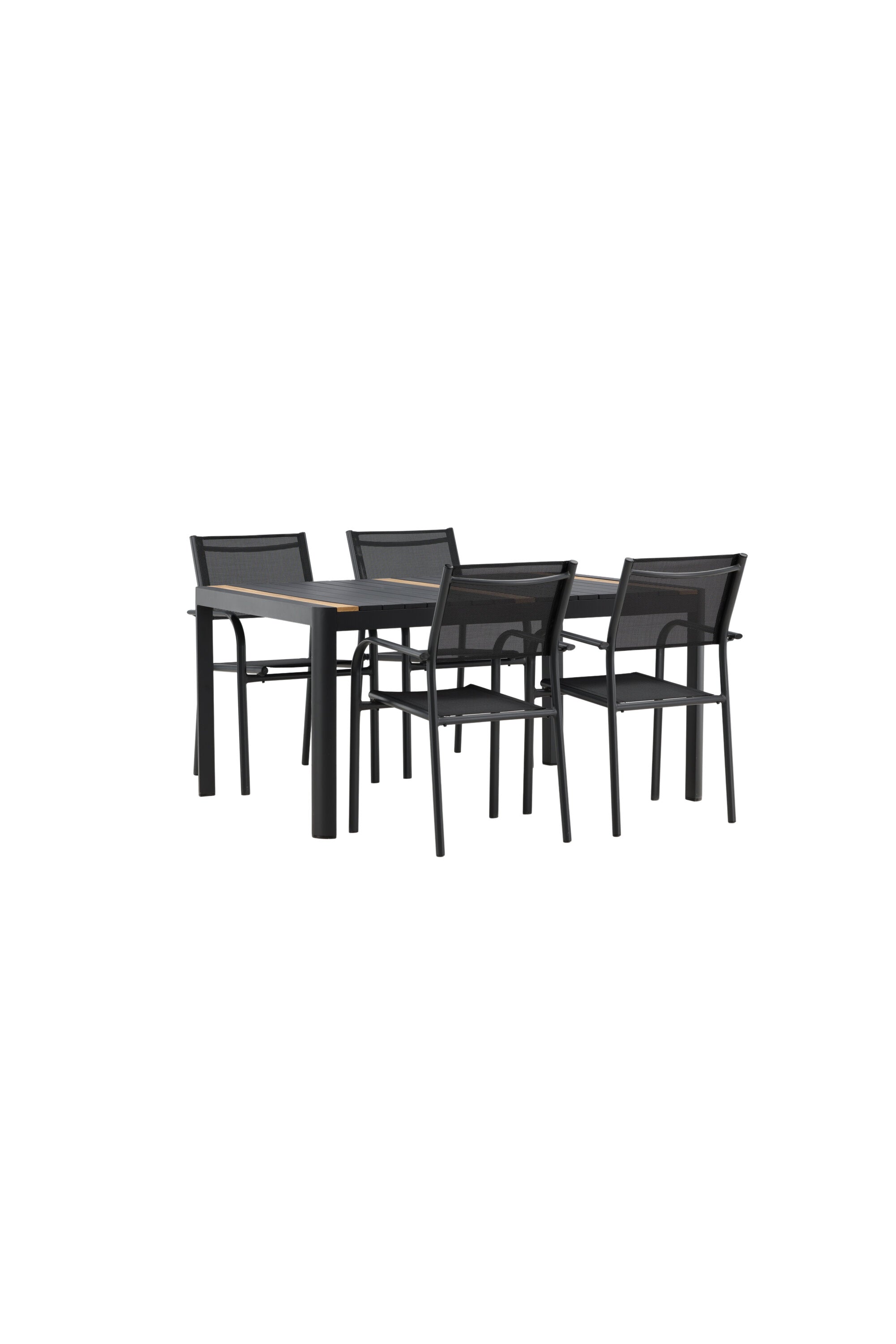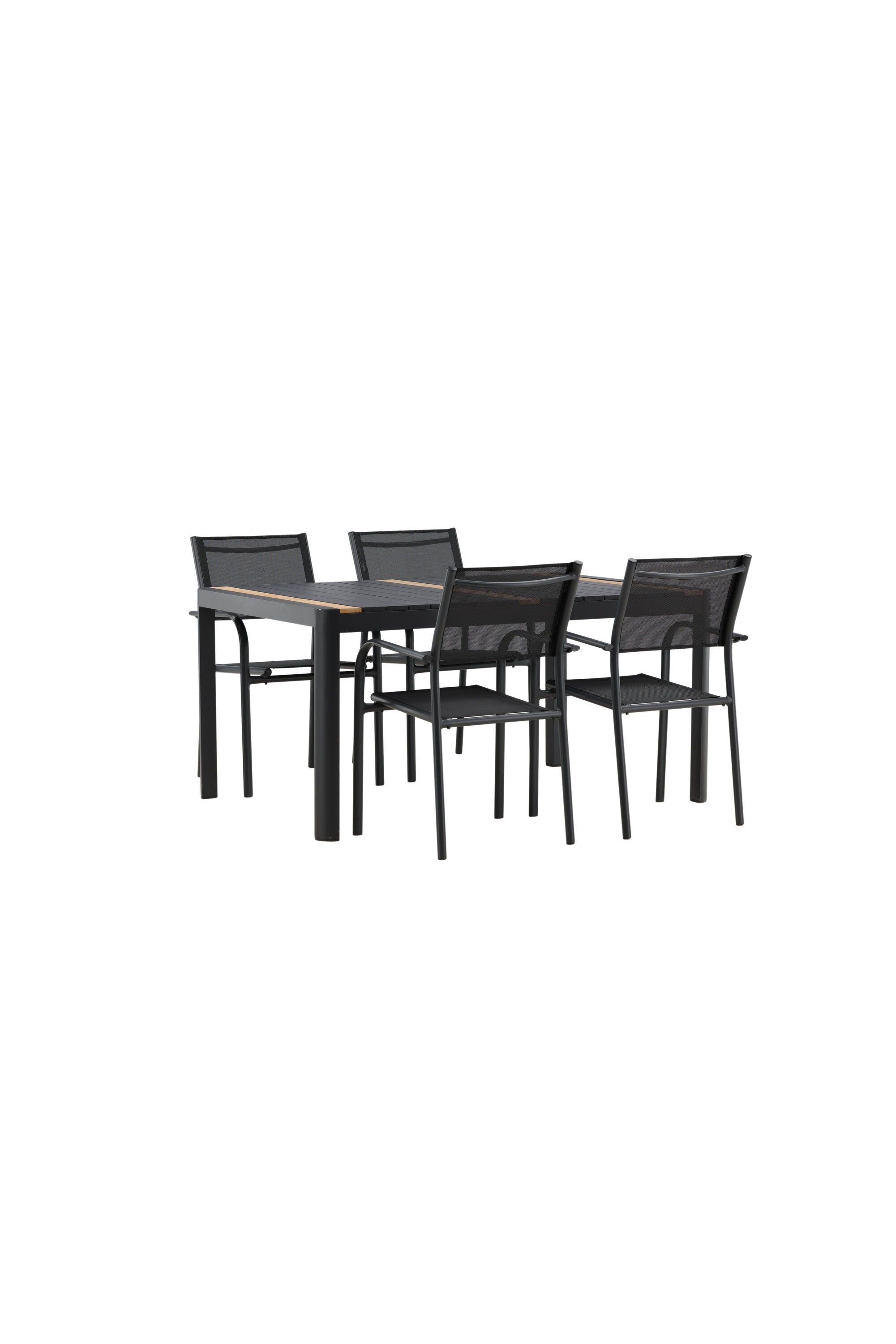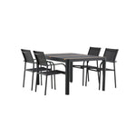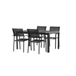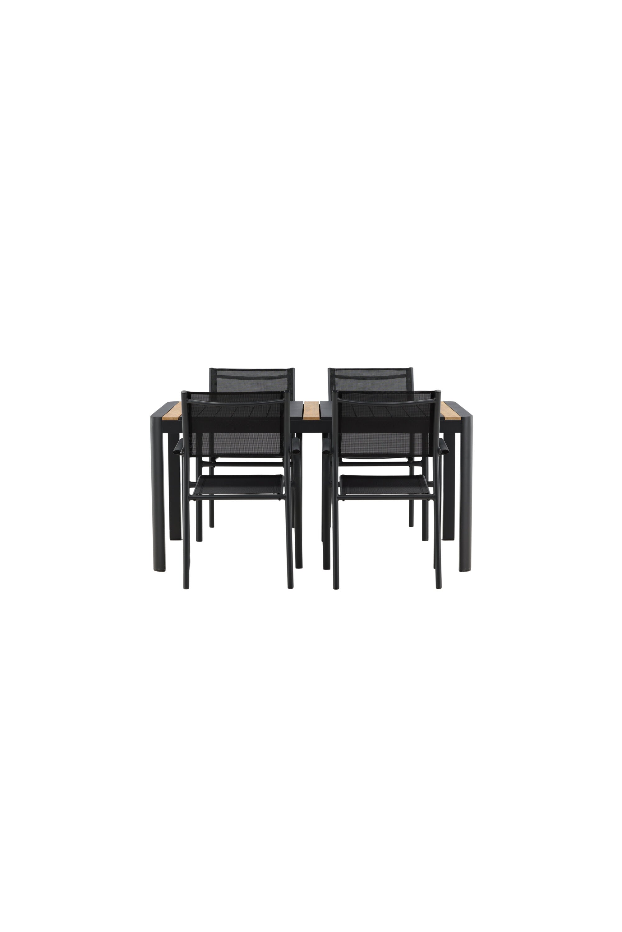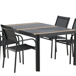 Togo - Jídelní stůl - Černá / Teak - Allu / Teak - 150*100 _1+ křeslo Santorini (stohovatelné) - Černá alu / Černá textilie _4