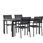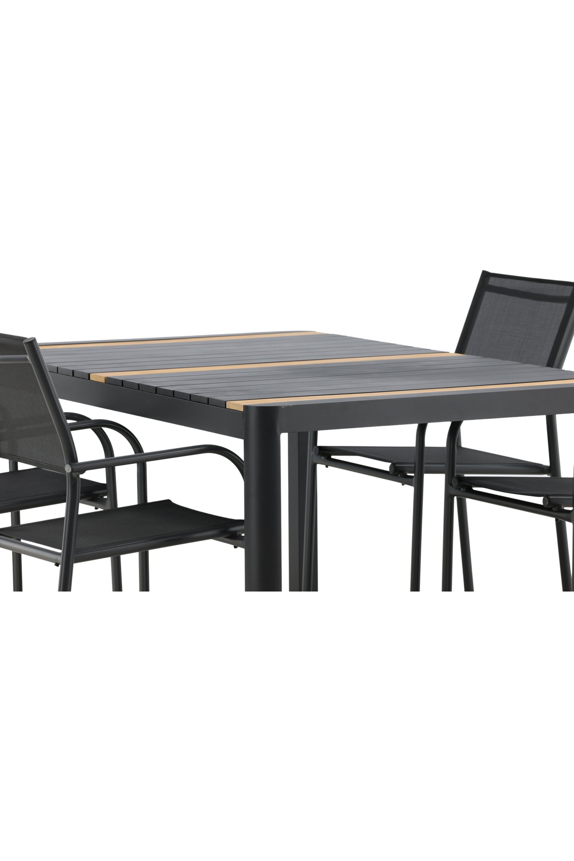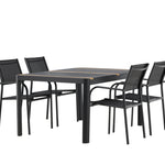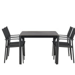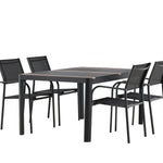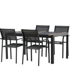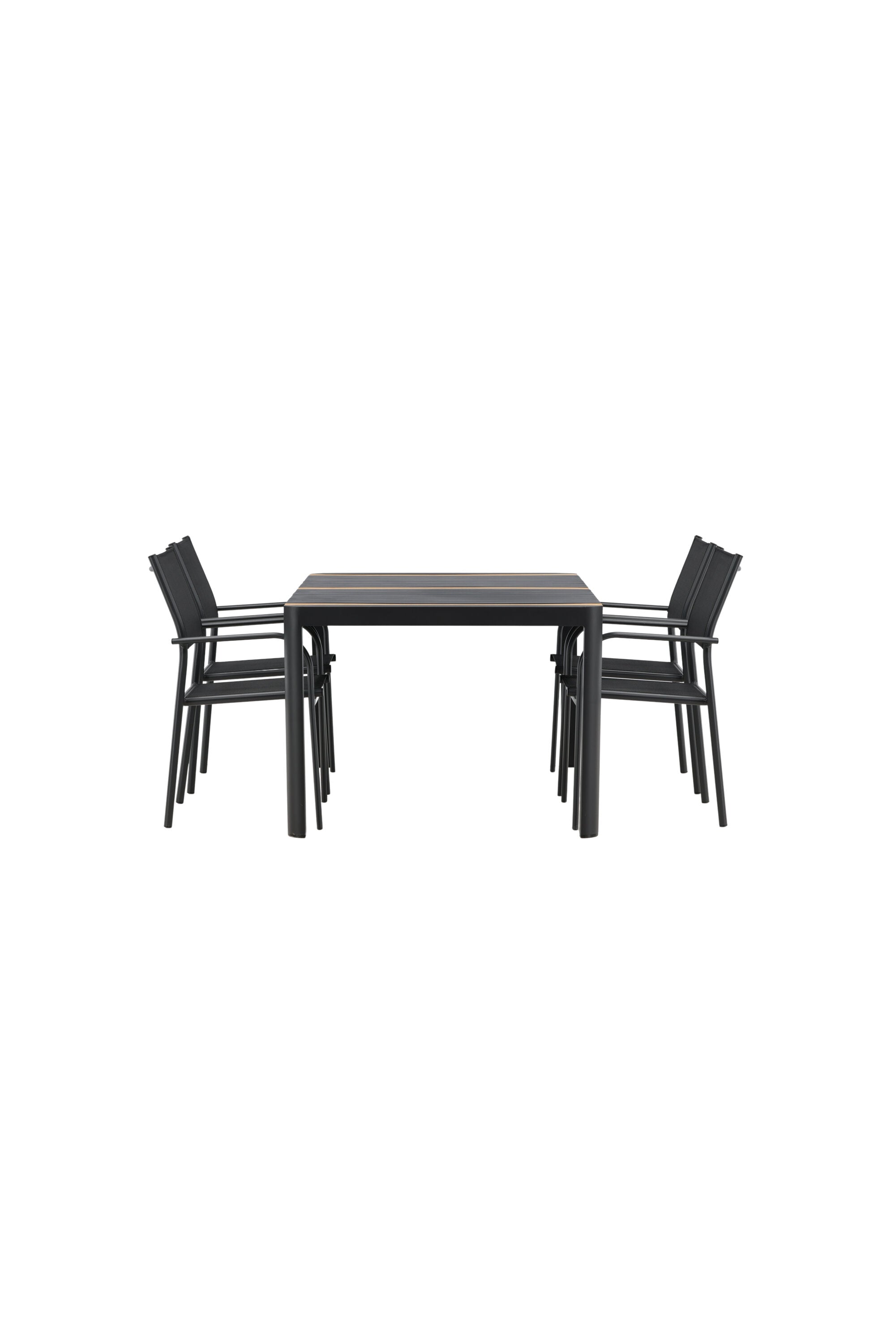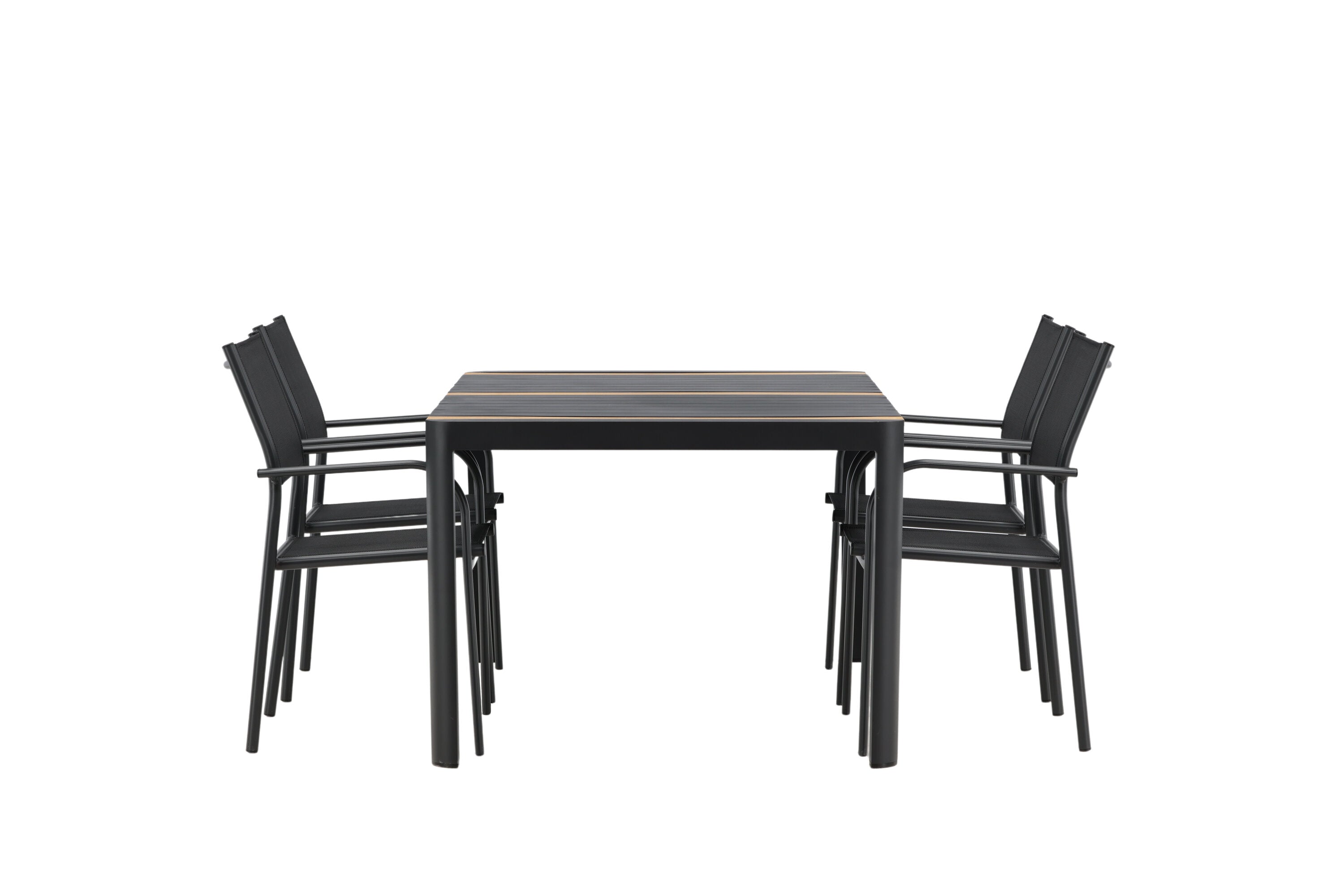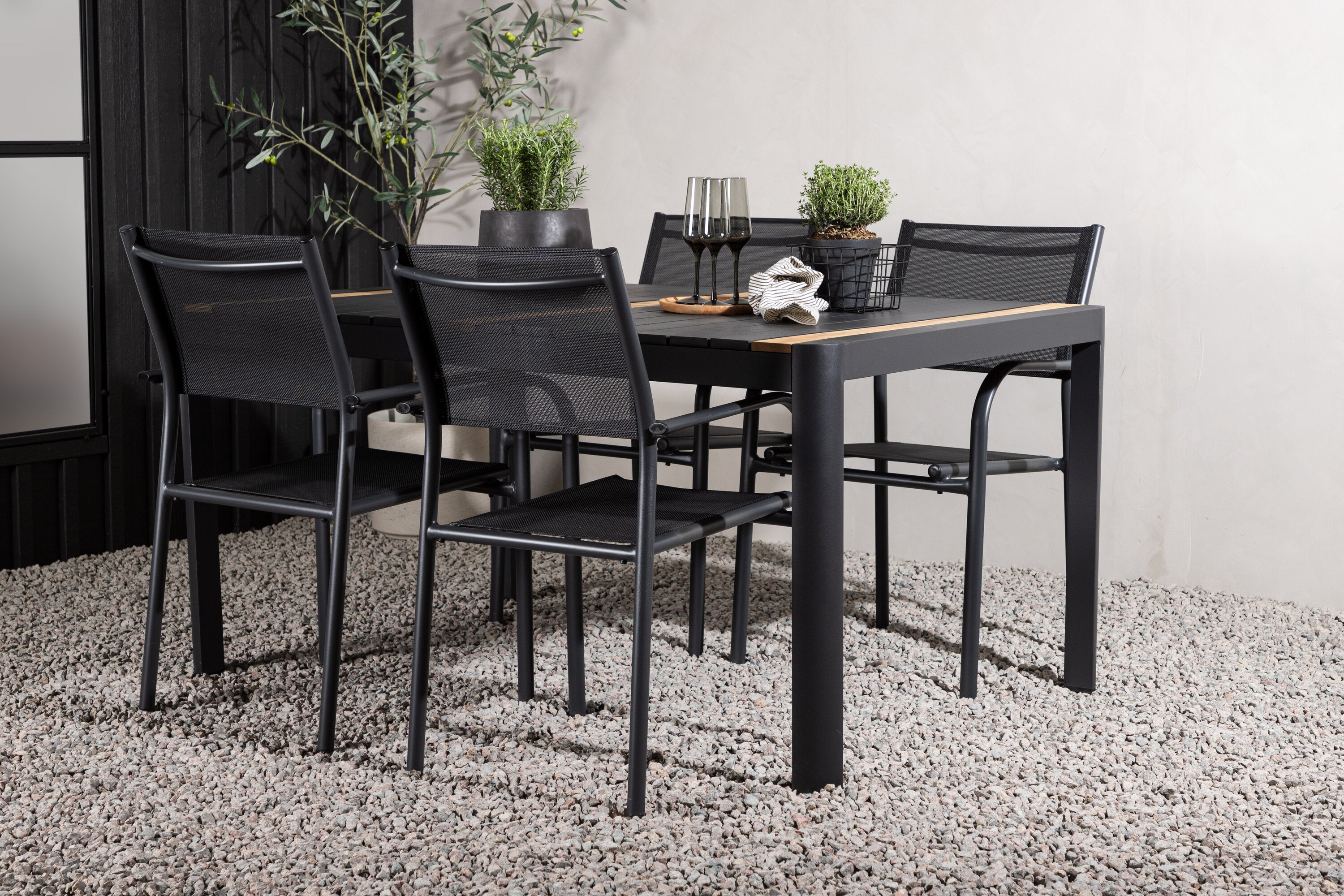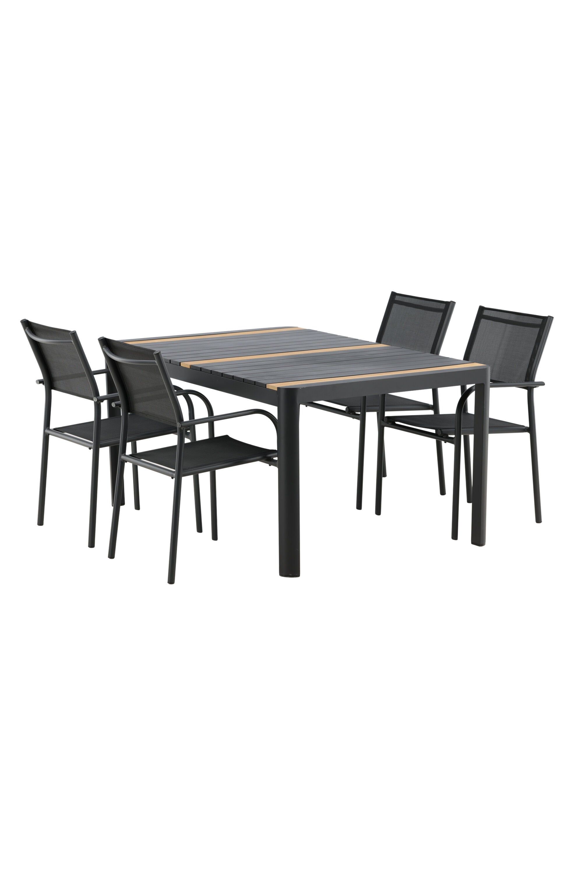 Togo - Jídelní stůl - Černá / Teak - Allu / Teak - 150*100 _1+ křeslo Santorini (stohovatelné) - Černá alu / Černá textilie _4