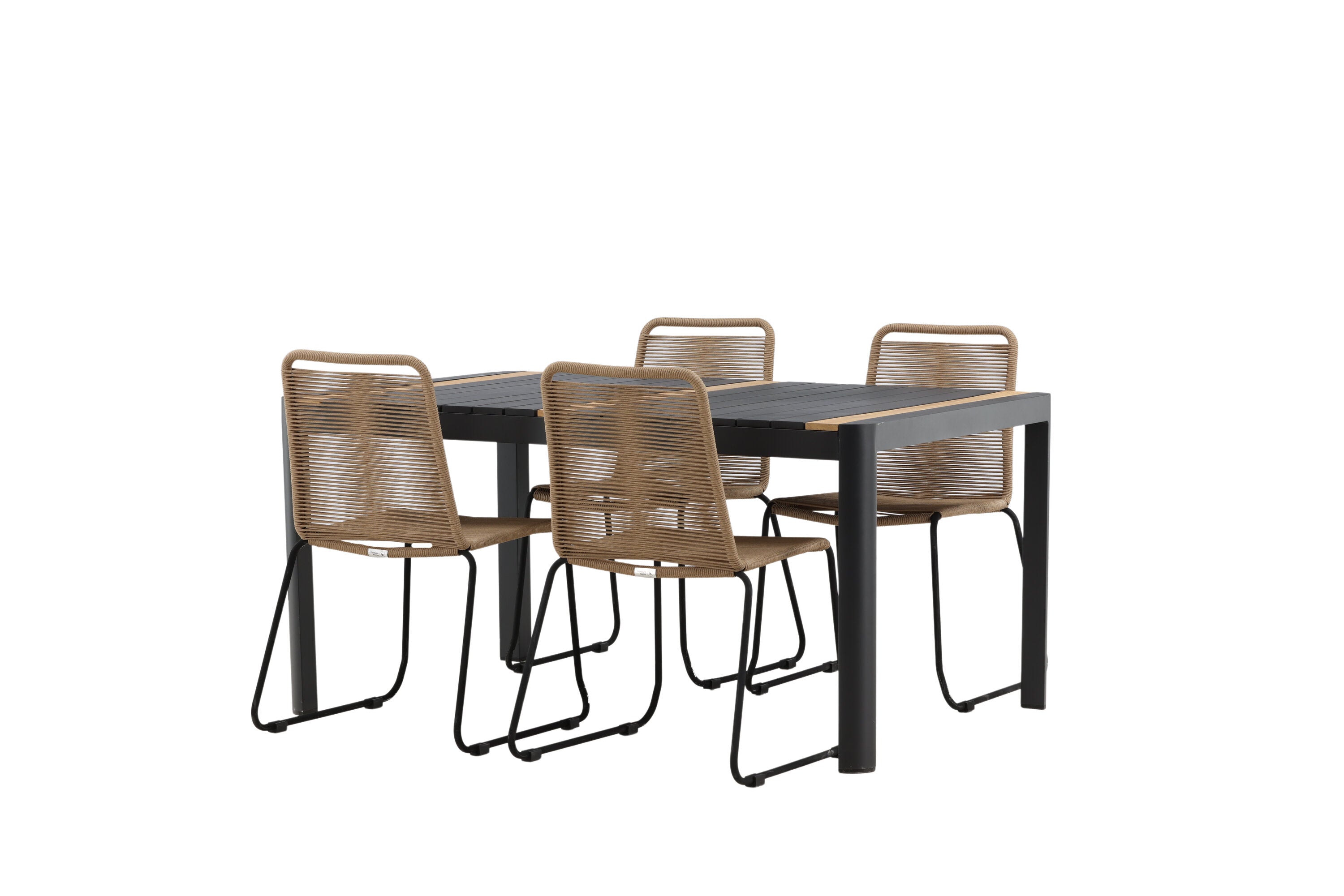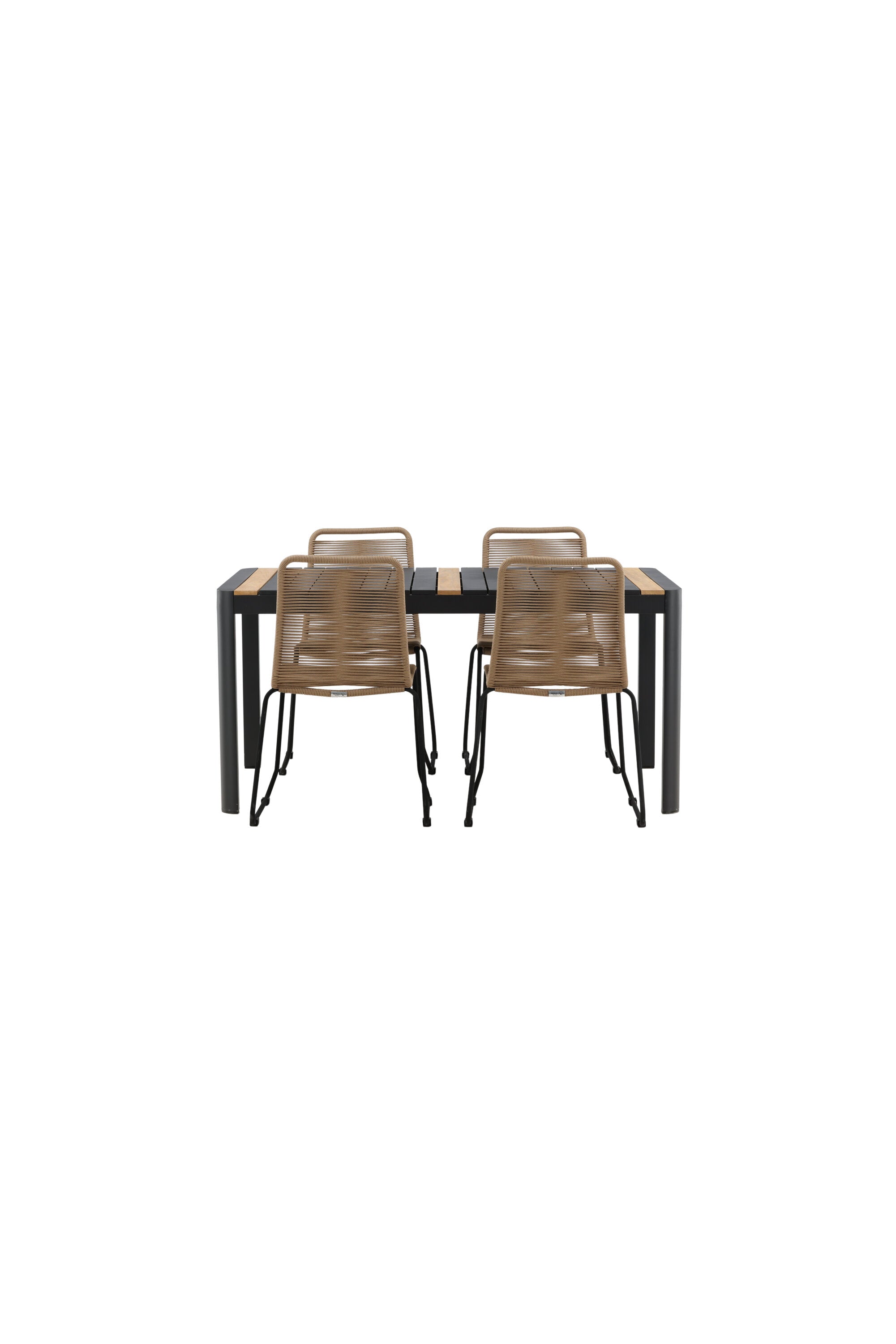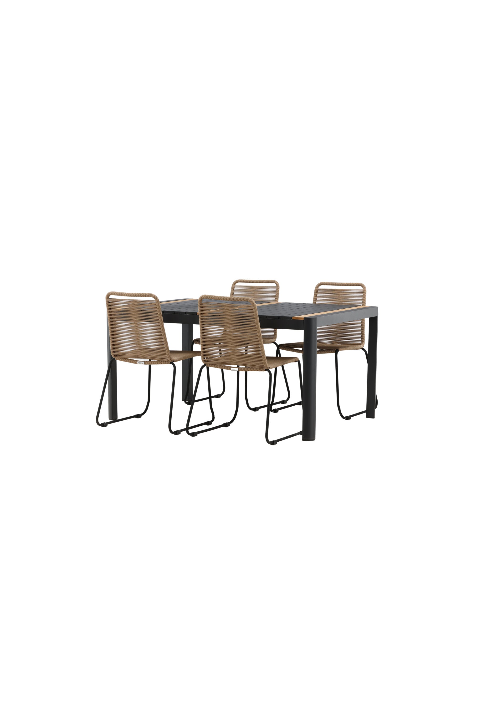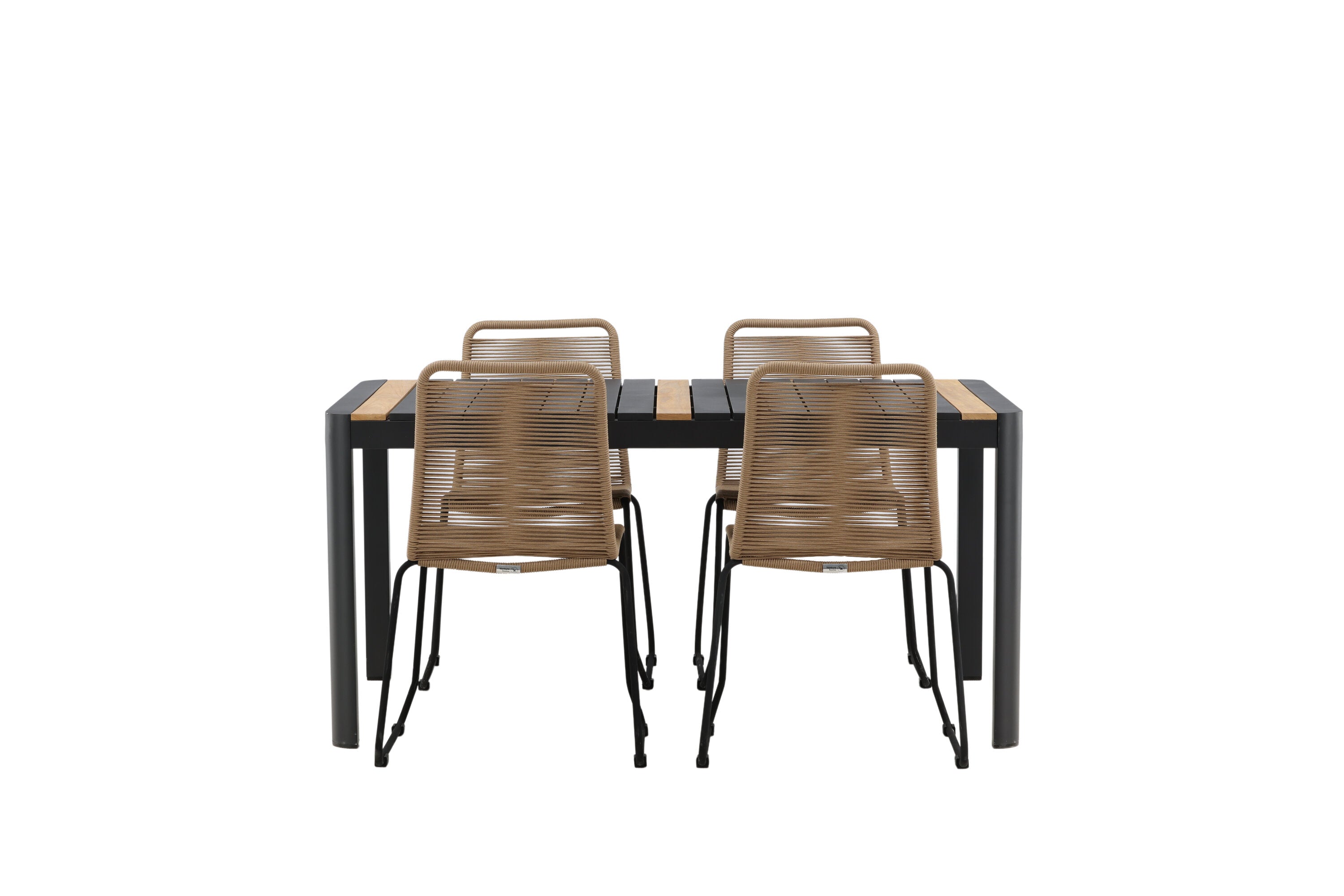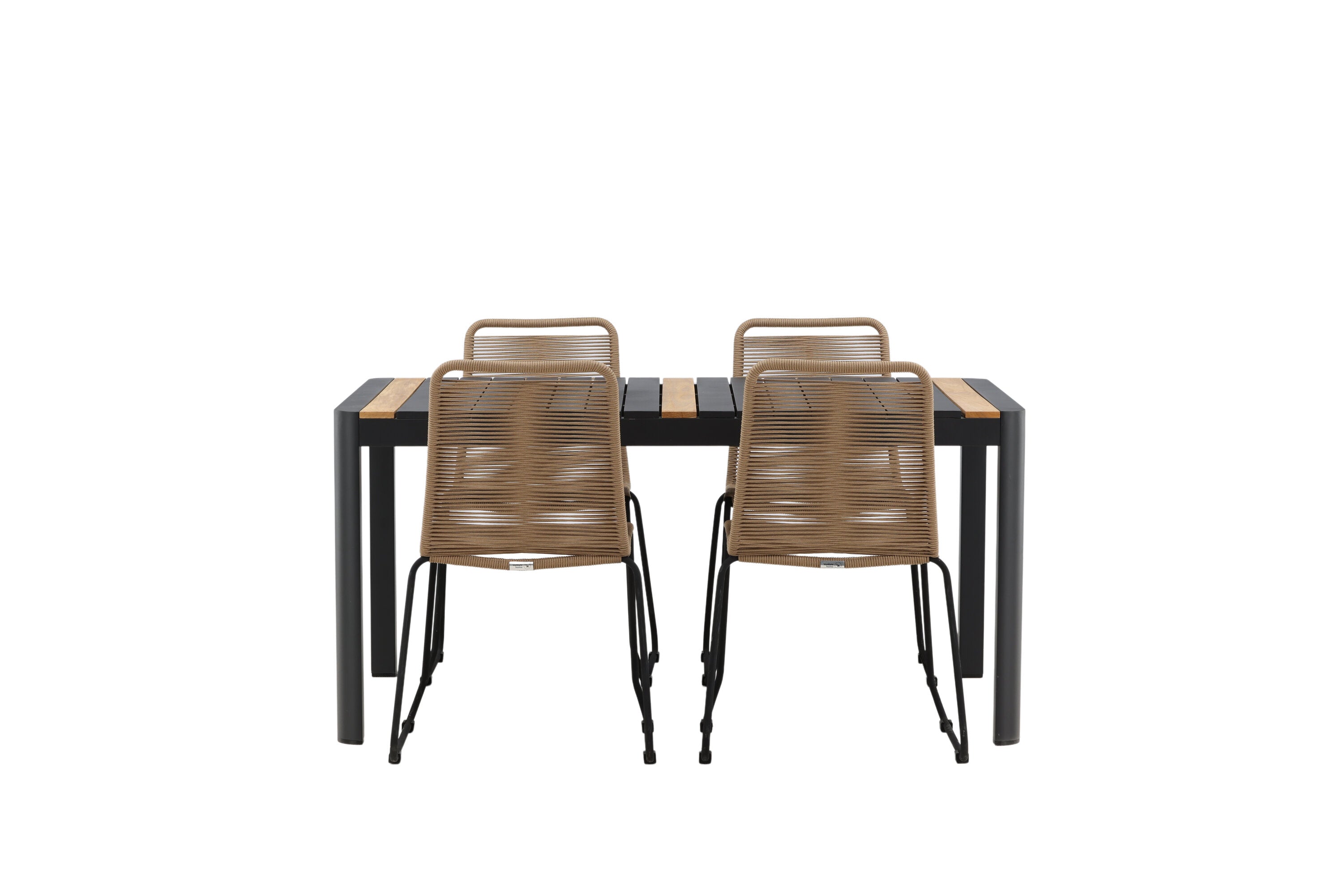 Togo - Jídelní stůl - Černá / Teak - Allu / Teak - 150*100 _1+ Lindos Stohovací židle - Black Alu / Latte Latte _4