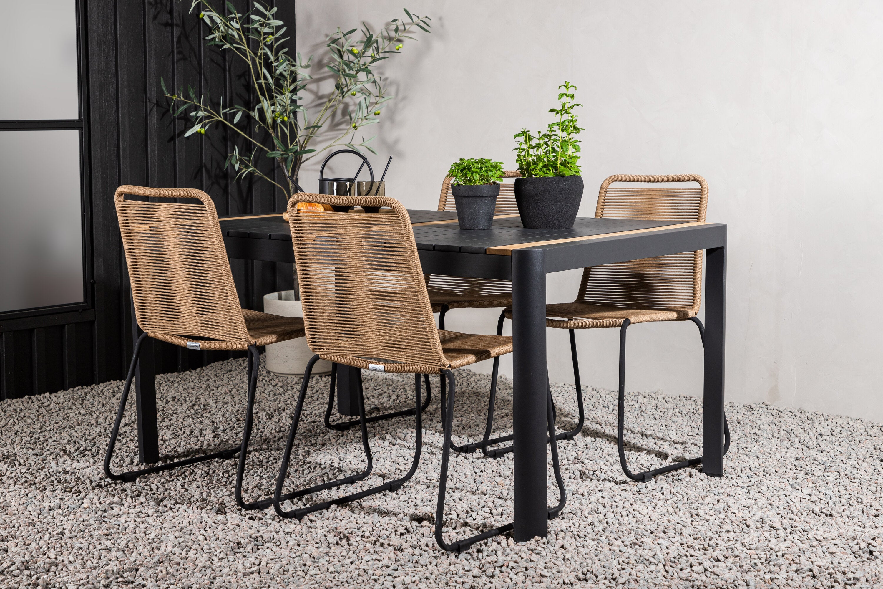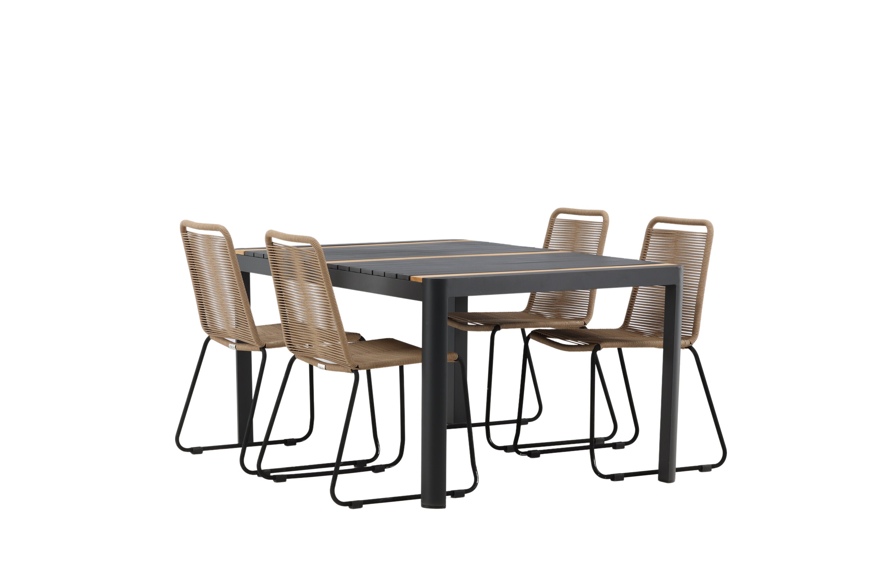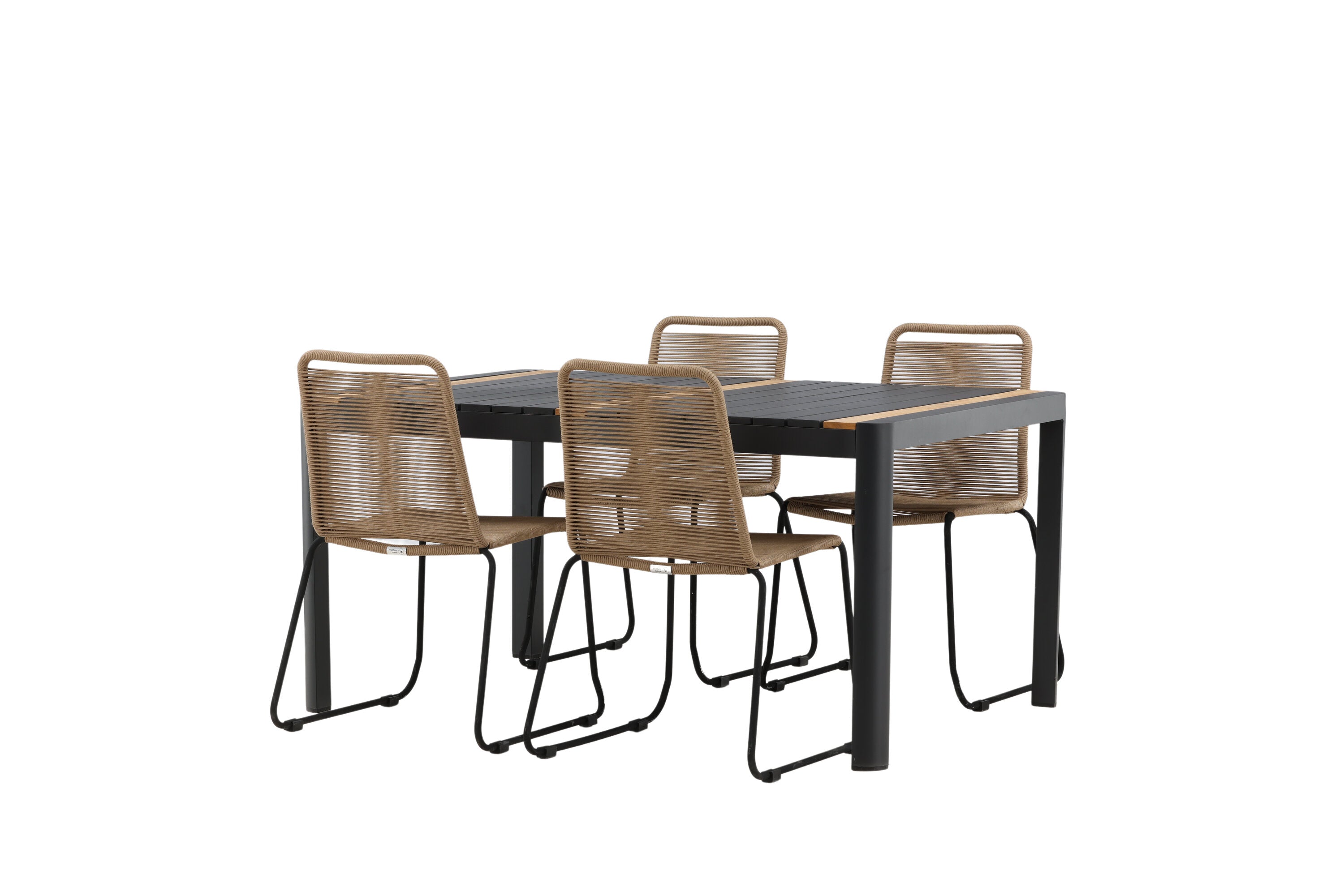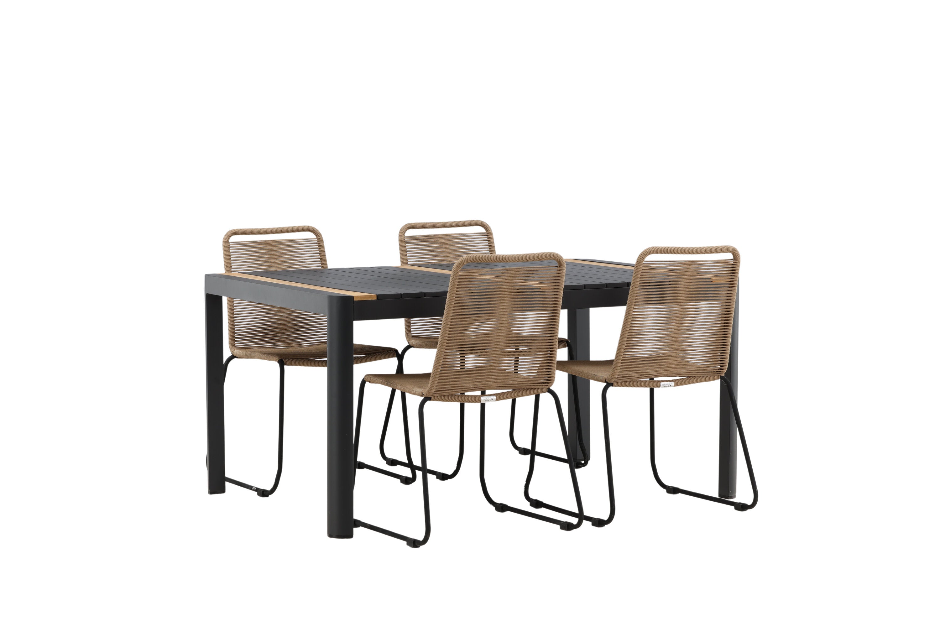 Togo - Jídelní stůl - Černá / Teak - Allu / Teak - 150*100 _1+ Lindos Stohovací židle - Black Alu / Latte Latte _4