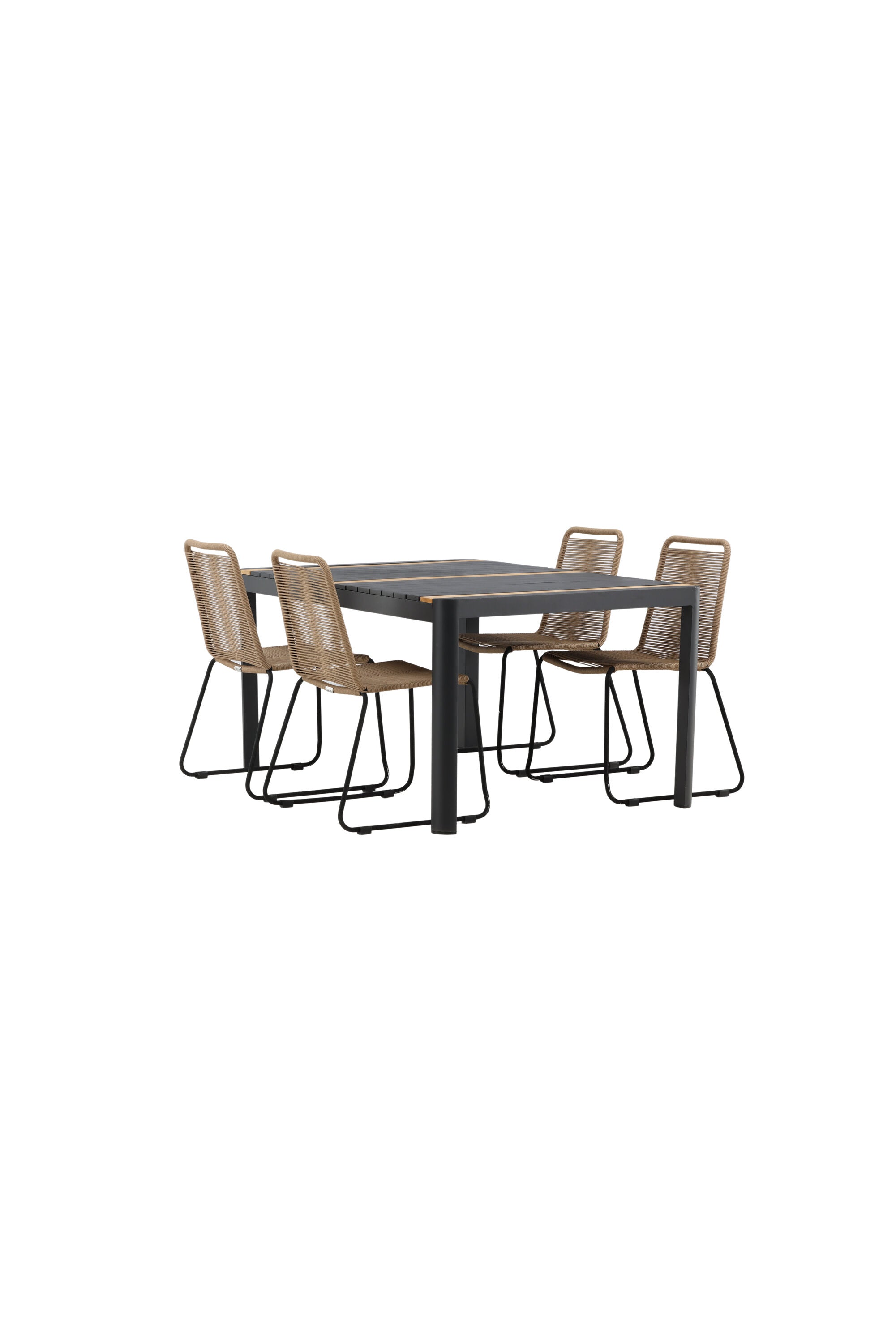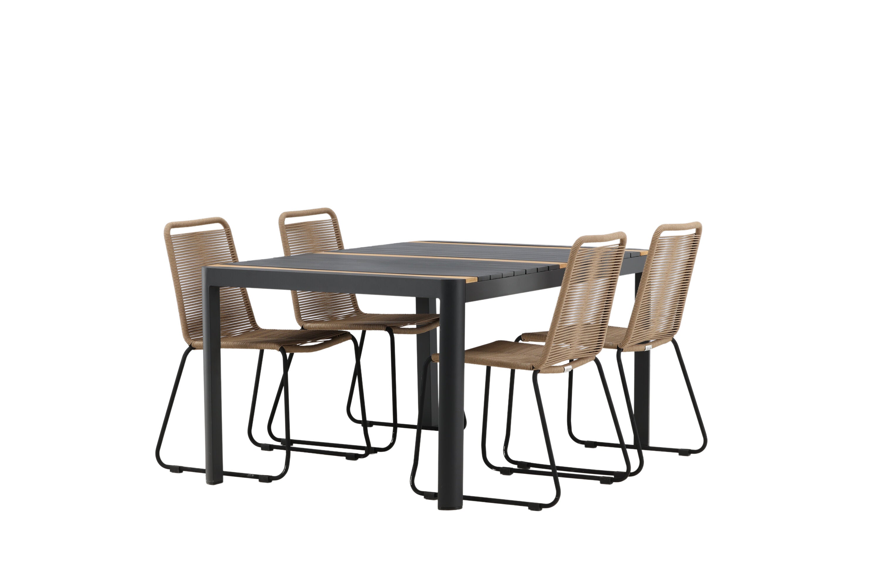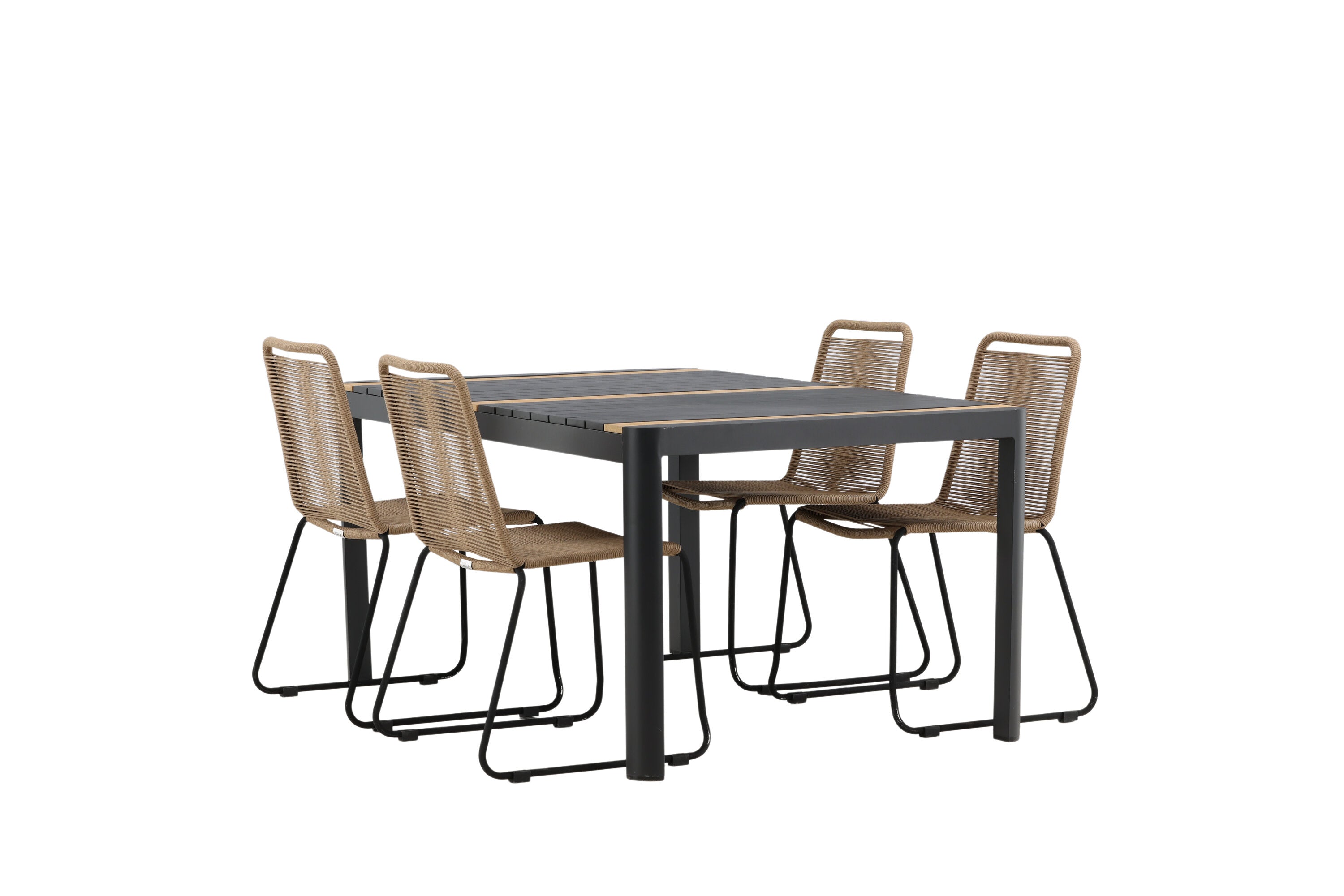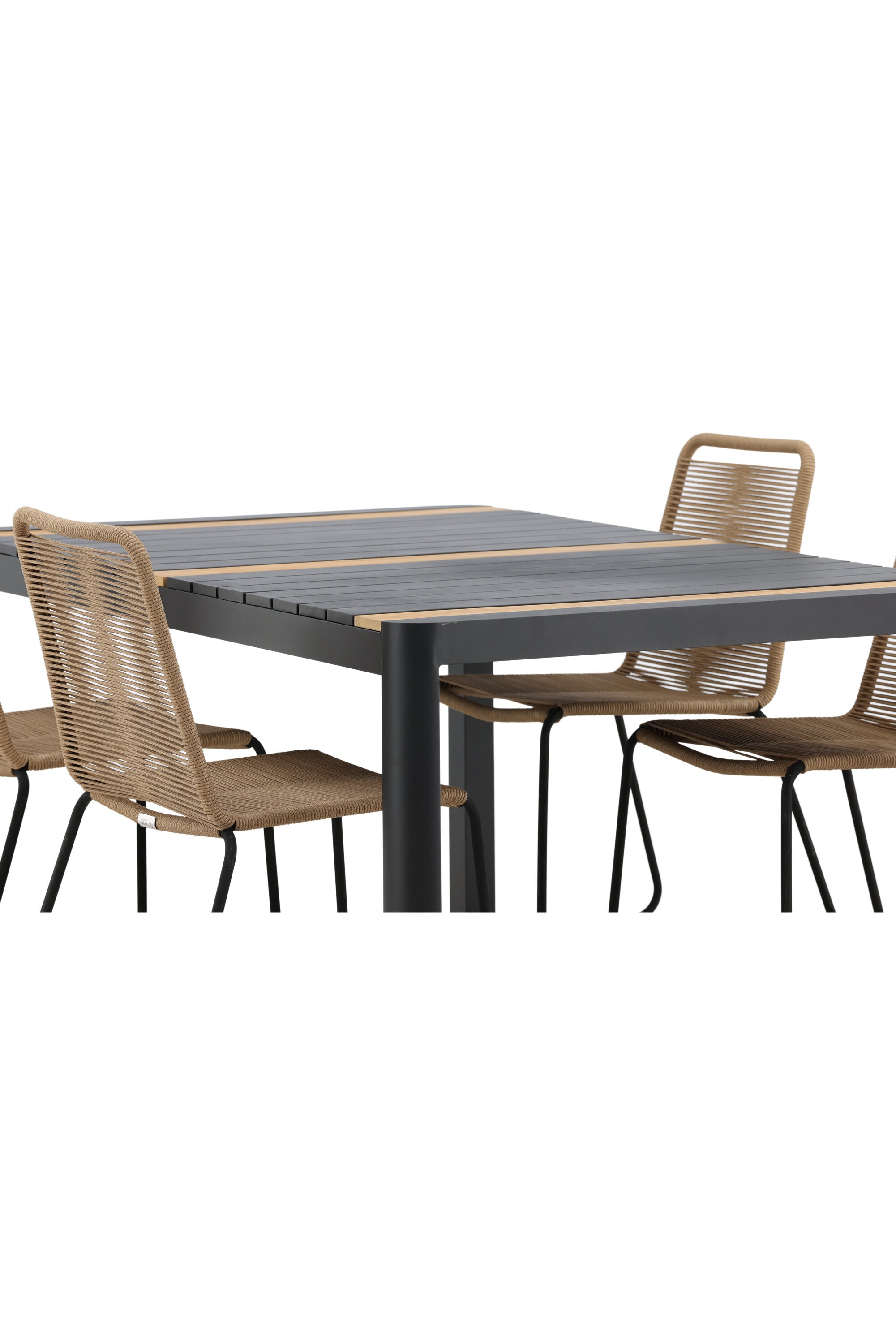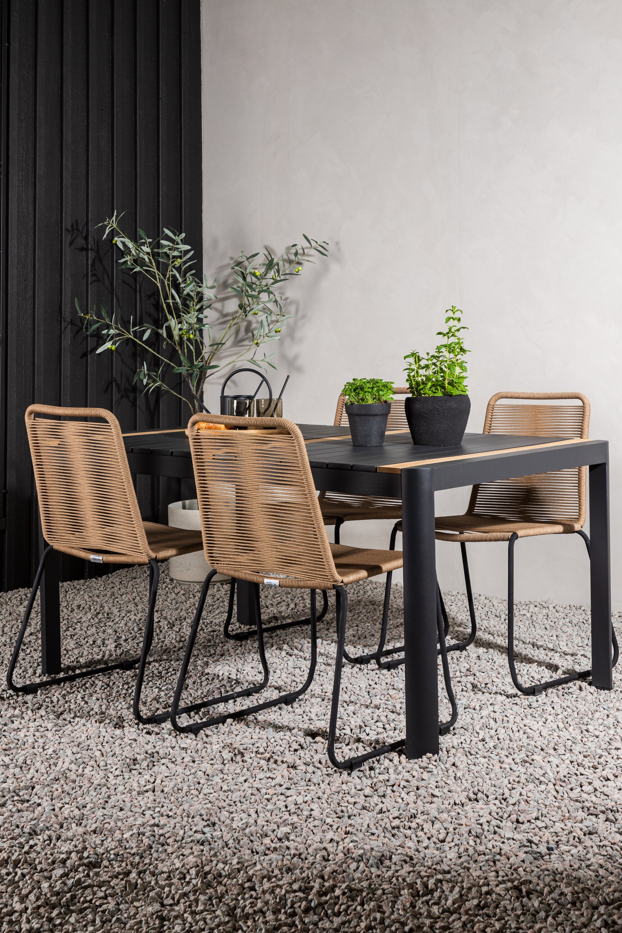 Togo - Jídelní stůl - Černá / Teak - Allu / Teak - 150*100 _1+ Lindos Stohovací židle - Black Alu / Latte Latte _4