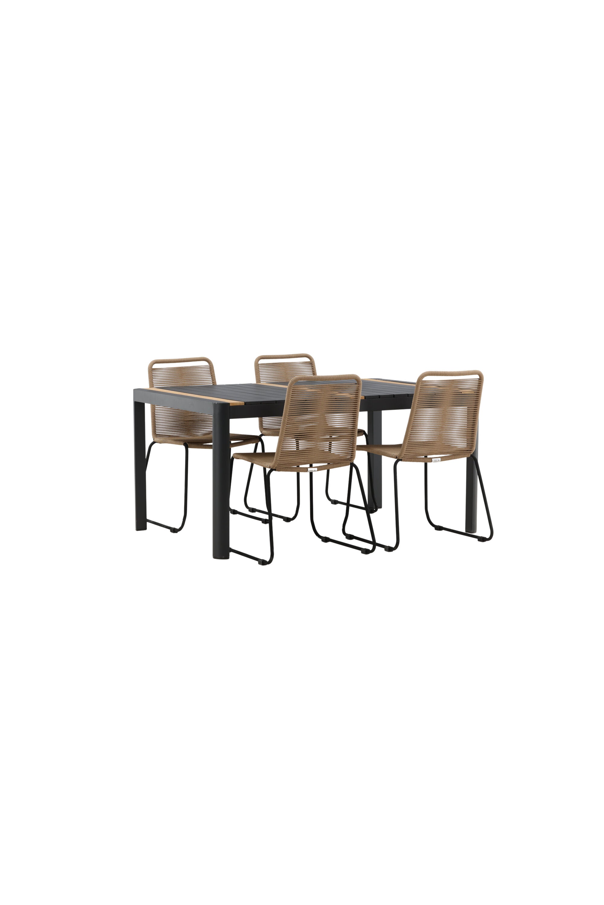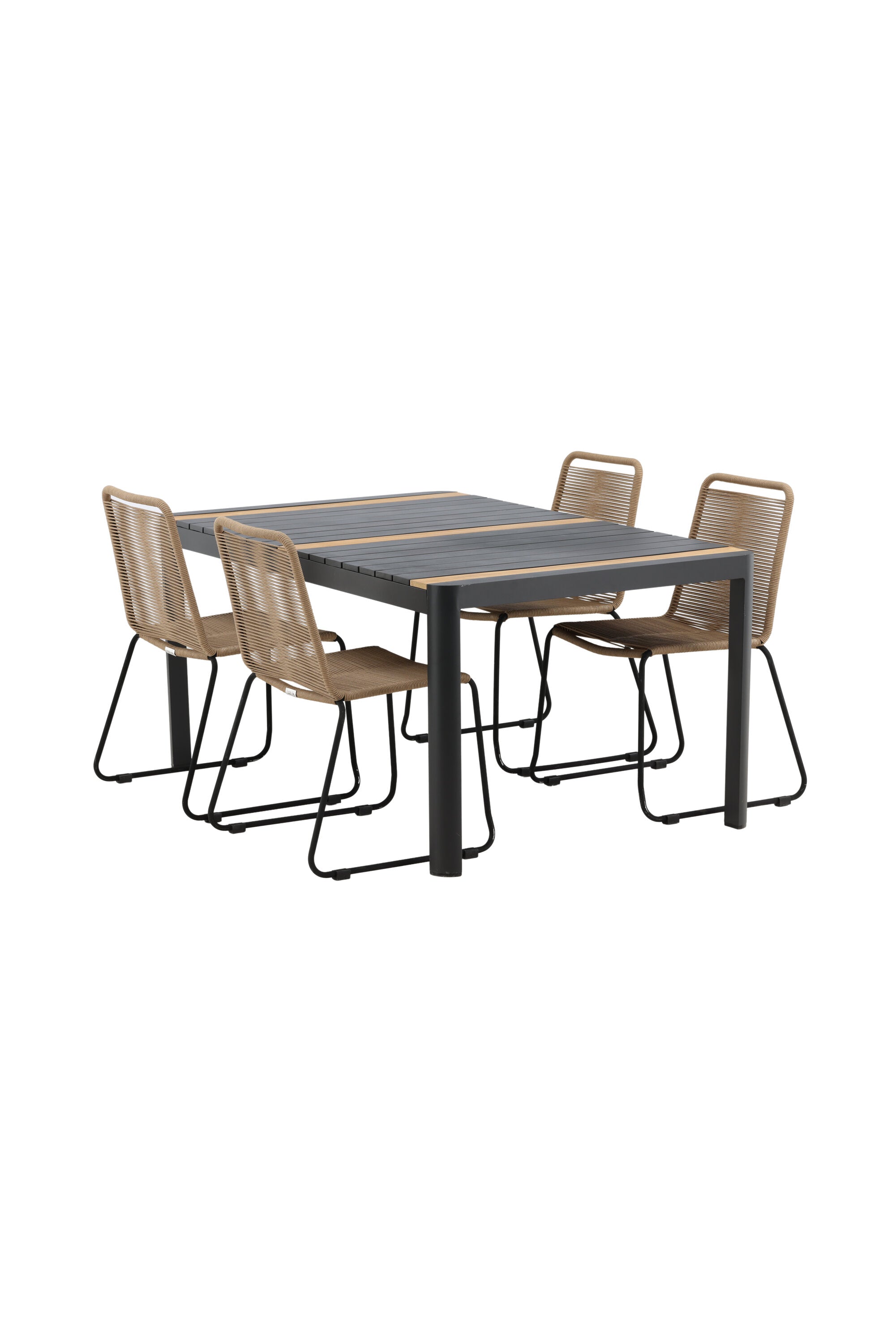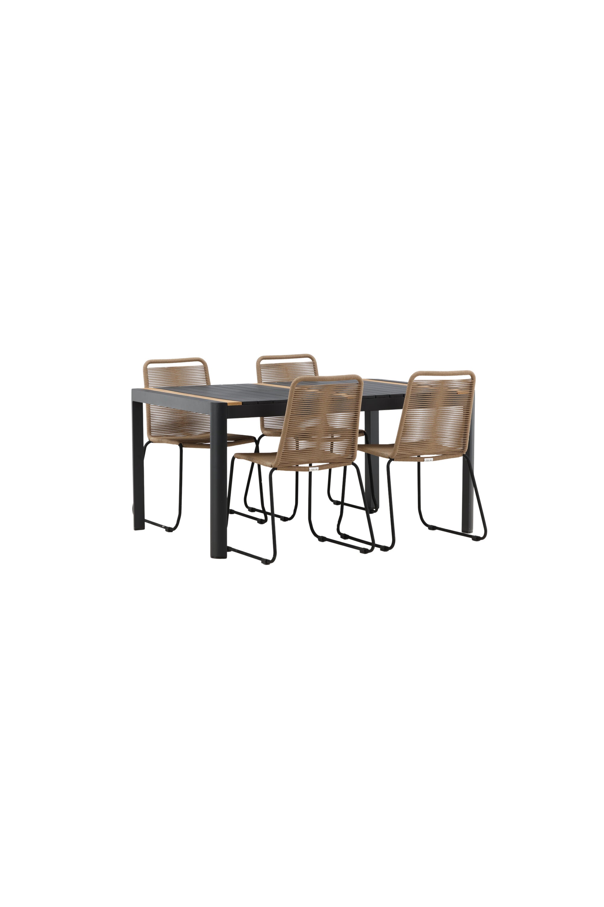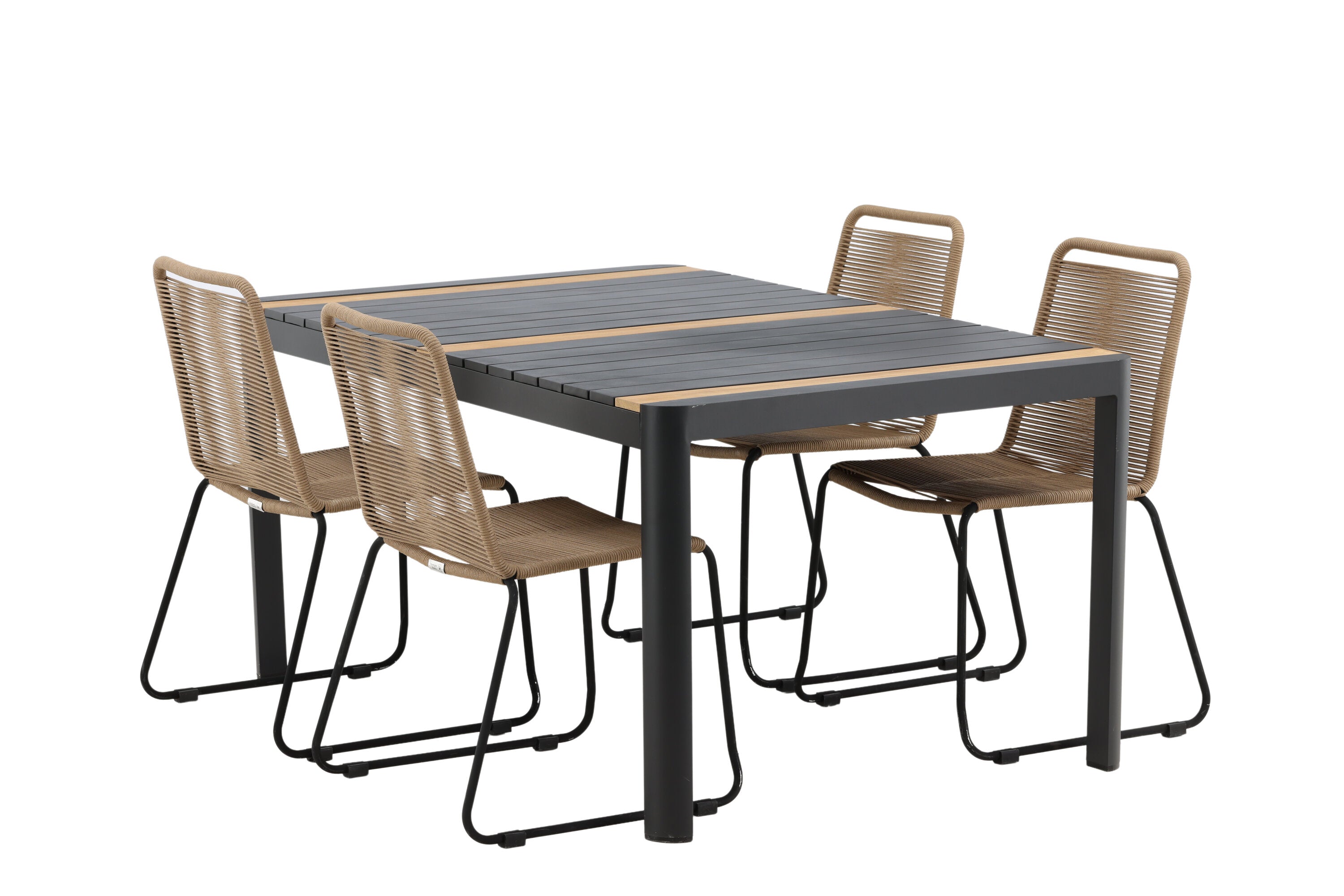 Togo - Jídelní stůl - Černá / Teak - Allu / Teak - 150*100 _1+ Lindos Stohovací židle - Black Alu / Latte Latte _4