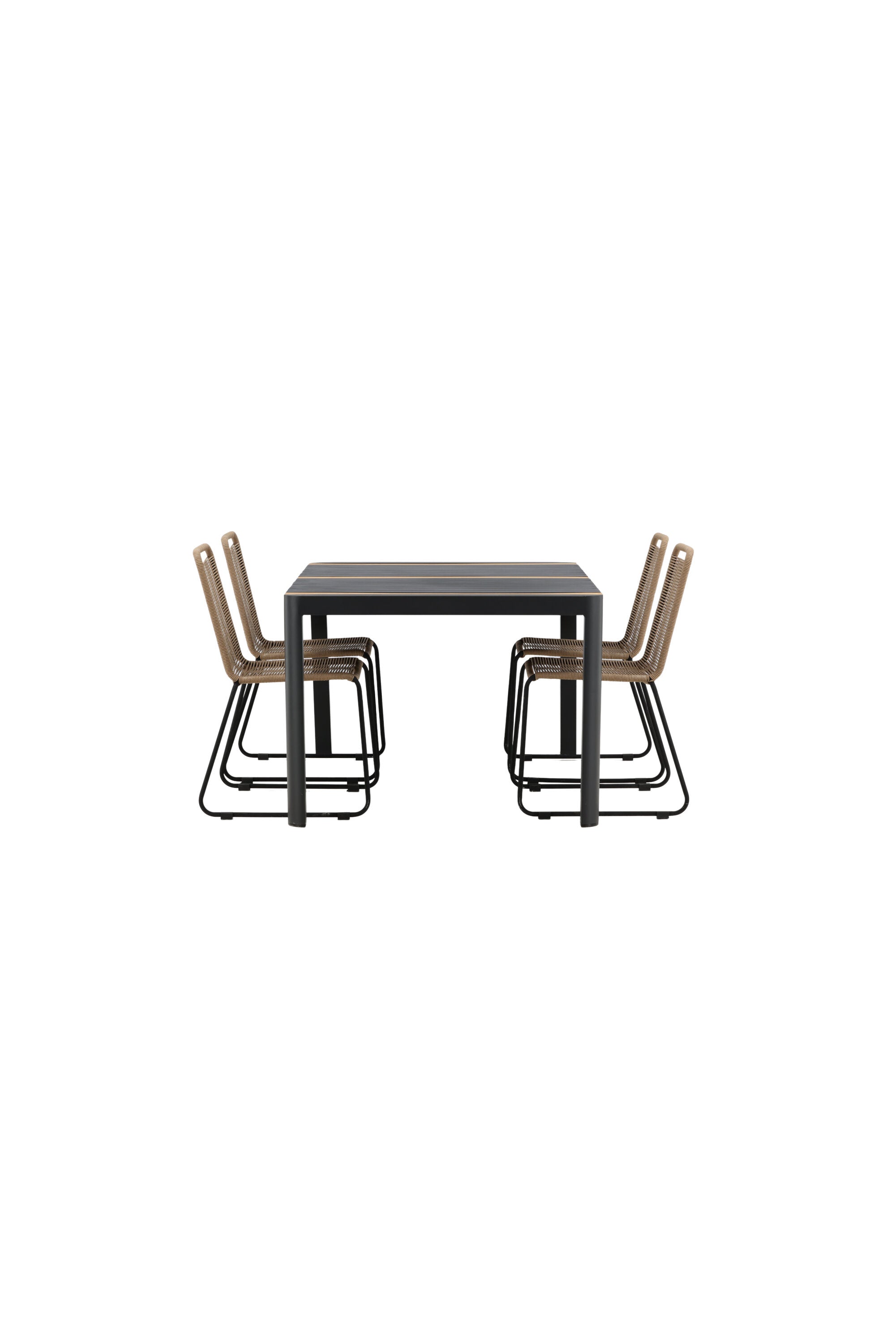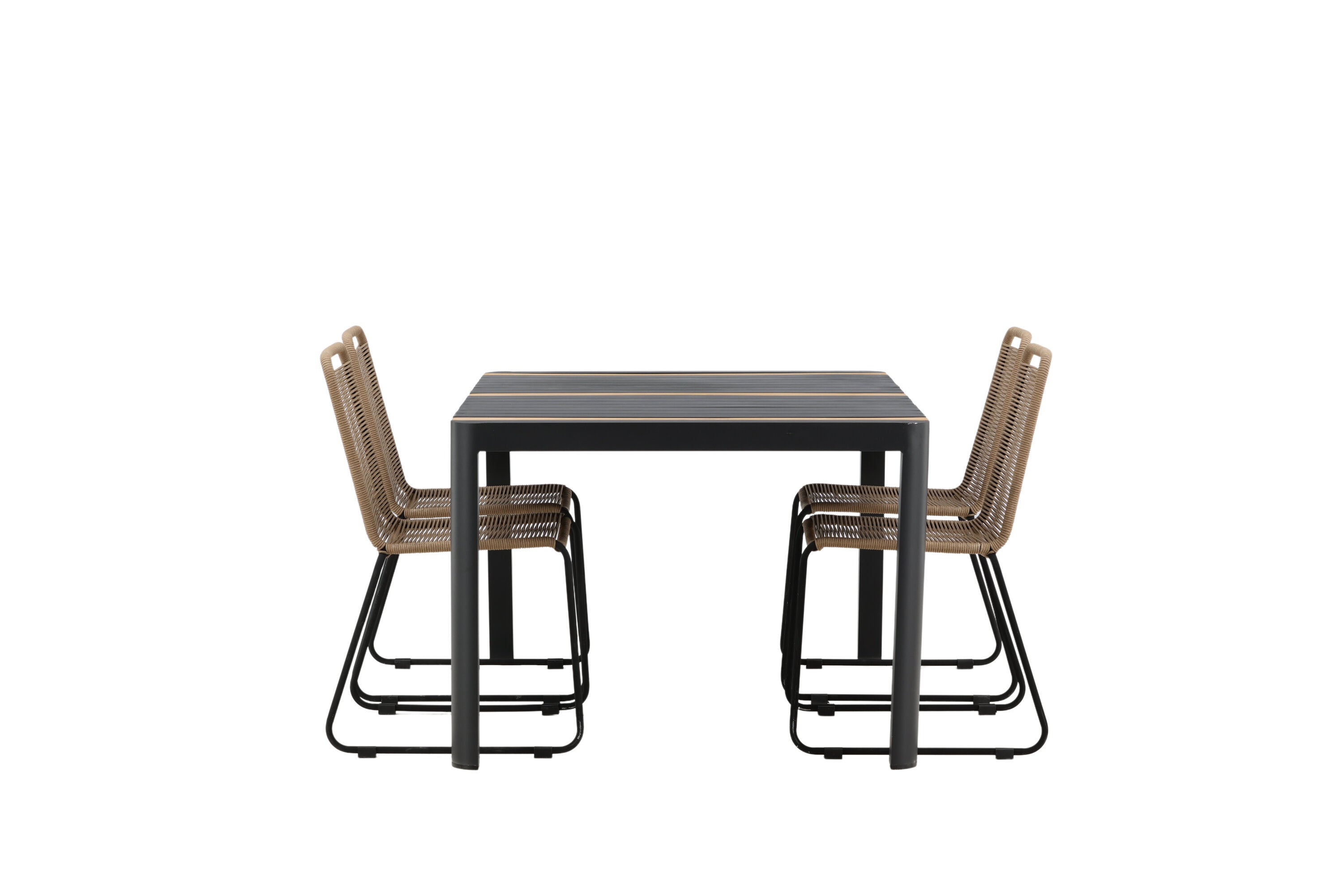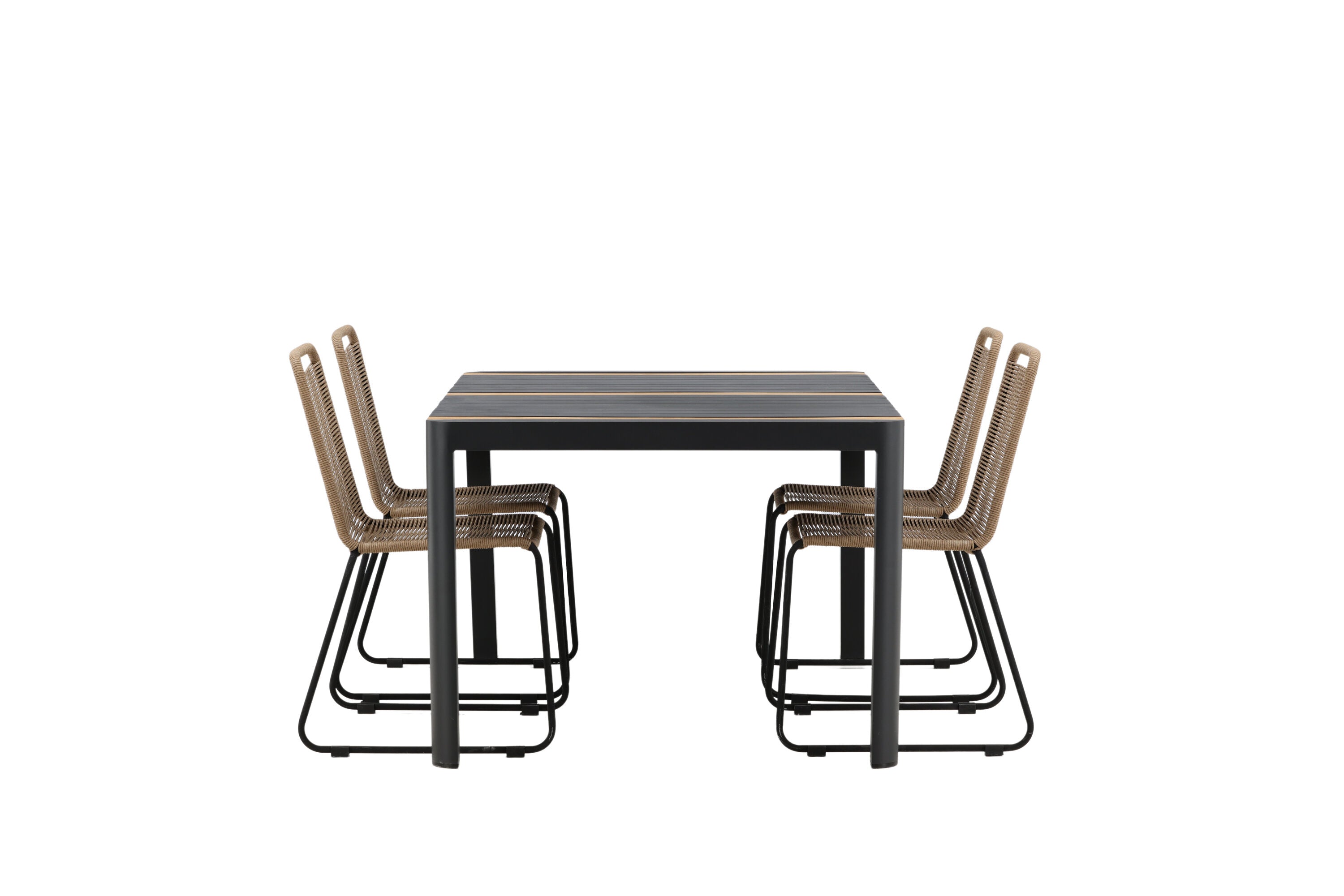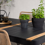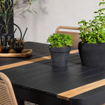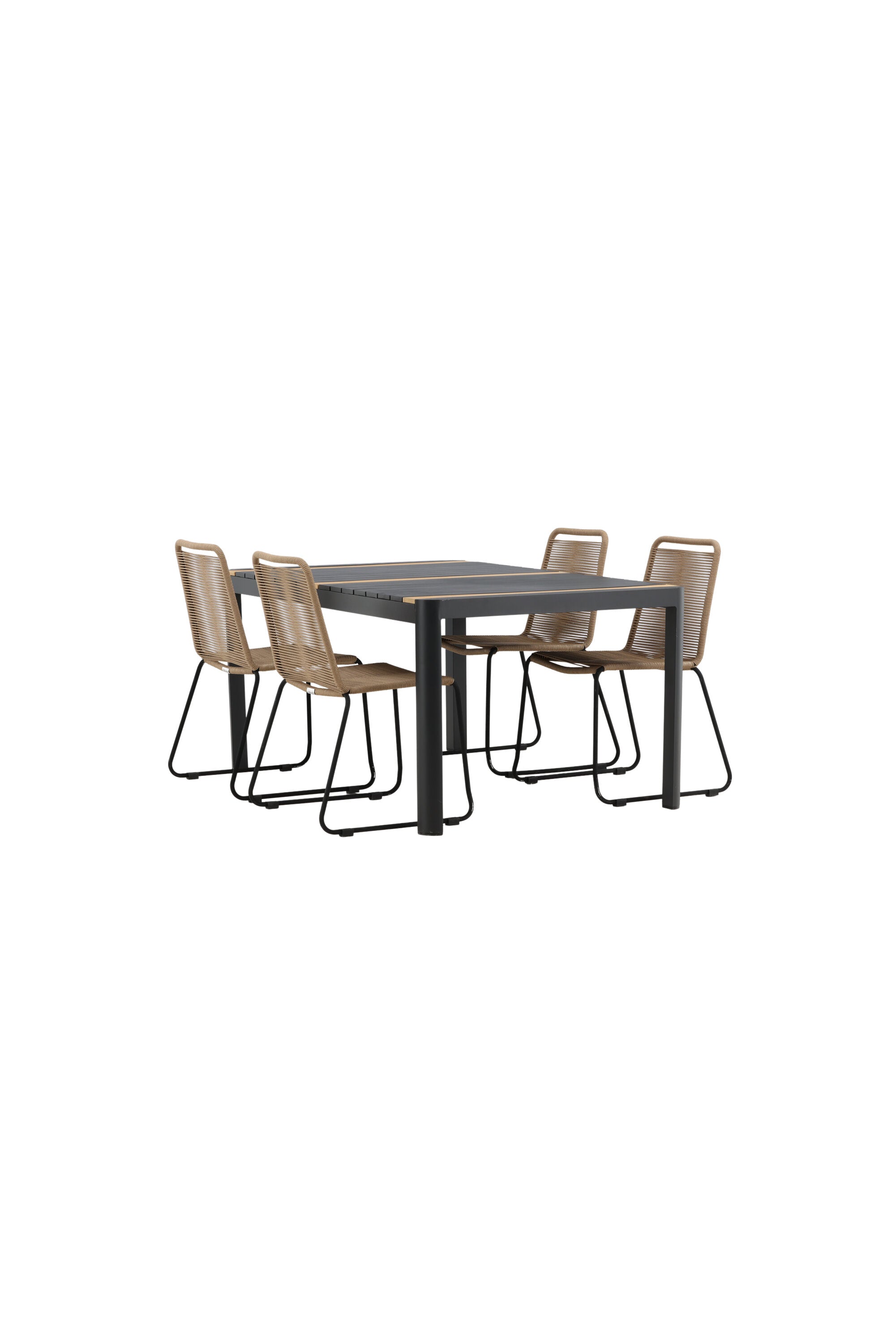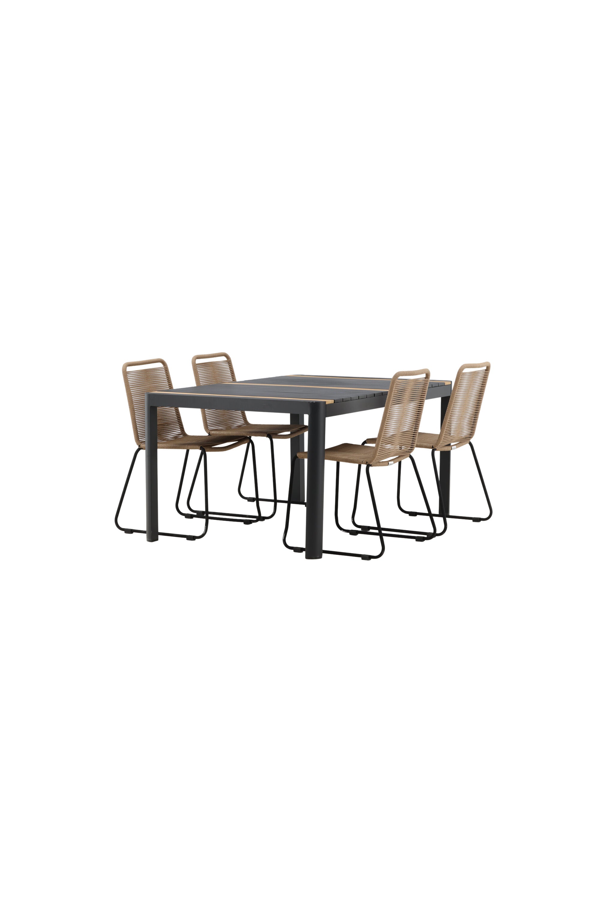 Togo - Jídelní stůl - Černá / Teak - Allu / Teak - 150*100 _1+ Lindos Stohovací židle - Black Alu / Latte Latte _4