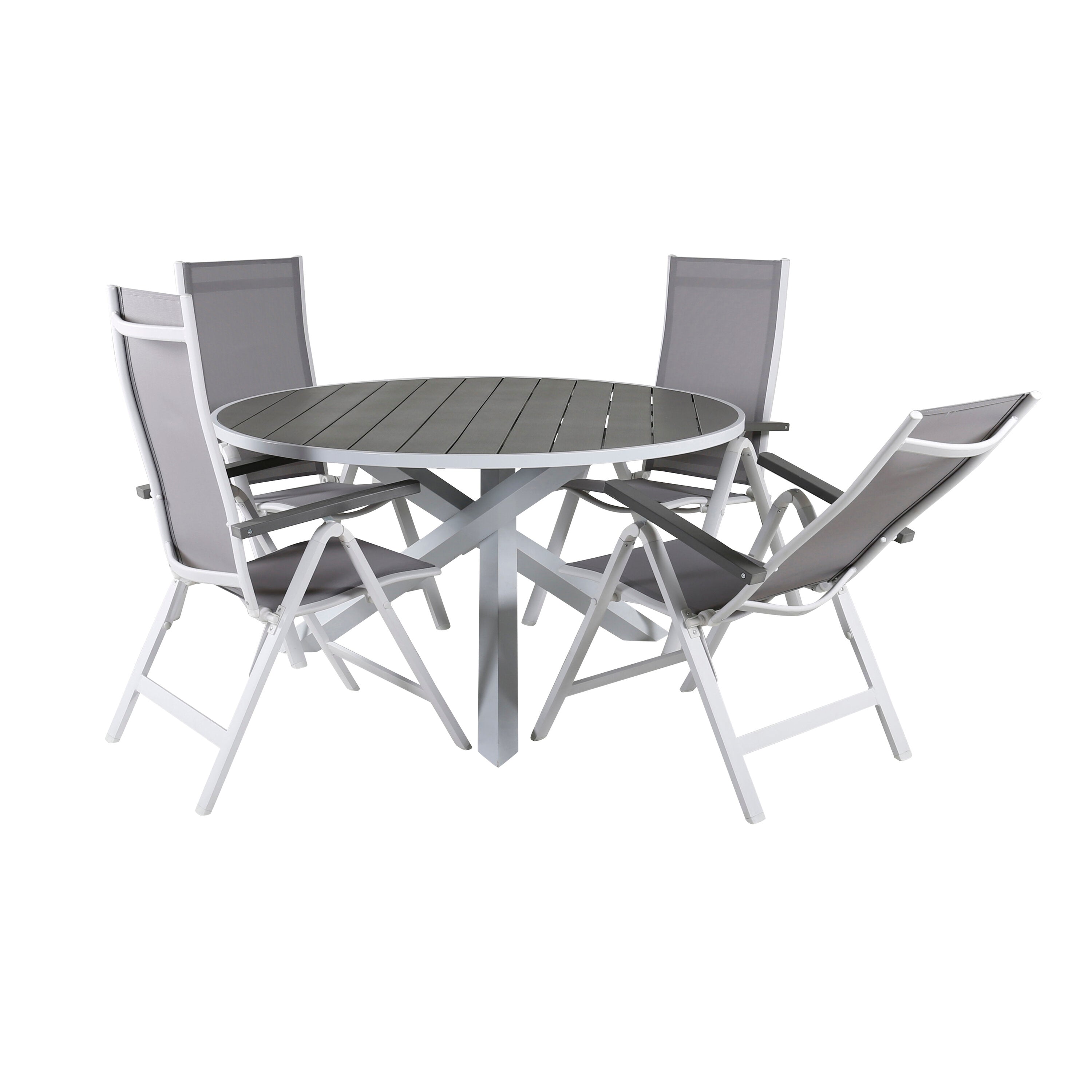 Stůl Parma ø 140 - Bílá/Šedá+Albany Světlá 5dílná bílá alu / Šedá Textilene_4