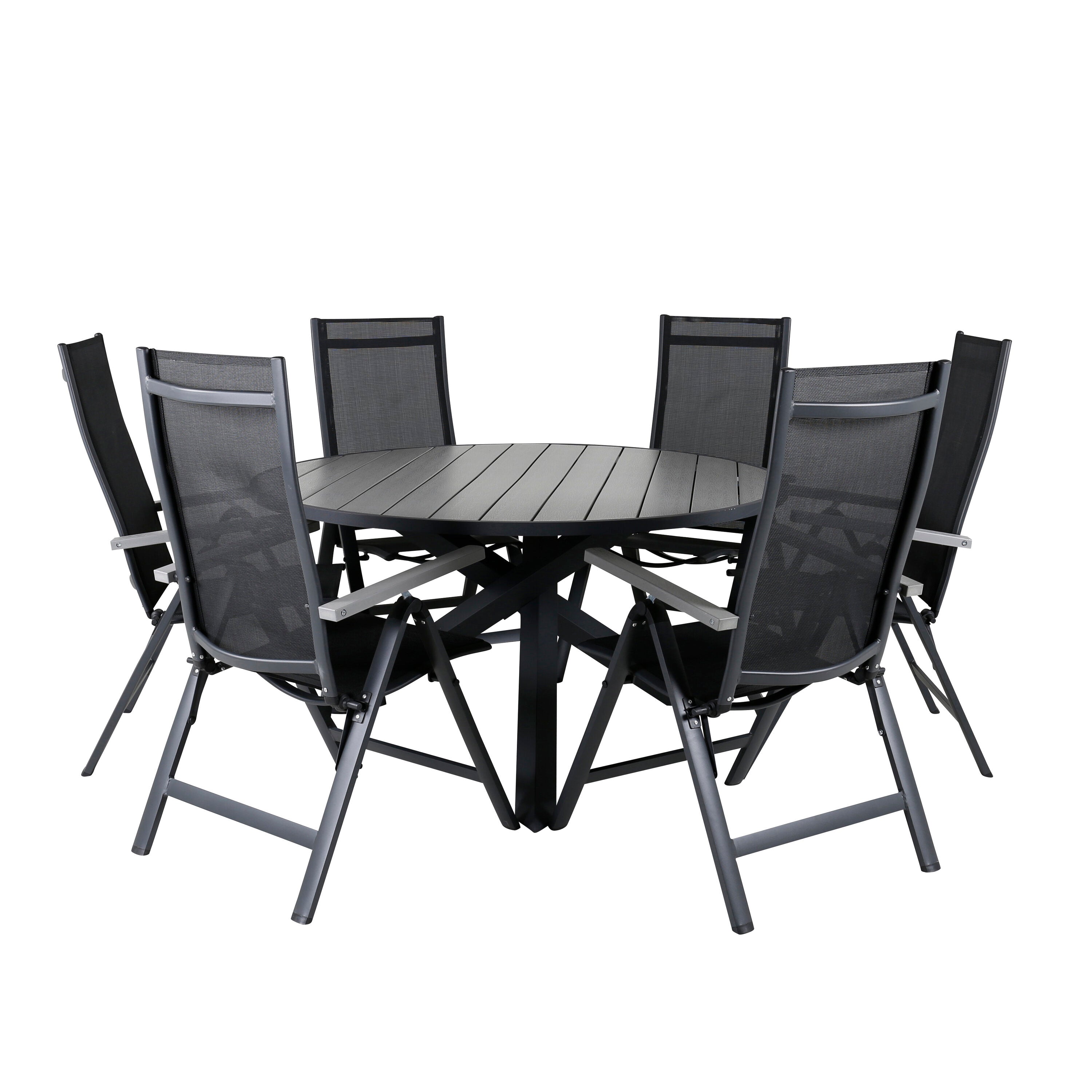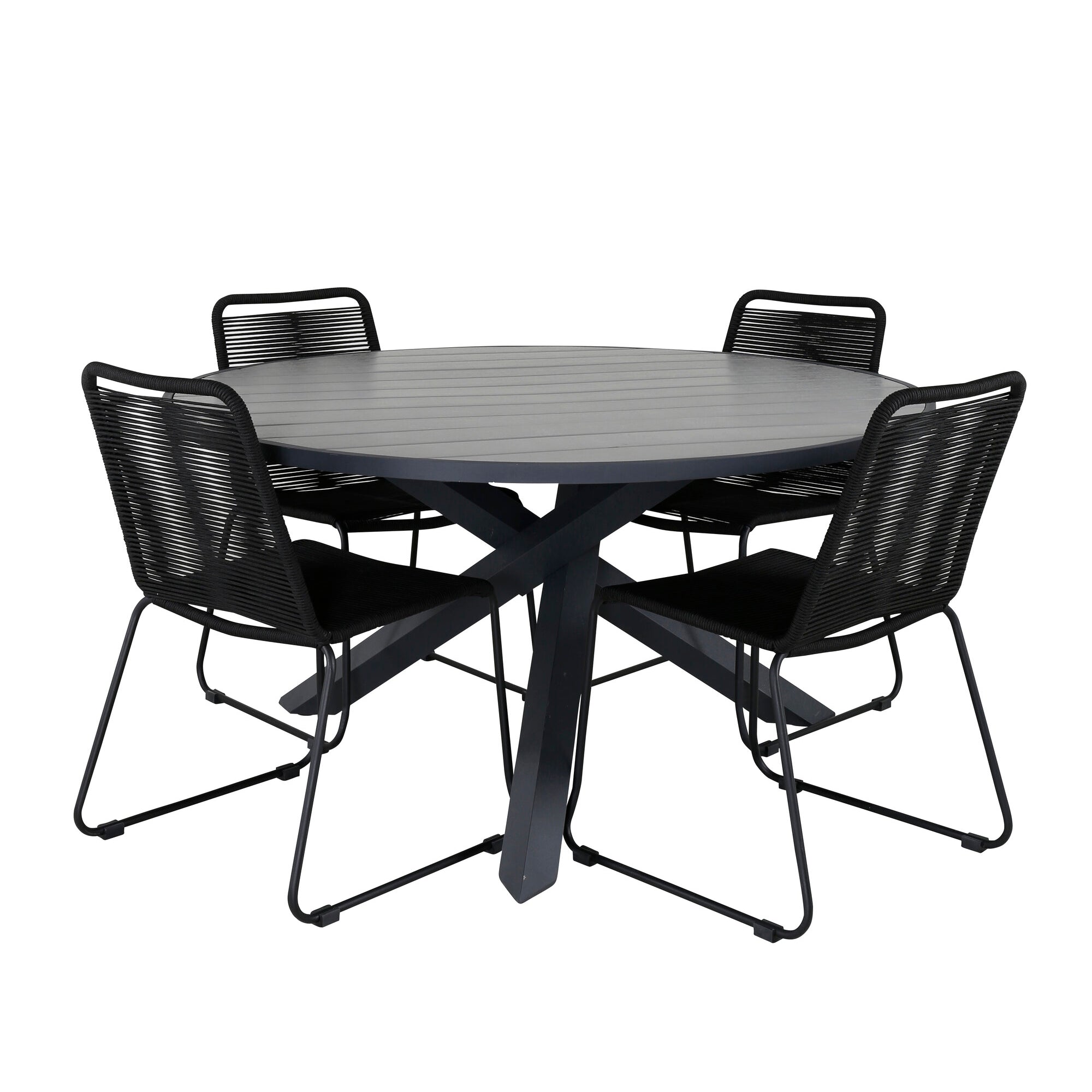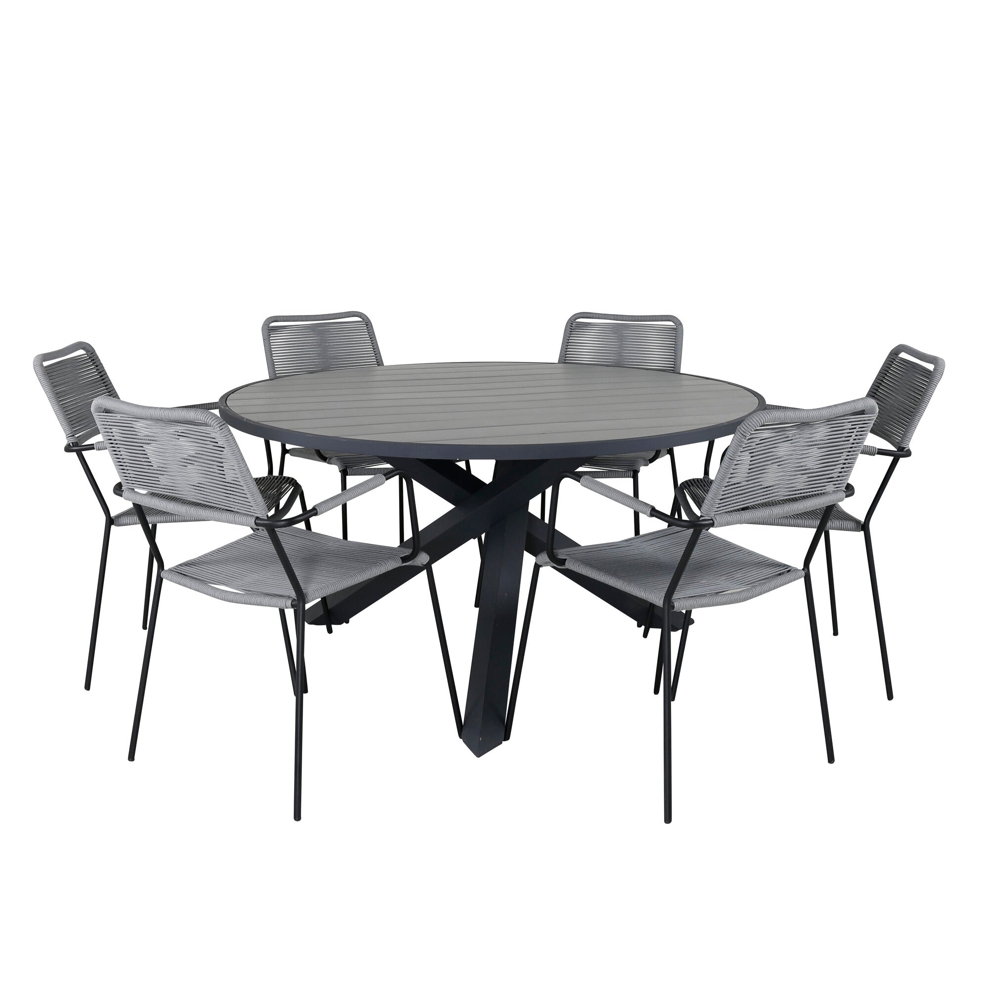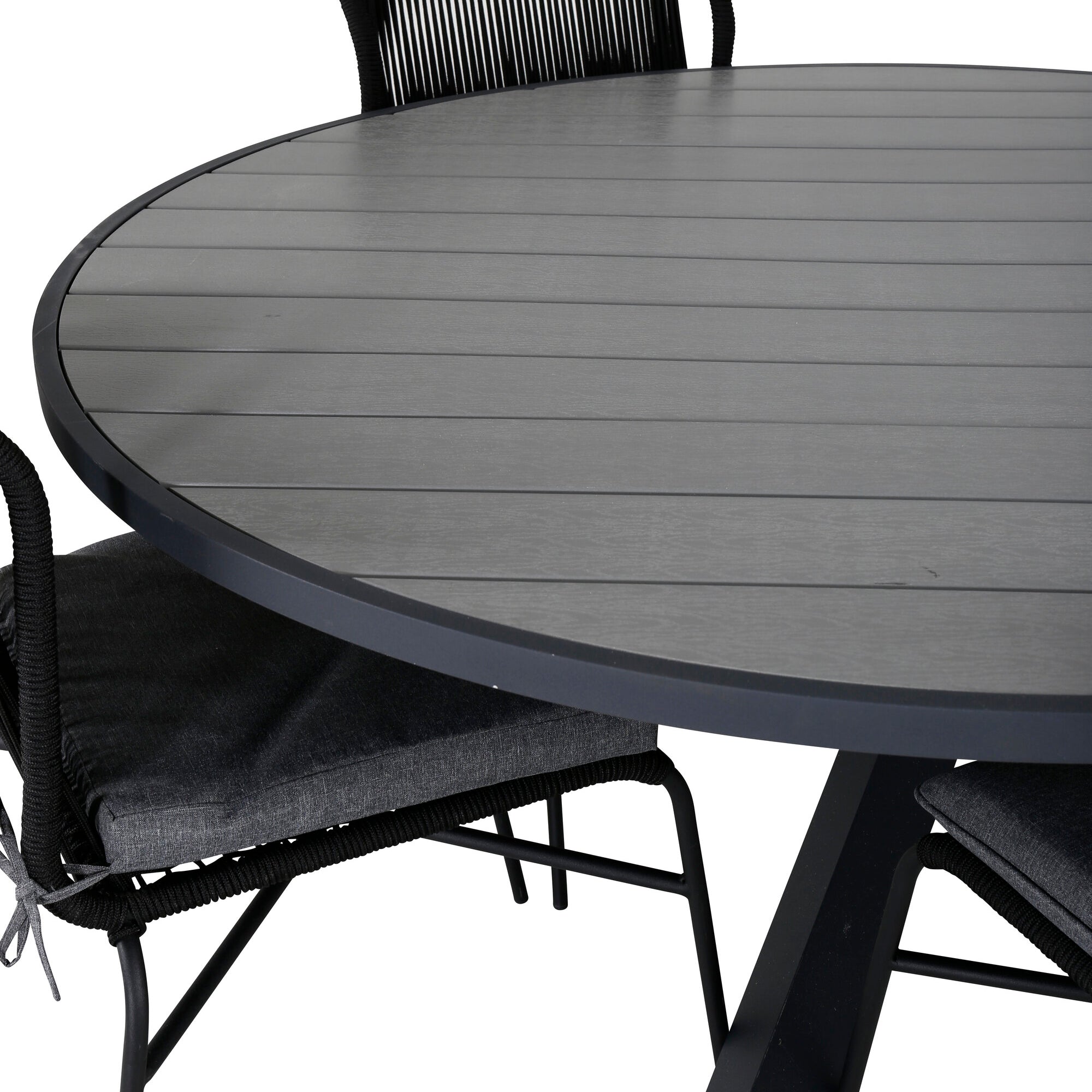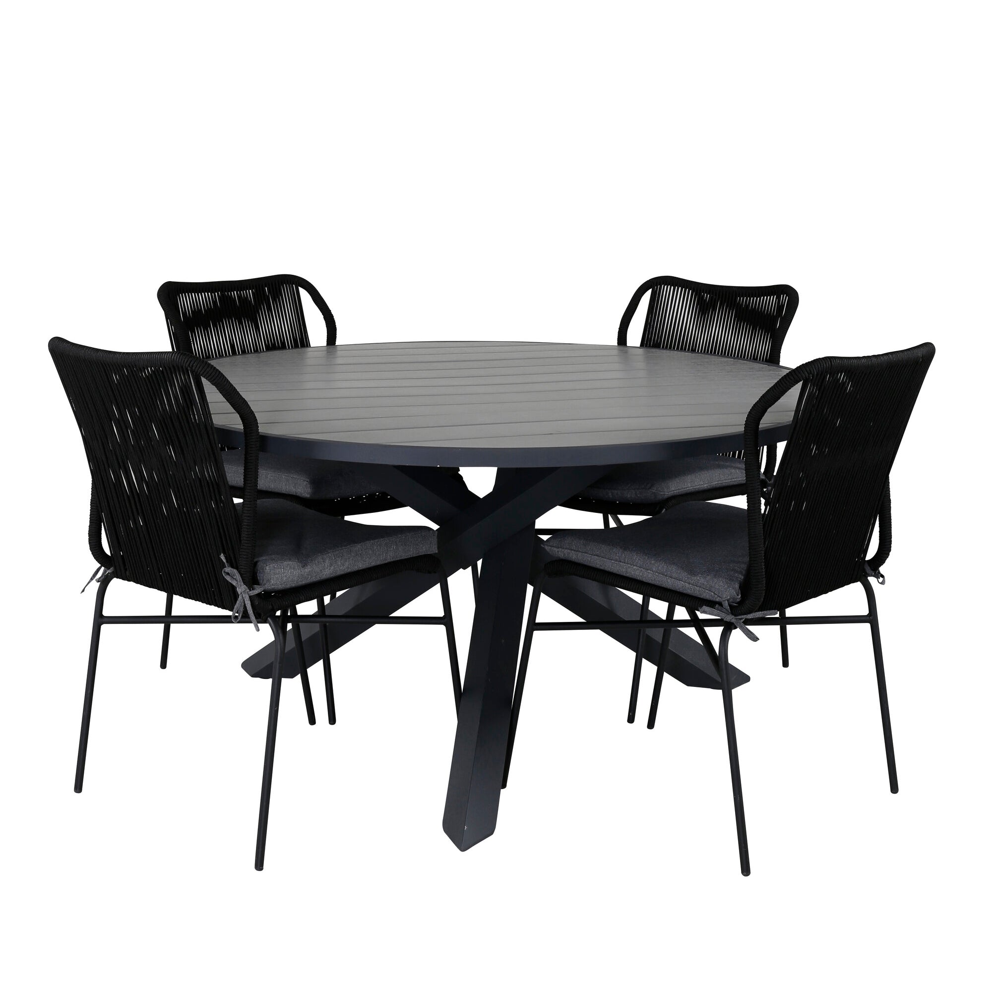 Parma - Stůl ø 140 - Černý Alu /Šedé Křeslo Aintwood+Lindos - Černý Alu / Šedé lano_6