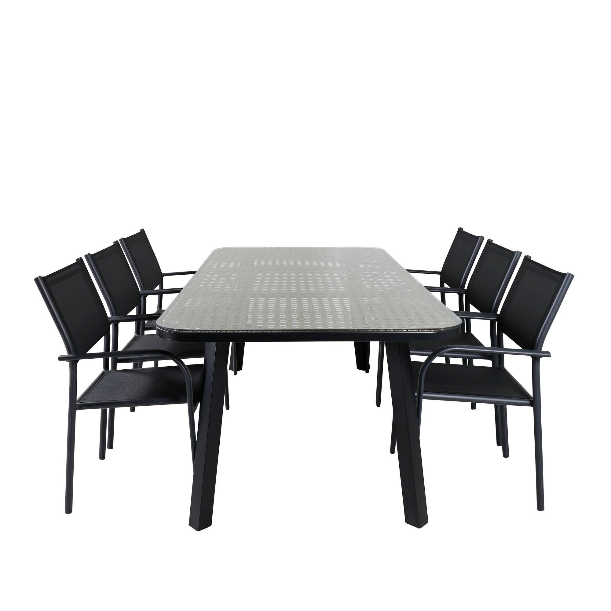 Jídelní stůl Paola - černá ocel / přírodní proutí - 200*100 + křeslo Santorini (stohovatelné) - černá alu / černá textilie_6