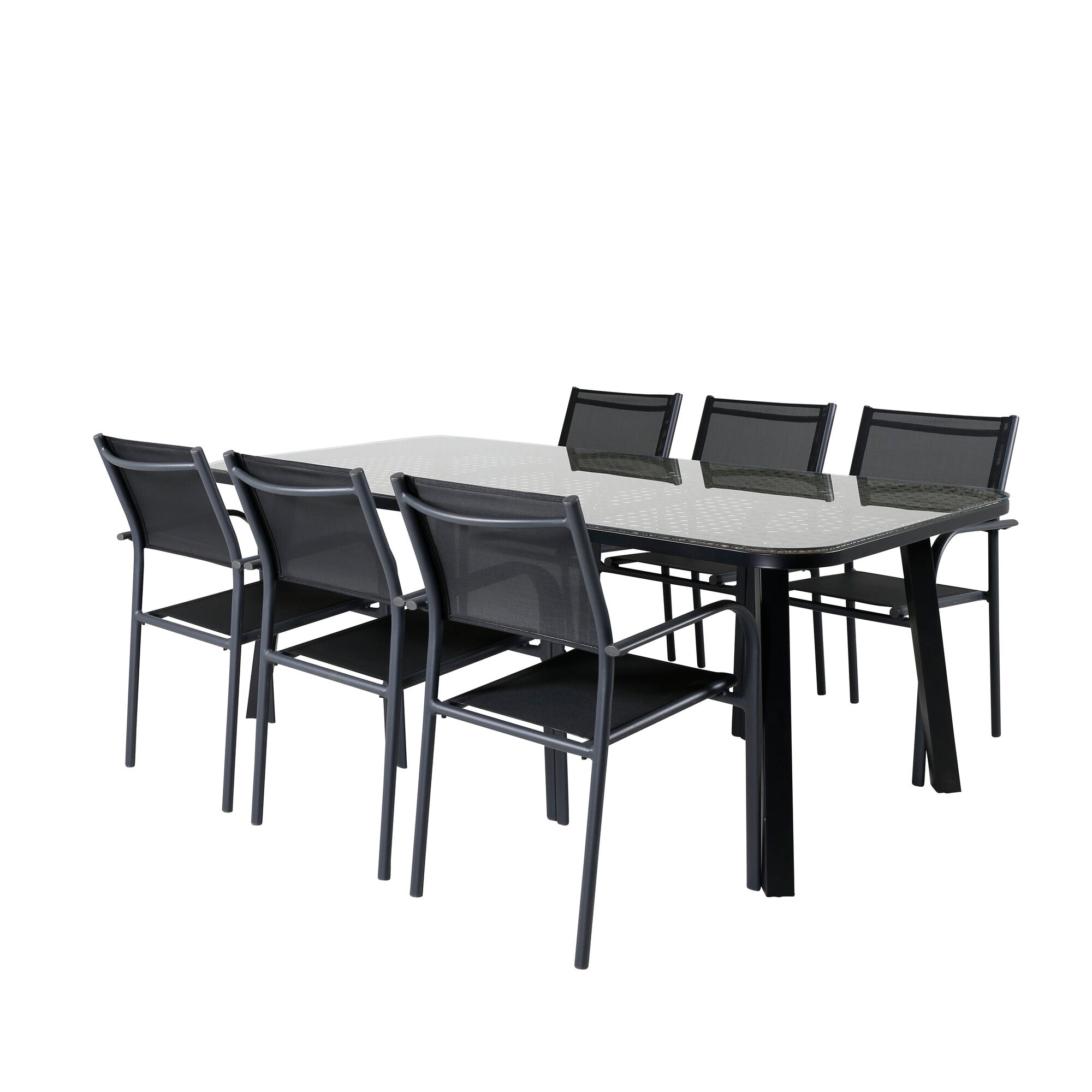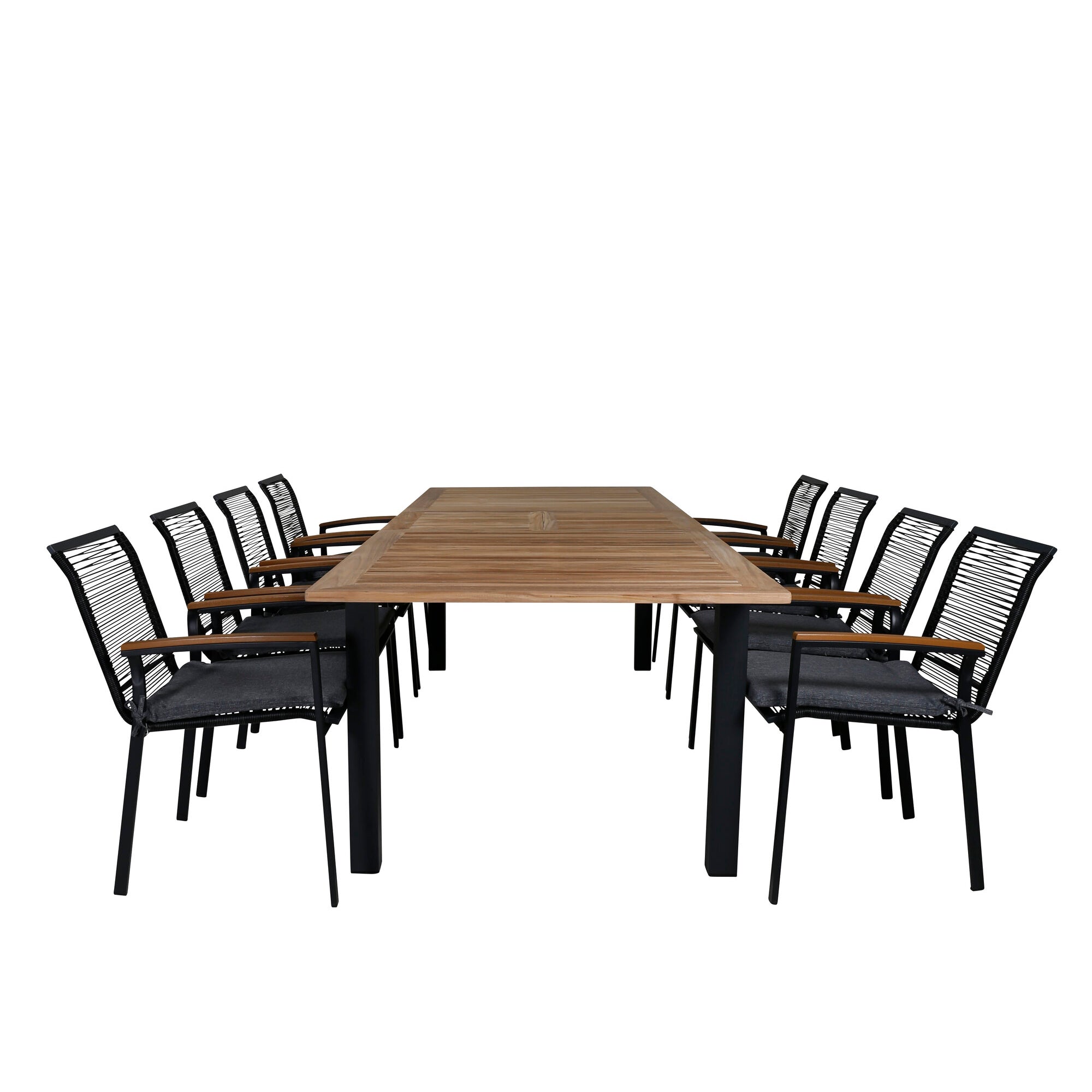 Panama - Stůl - 224/324*100 - svart Alu/Teak+Lindos Stohovací židle - Black Alu / Black Rope_8
