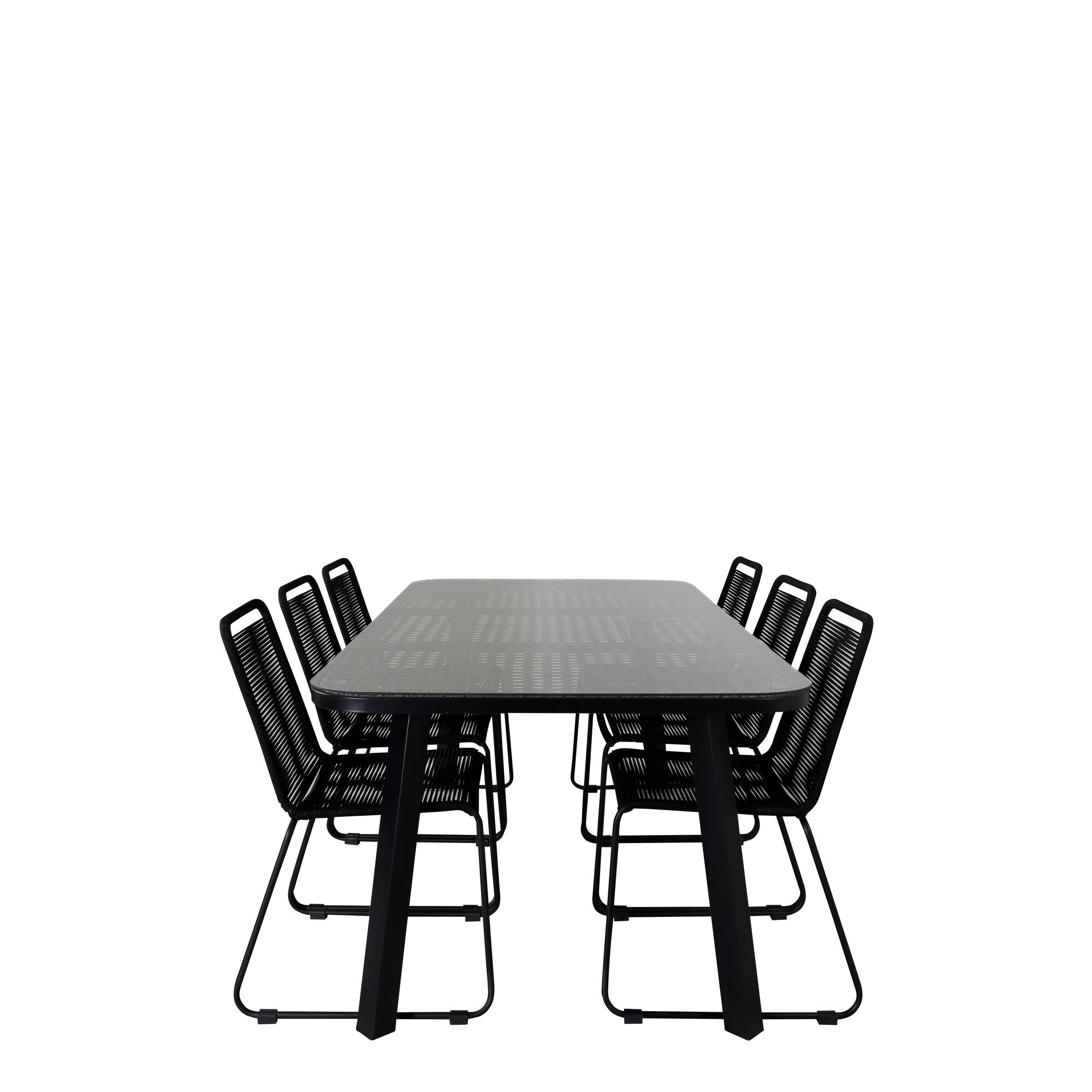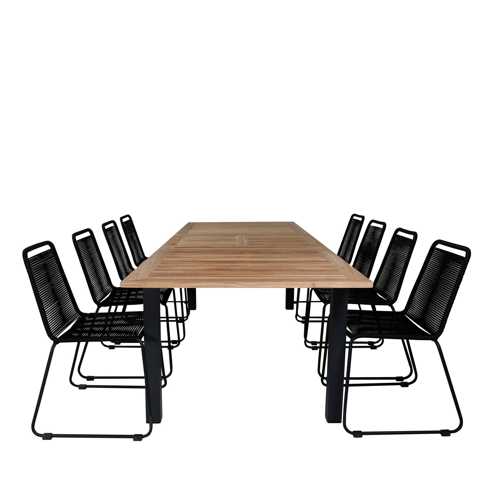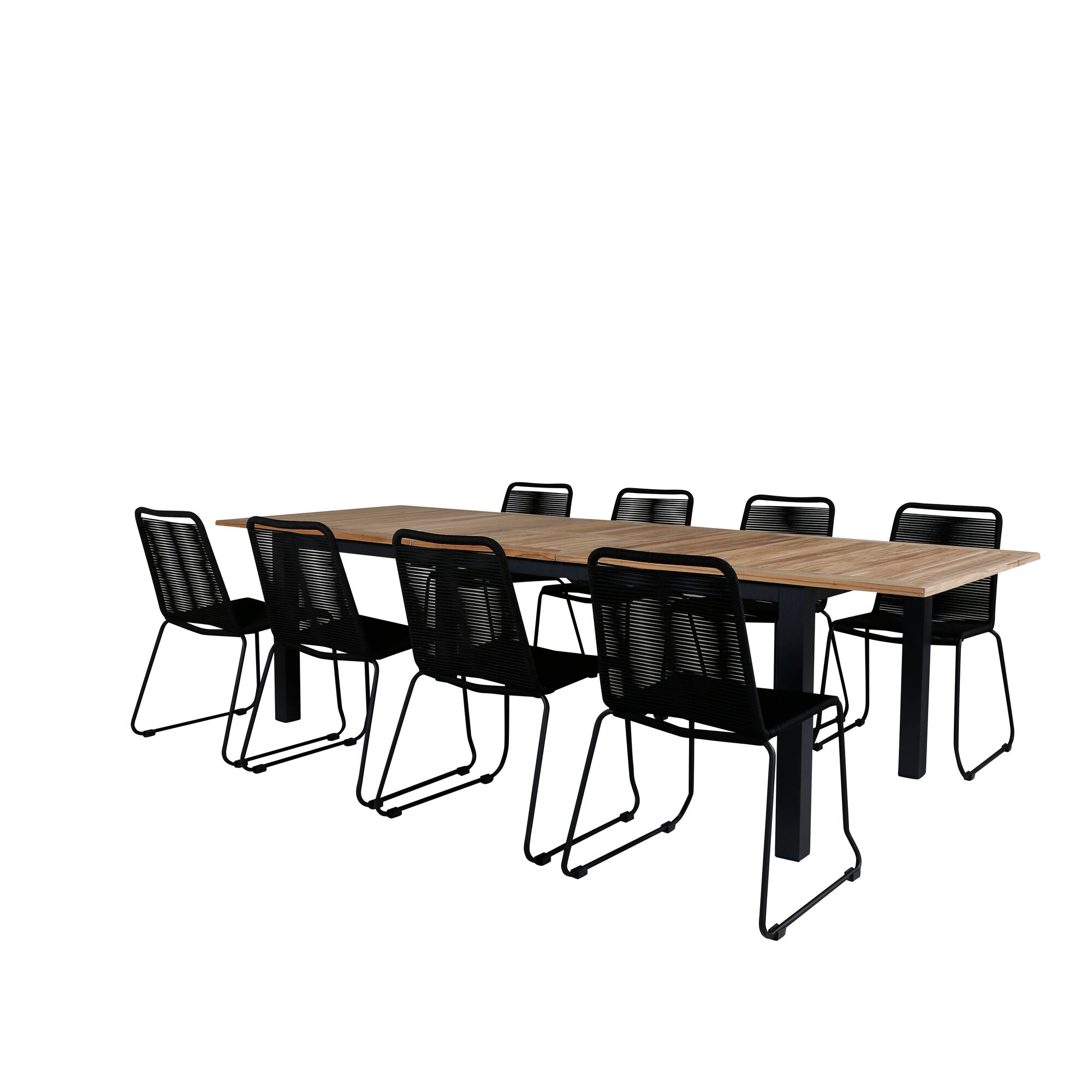 Panama - Stůl - 224/324*100 - svart Alu/Teak+Julian Jídelní židle - Černá ocel / Černé lano (stohovatelné)_8