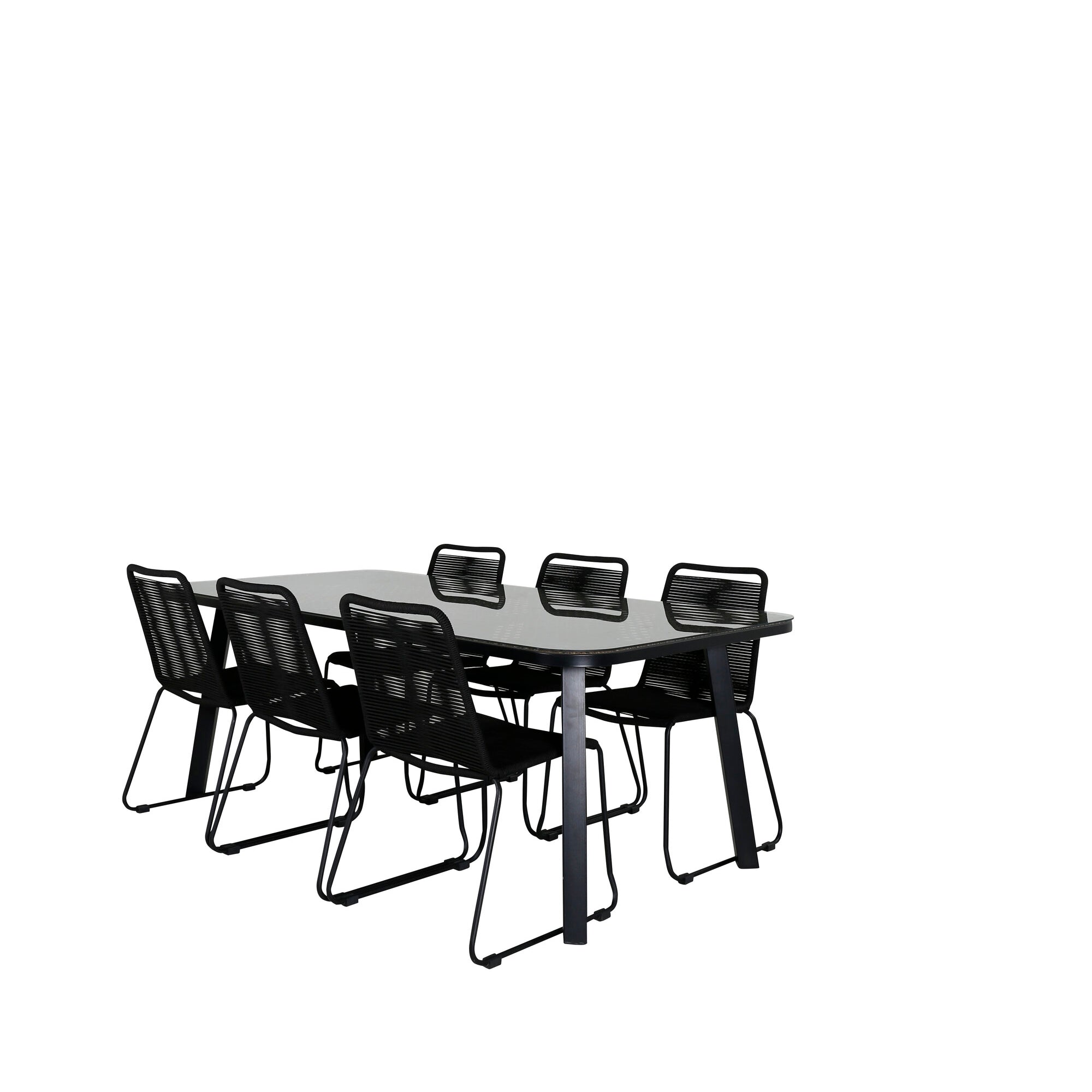 Jídelní stůl Paola - černá ocel / přírodní proutí - 200*100+Lindos stohovací židle - černá Alu / černé lano_6