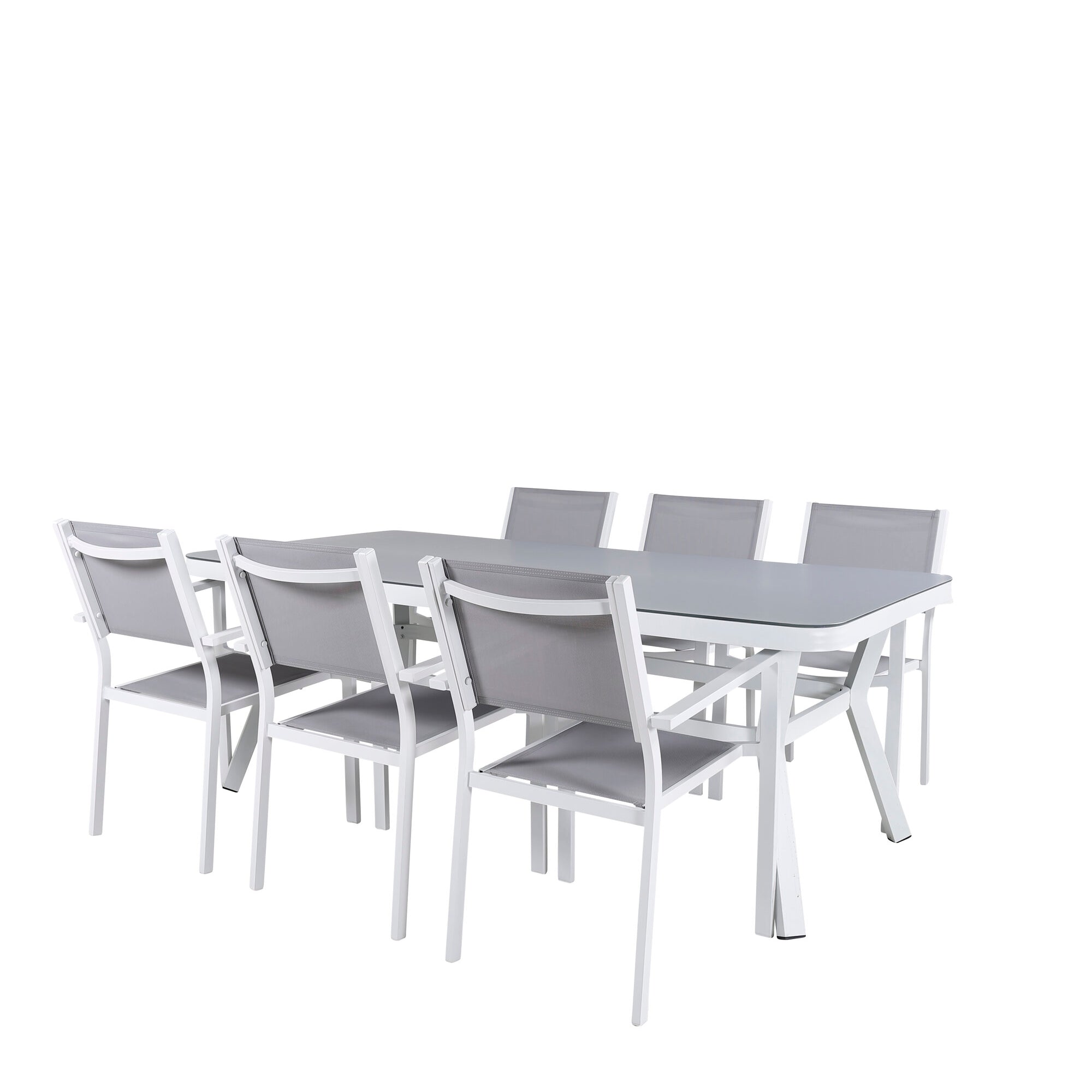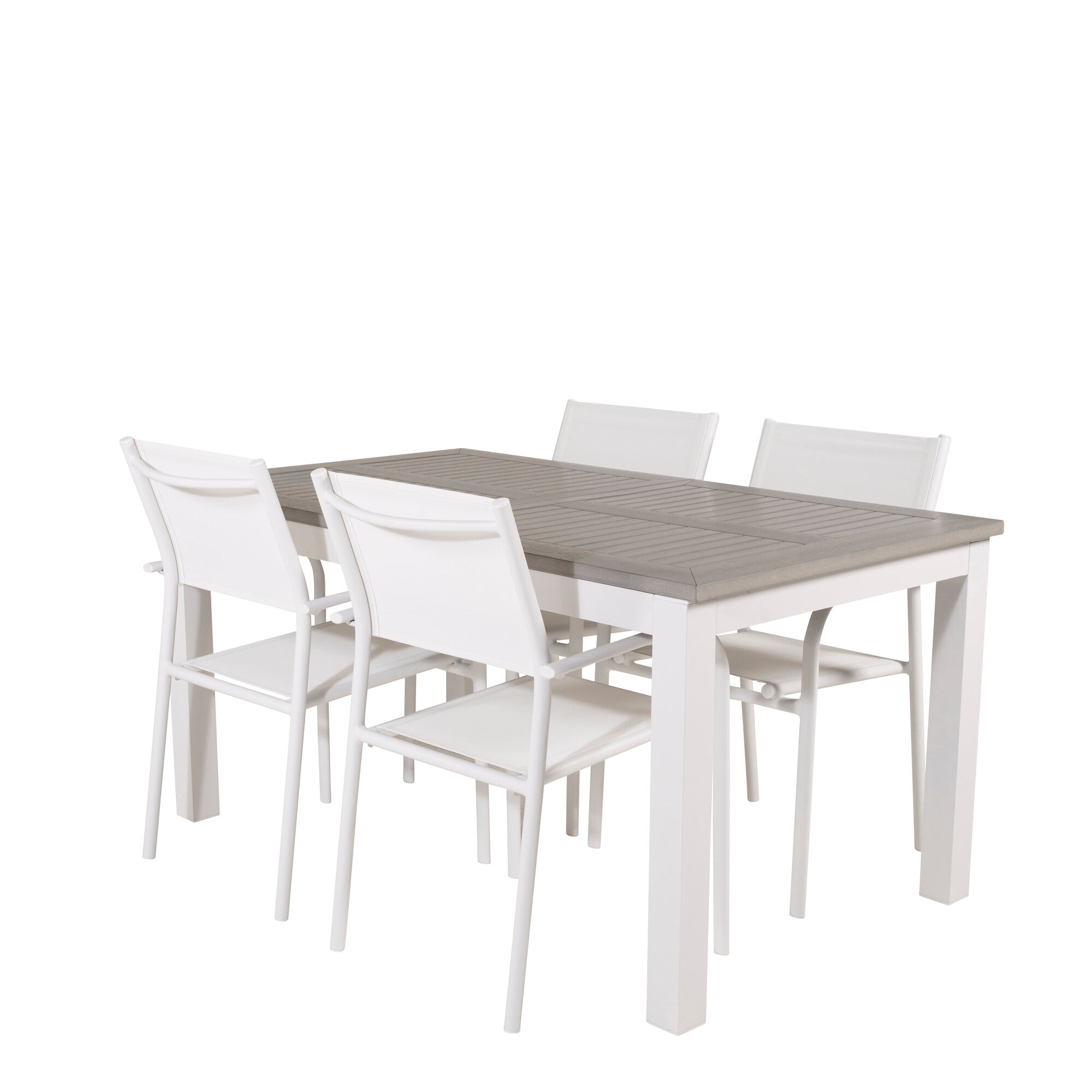 Albany stůl - 160/240 - Bílá/Šedá+Alina Jídelní židle - Bílá Alu / Bílá Textilene_6