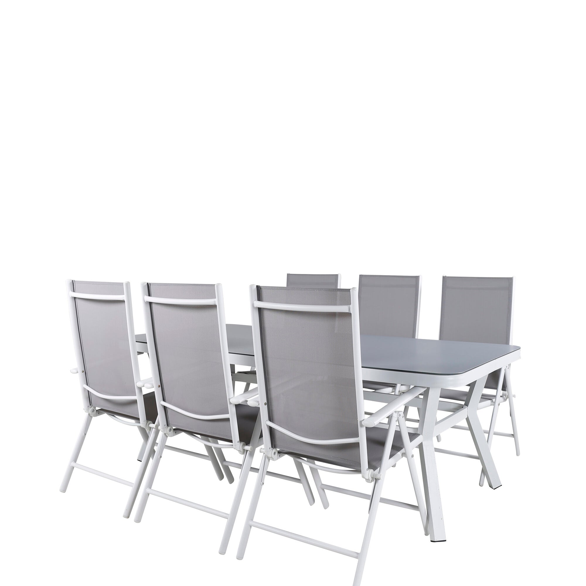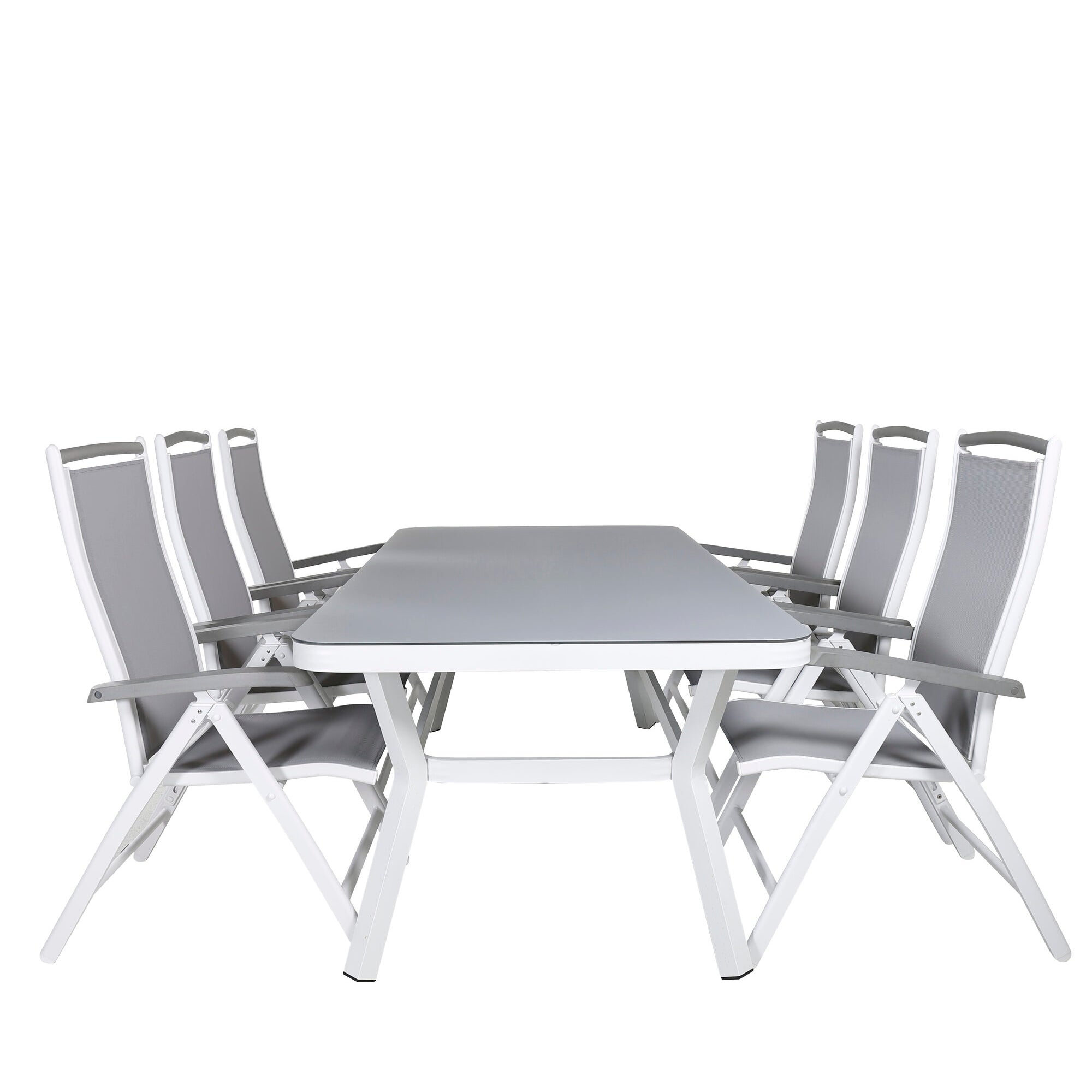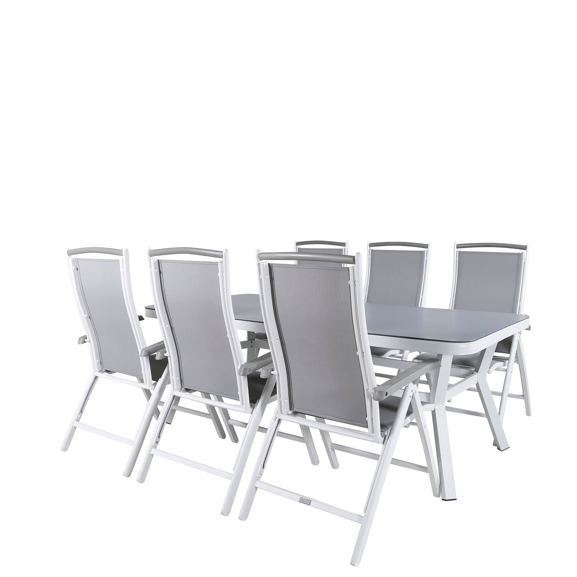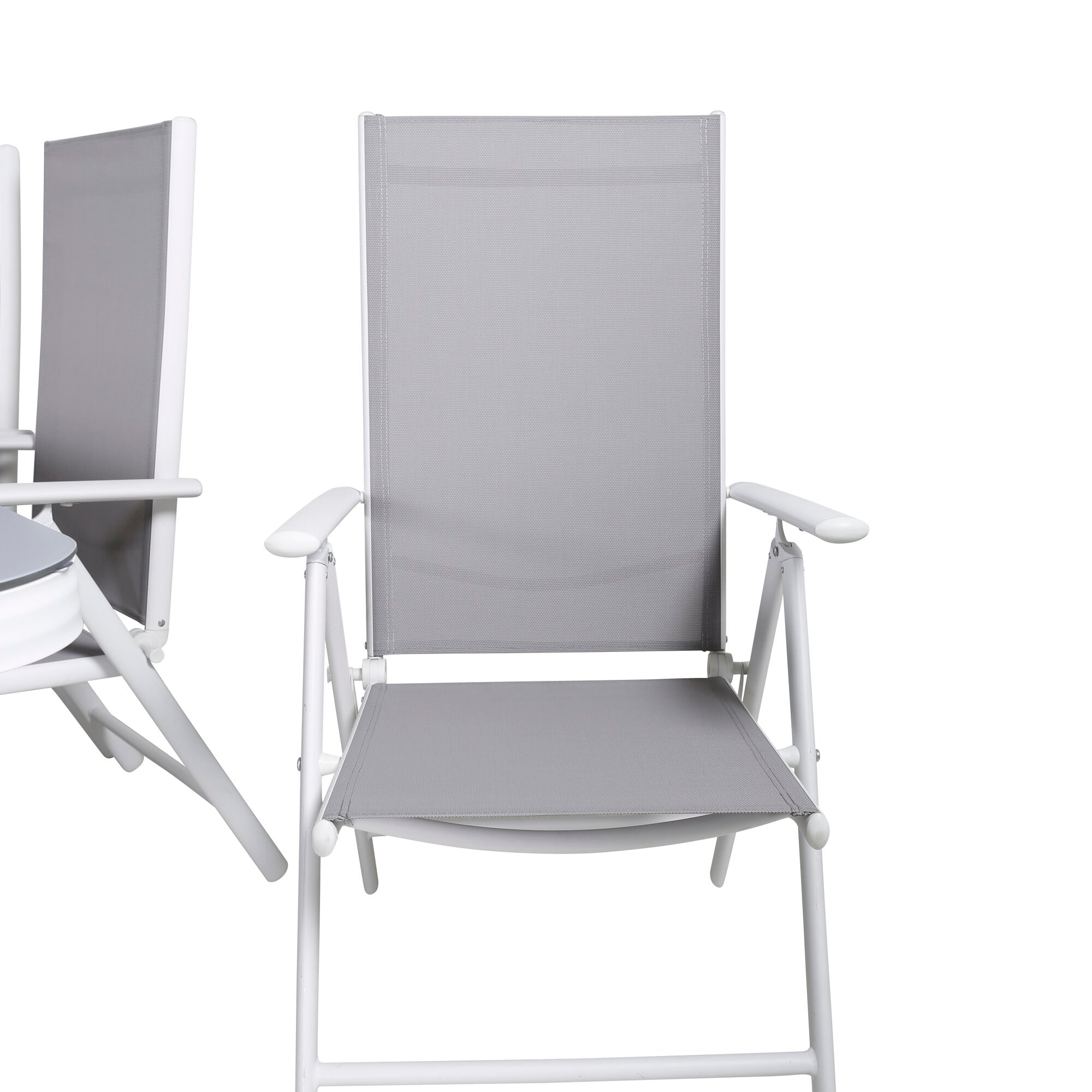 Jídelní stůl Albany 152/210*90 - Bílá Alu / Šedá Aintwood+Copacabana Polohovací křeslo (stohovatelné) - Bílá Alu / Šedá Textilene_6