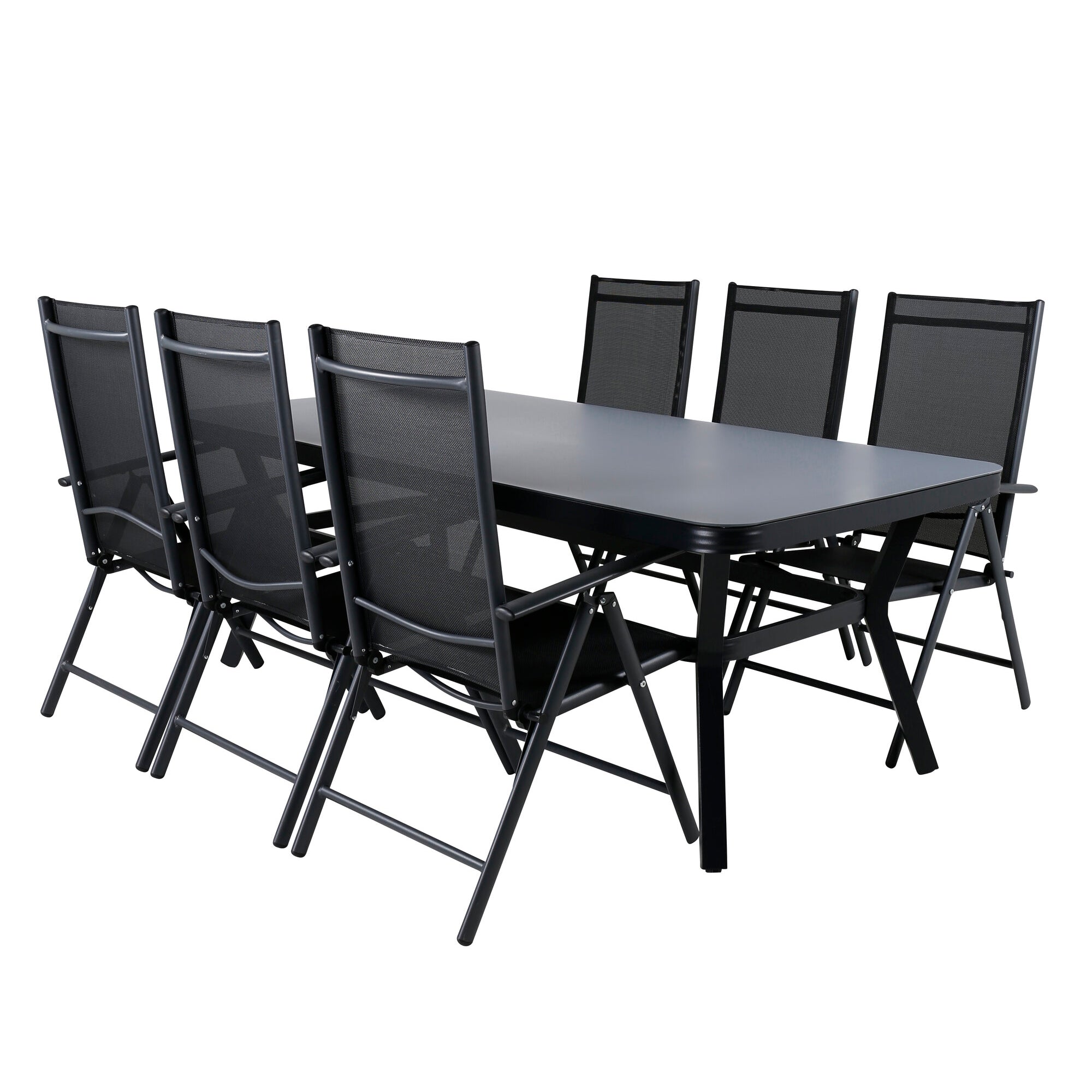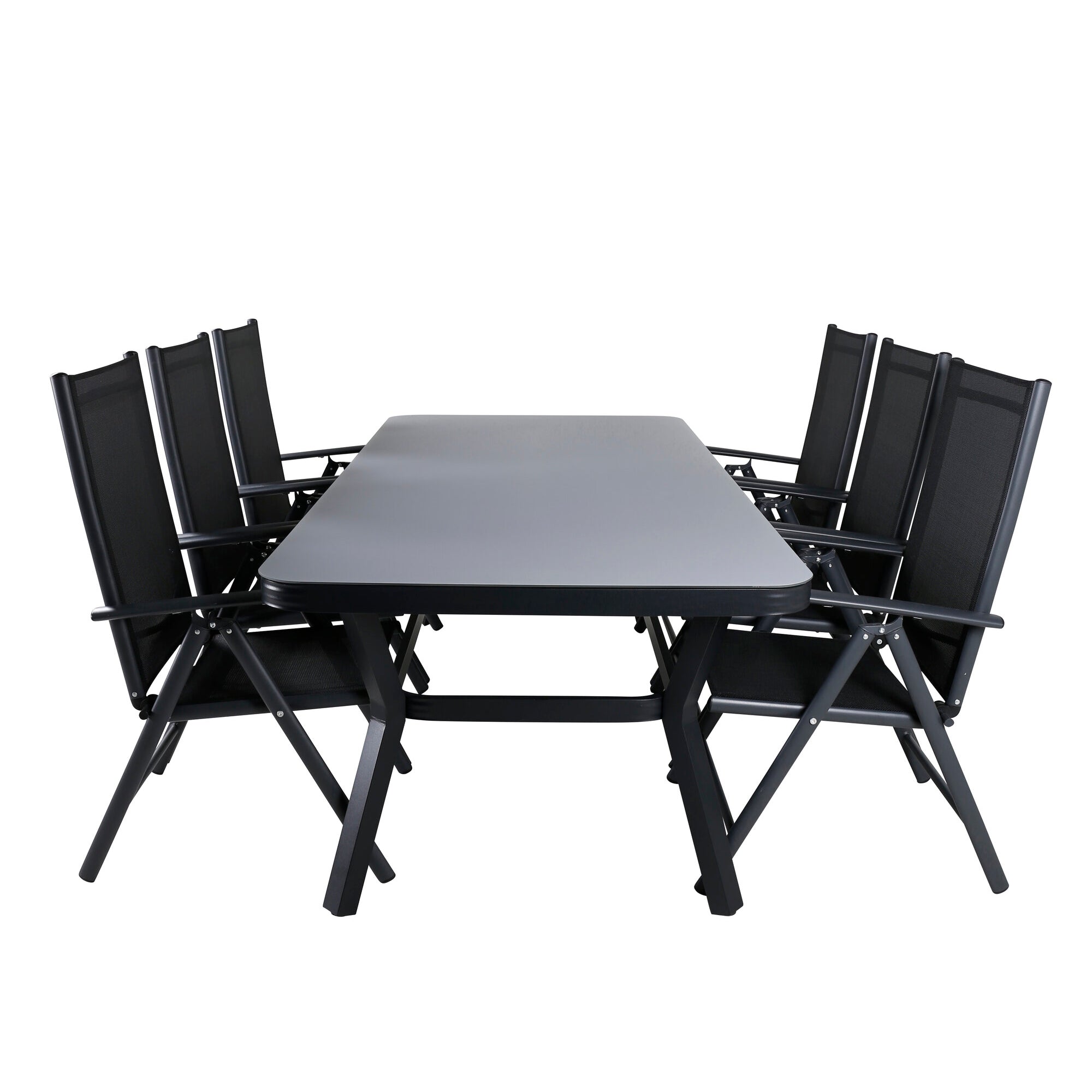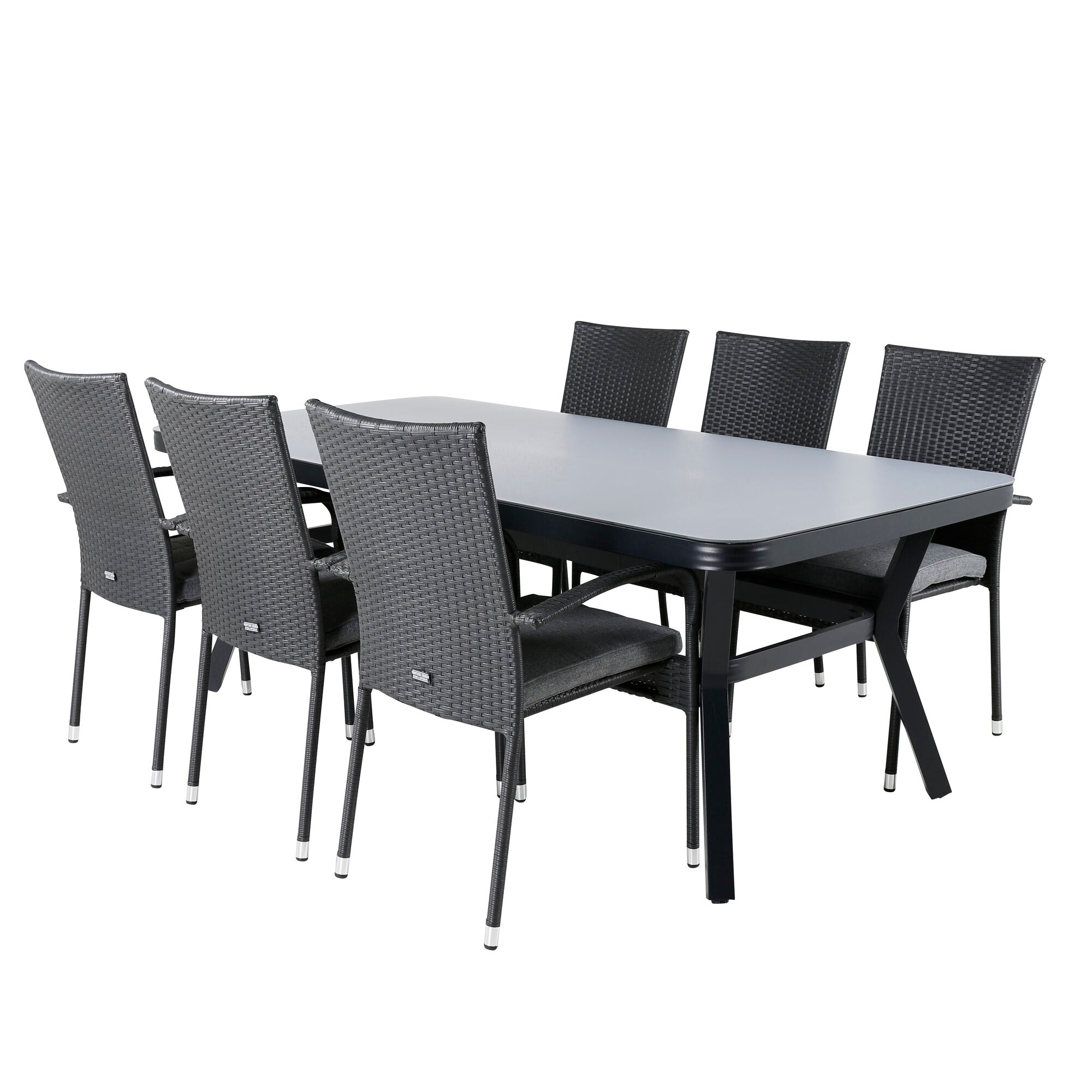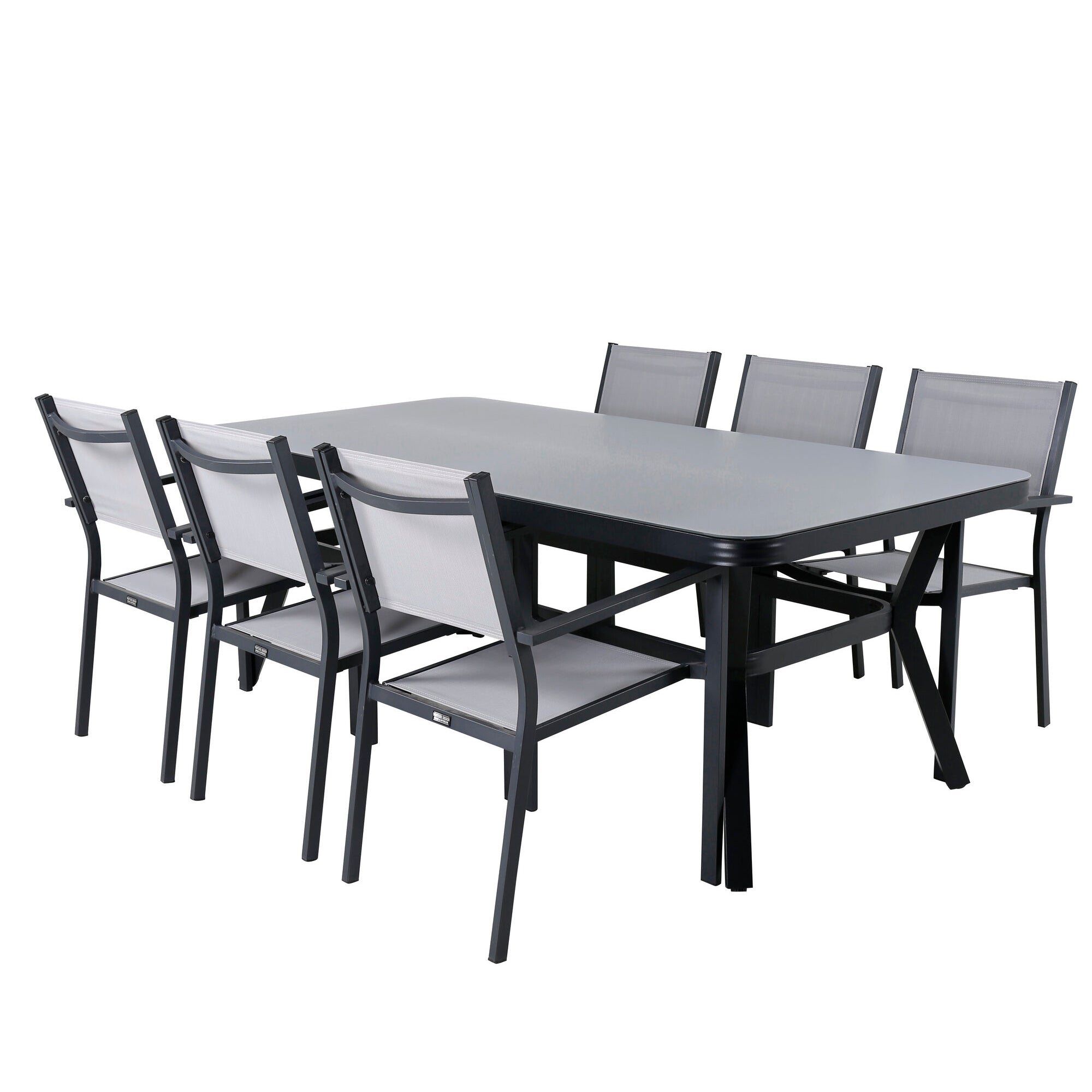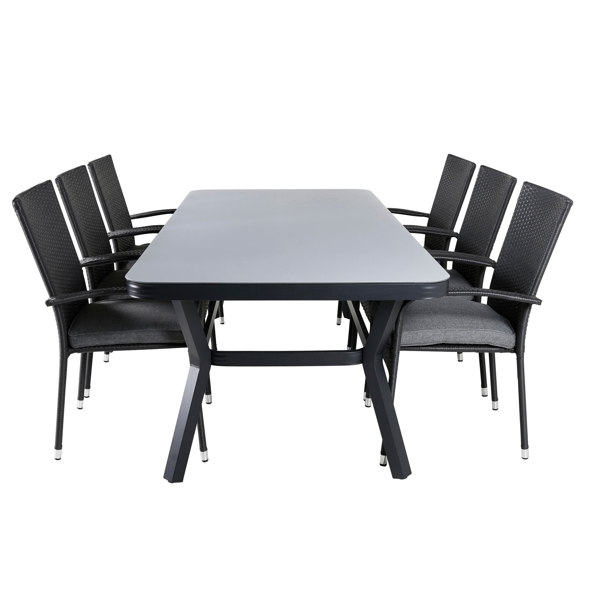Jídelní stůl Virya - černý Alu / šedé sklo - velký stůl + stohovací židle Copacabana - Black/Black_6