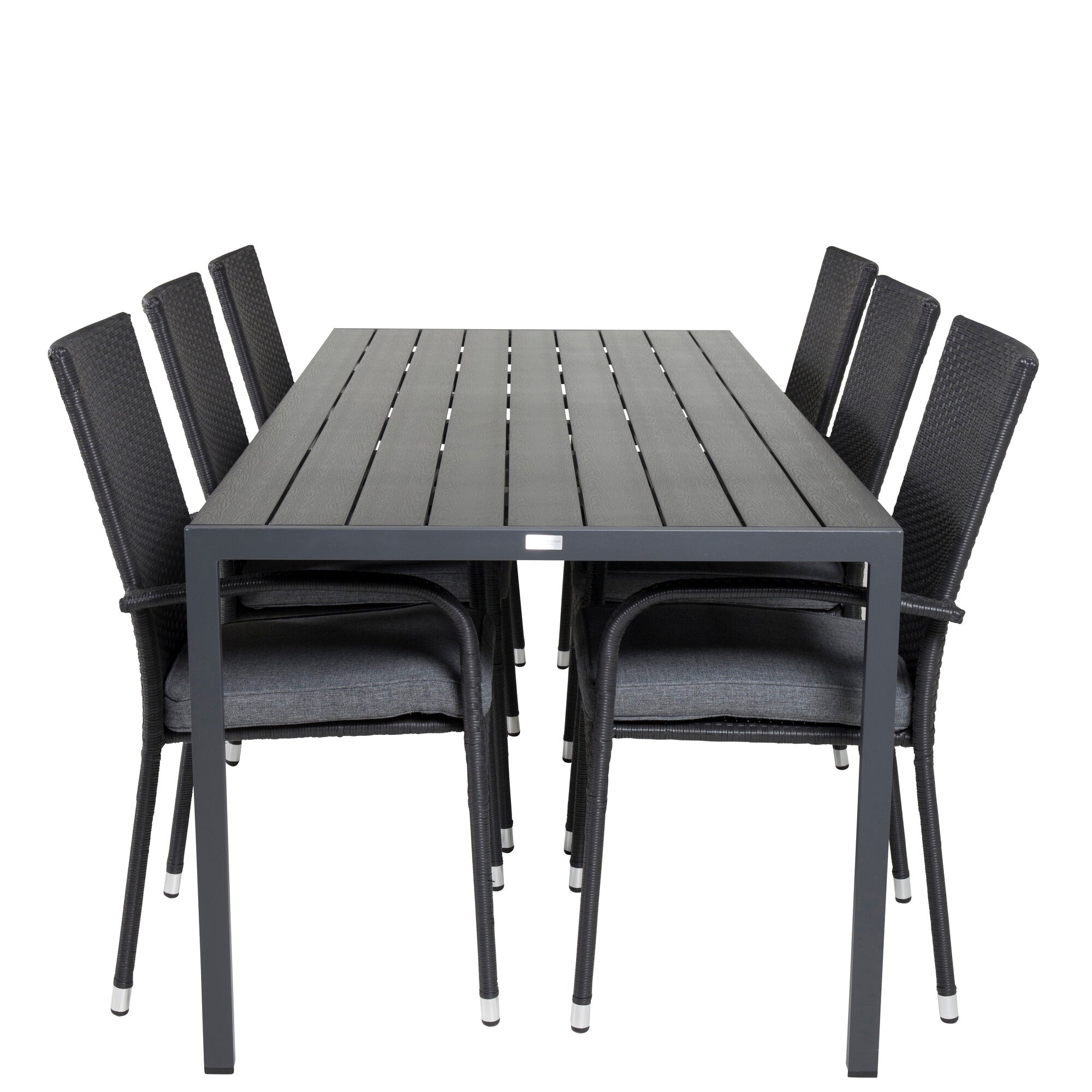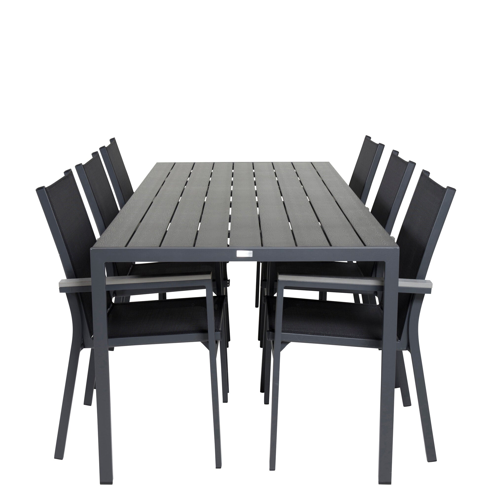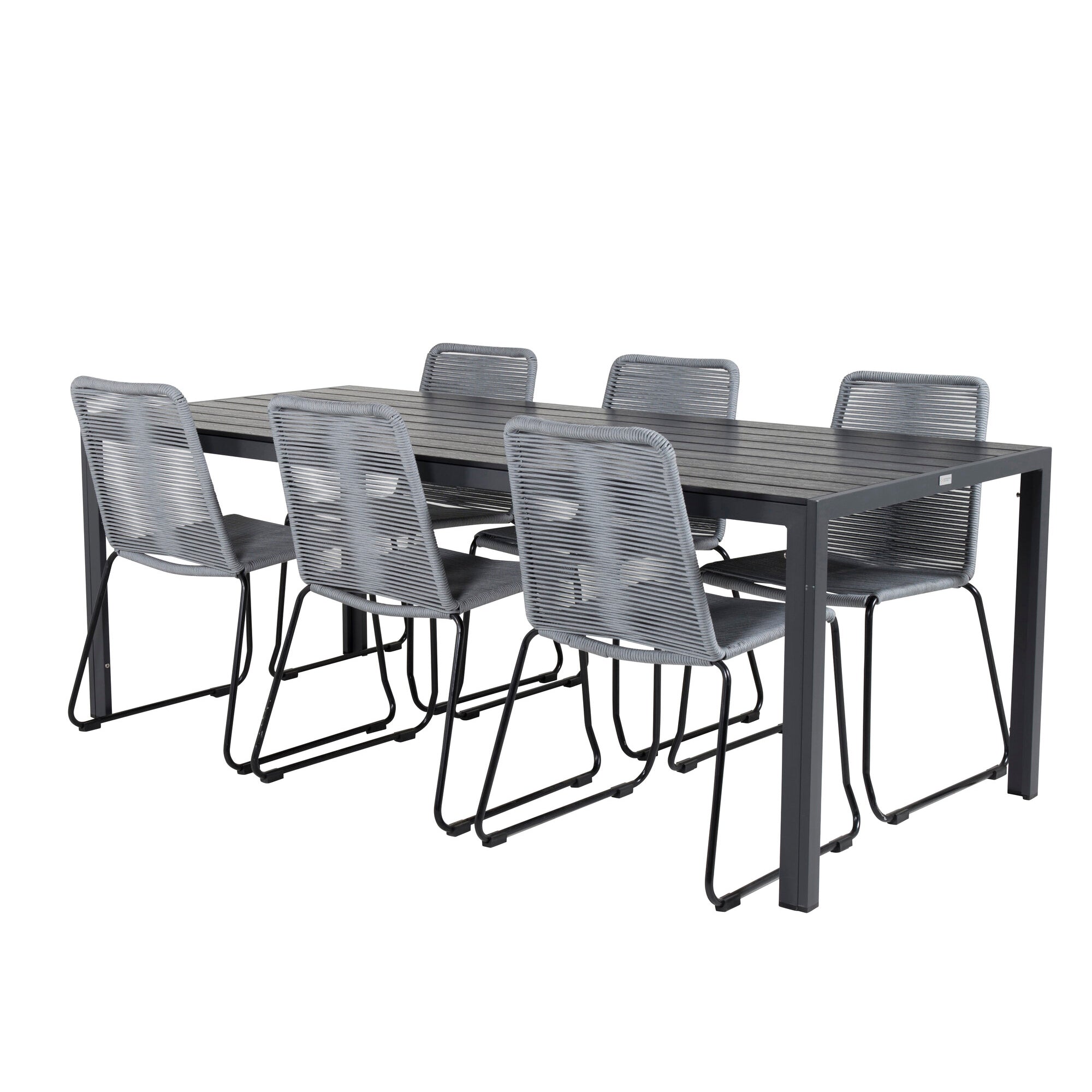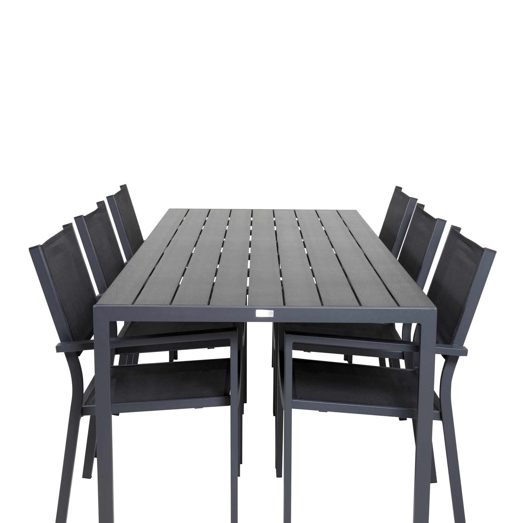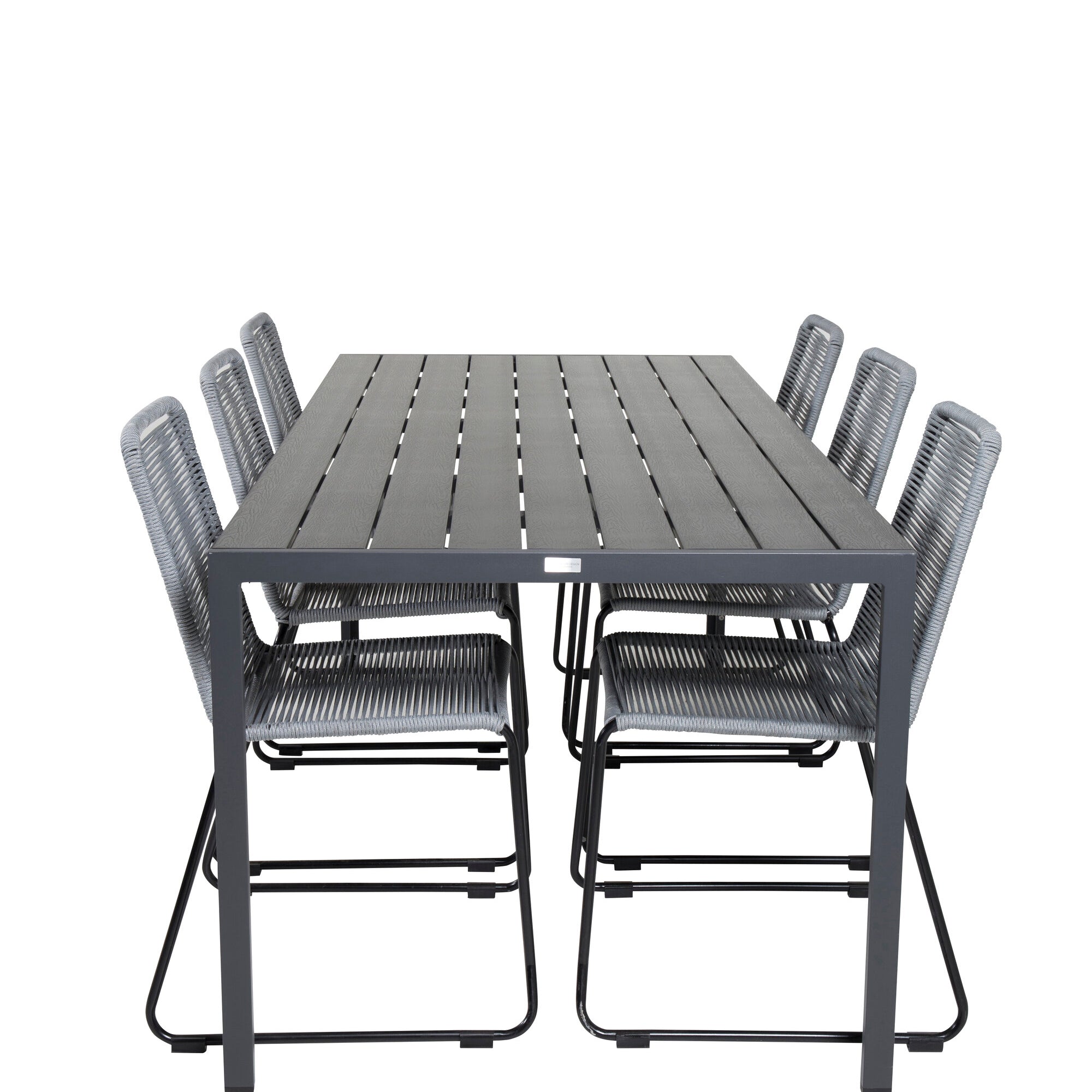 Break matbord - Vit alu / grå aintwood - 205*90+Anna Karmstol (stapelbar) - Grå