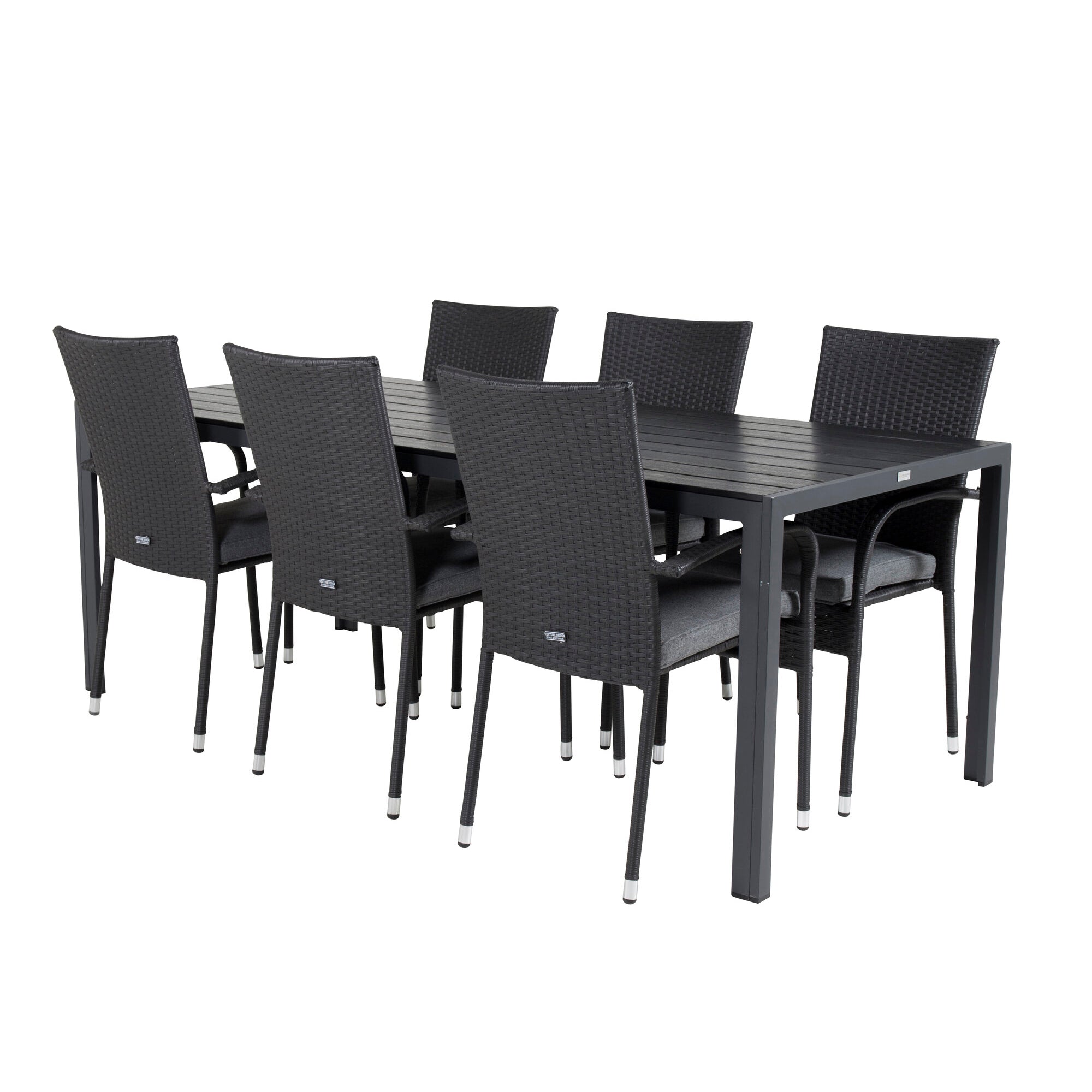 Stůl Mexiko 180/240 – Černá/Teak – Panama 5:pos židle – Černá/Černá 4