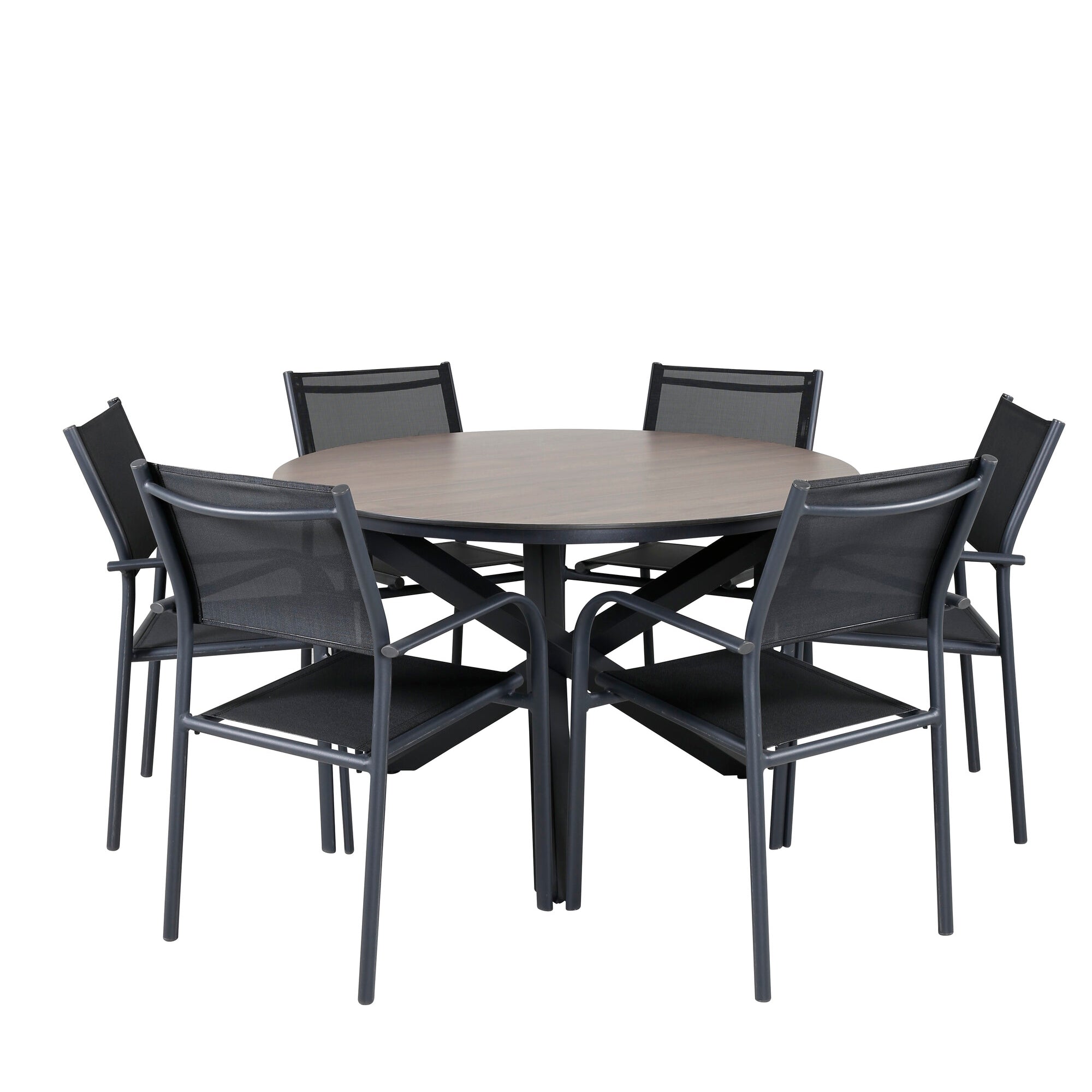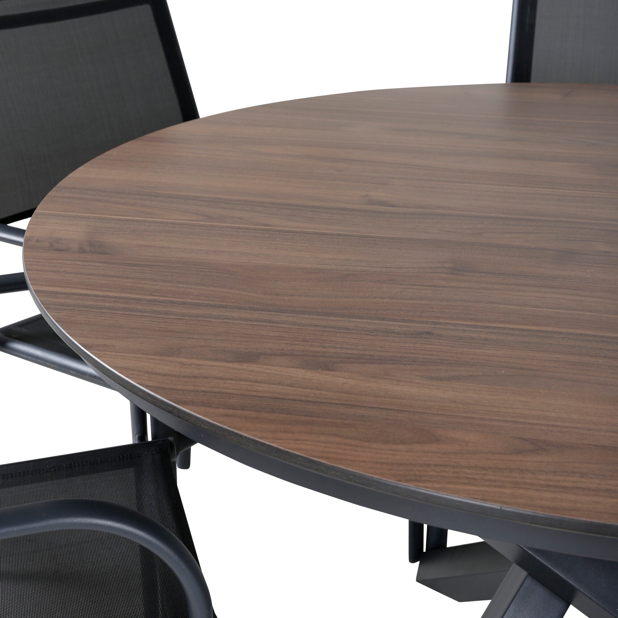 Kulatý jídelní stůl Llama 140 - Černá Alu / Hnědá HPL+Santorini područková židle (stohovatelné) - Černá Alu / Černá Textilene_6