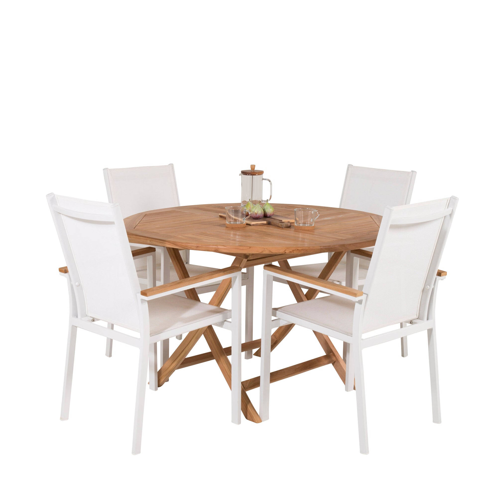 Kulatý jídelní stůl Kenya ø120 cm – Teak+Texas křeslo (stohovatelné) – Bílá / Čaj