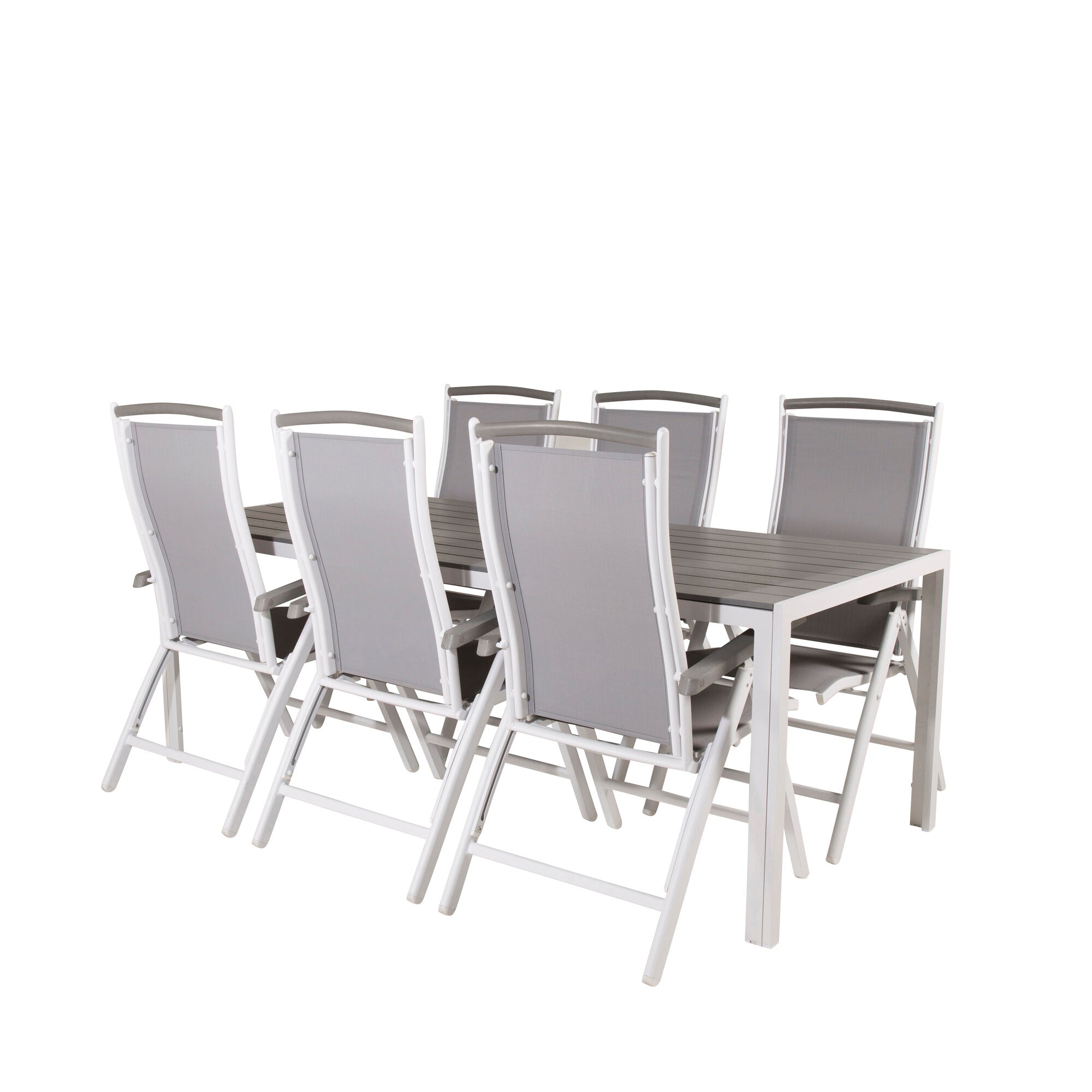 Jídelní stůl Break - 205*90 - Bílá Alu / Šedá Aintwood+Copacabana polohovací křeslo (stohovatelné) - Bílá Alu / Šedá Textilene_6