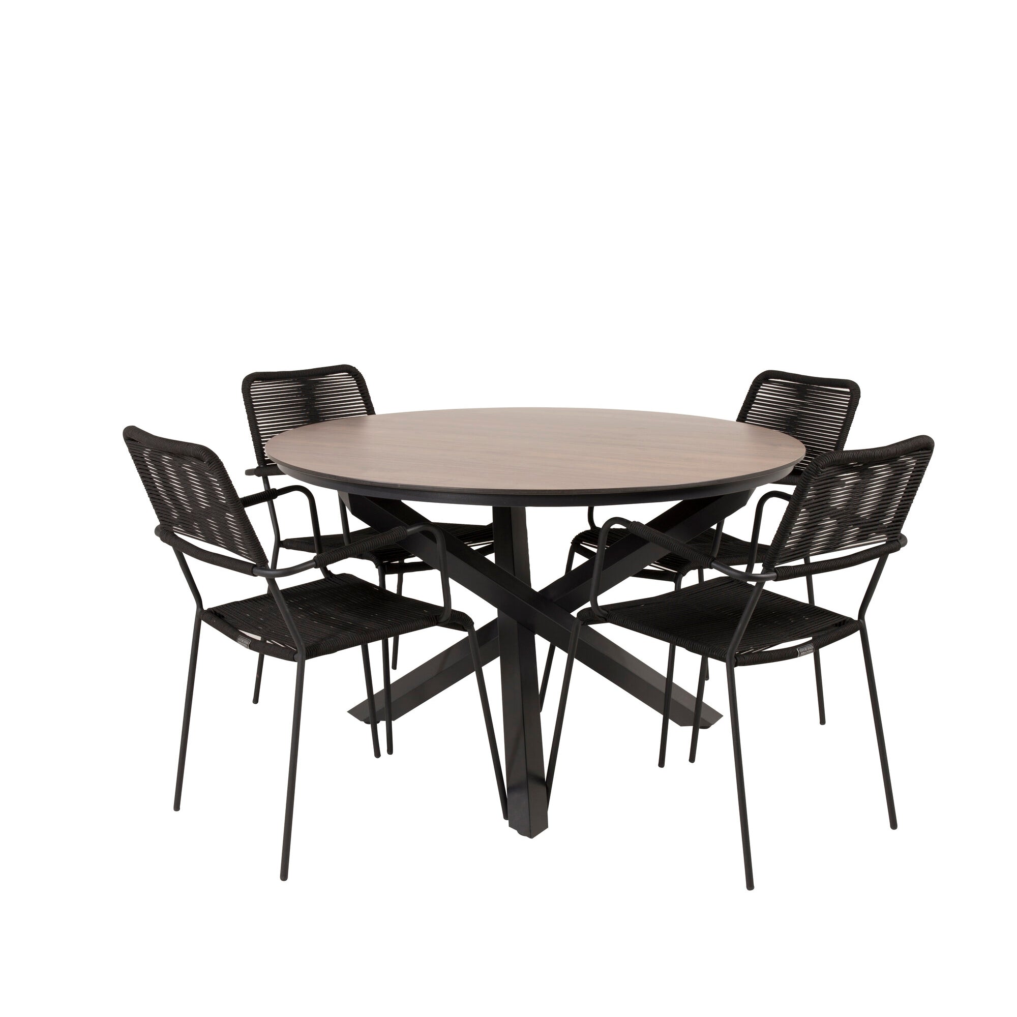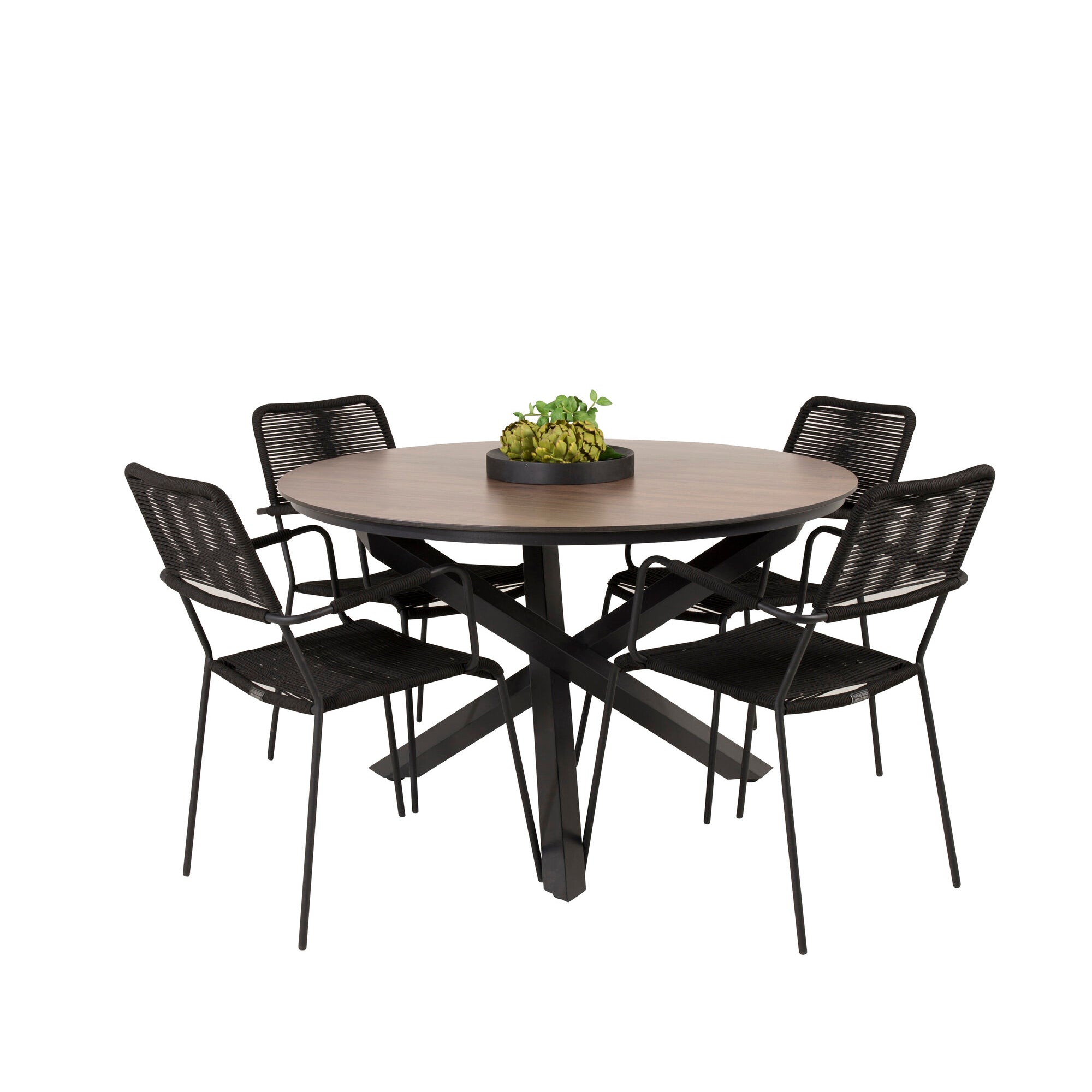 Kulatý jídelní stůl Llama 140 - Černá Alu / Hnědá HPL+Lindos Křeslo - Černá Alu / Black Rope_4