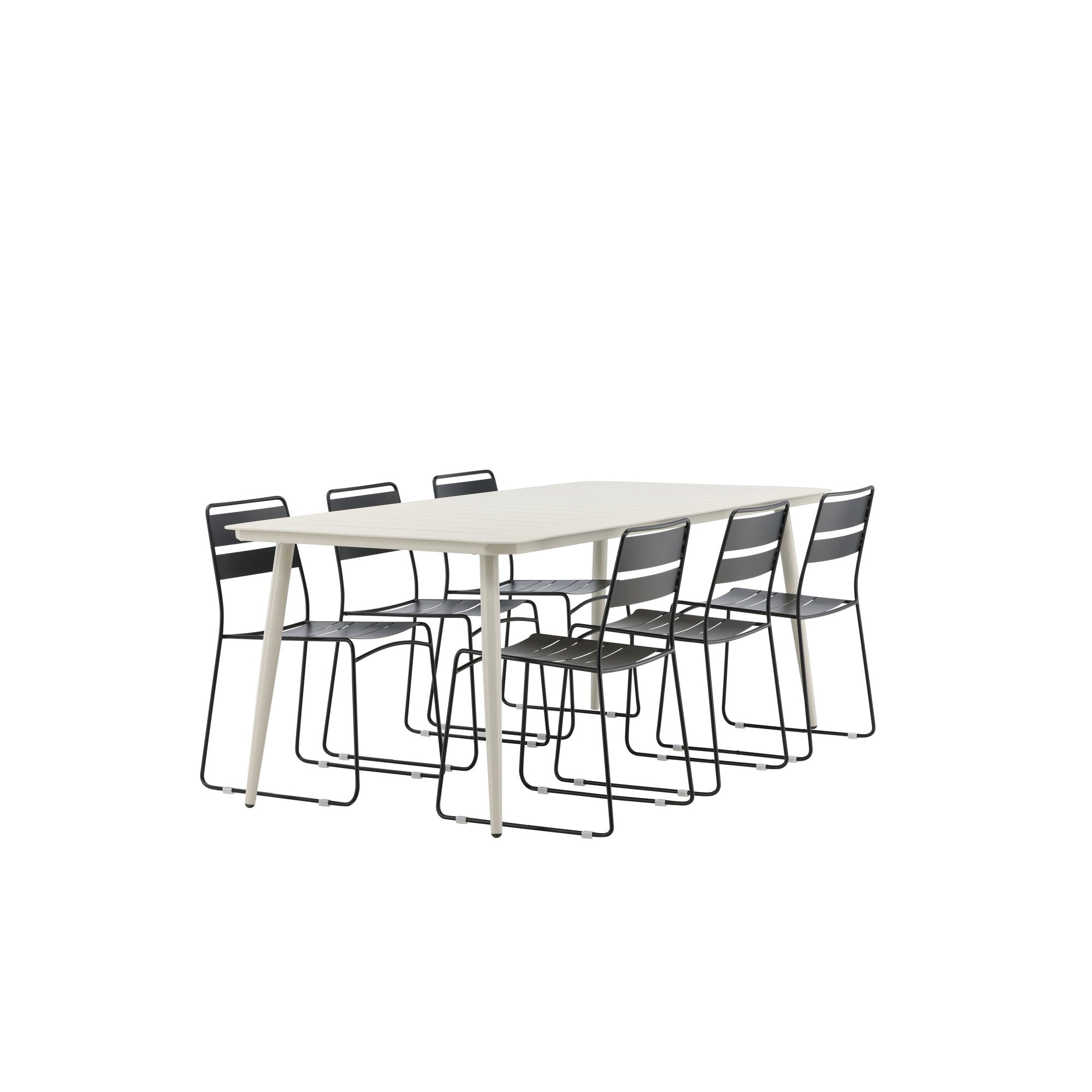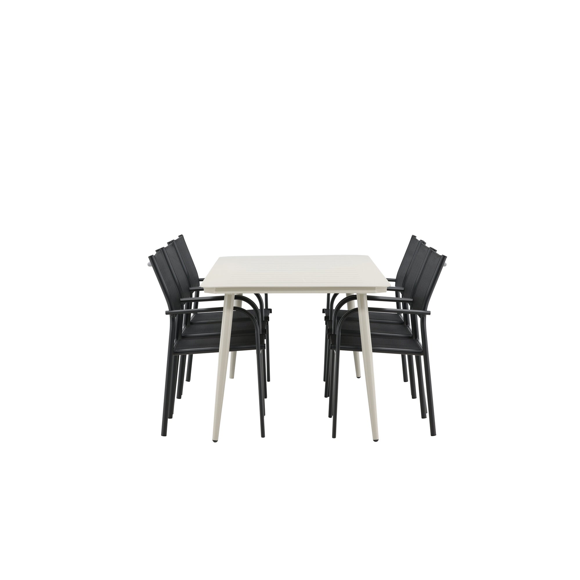Lina Jídelní stůl – Béžová – 200*90 _1+ křeslo Santorini (stohovatelné) – Černá alu / Černá textilie _6
