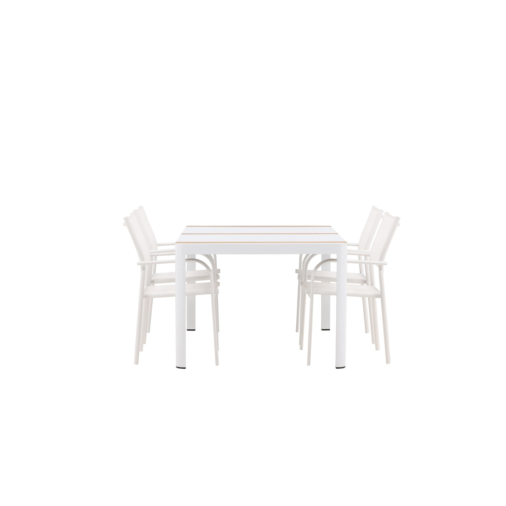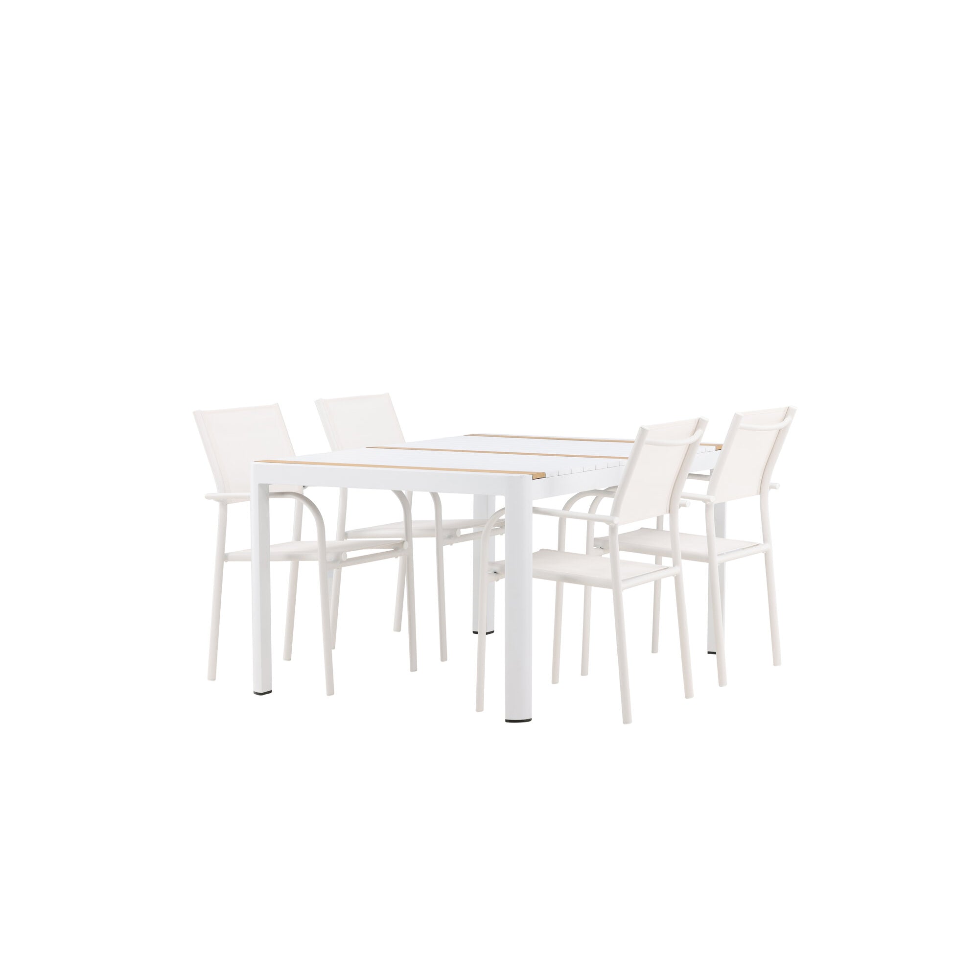 Togo - Jídelní stůl - Bílá / Teak - Allu / Teak - 150*100 + křeslo Santorini (stohovatelné) - Bílá Alu / Bílá textilie _4