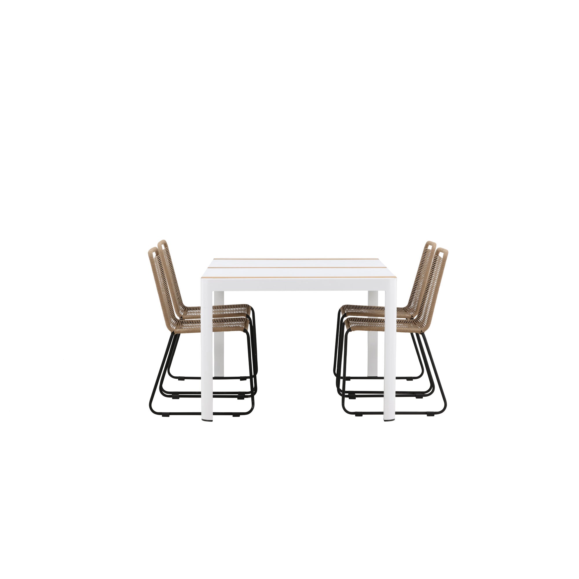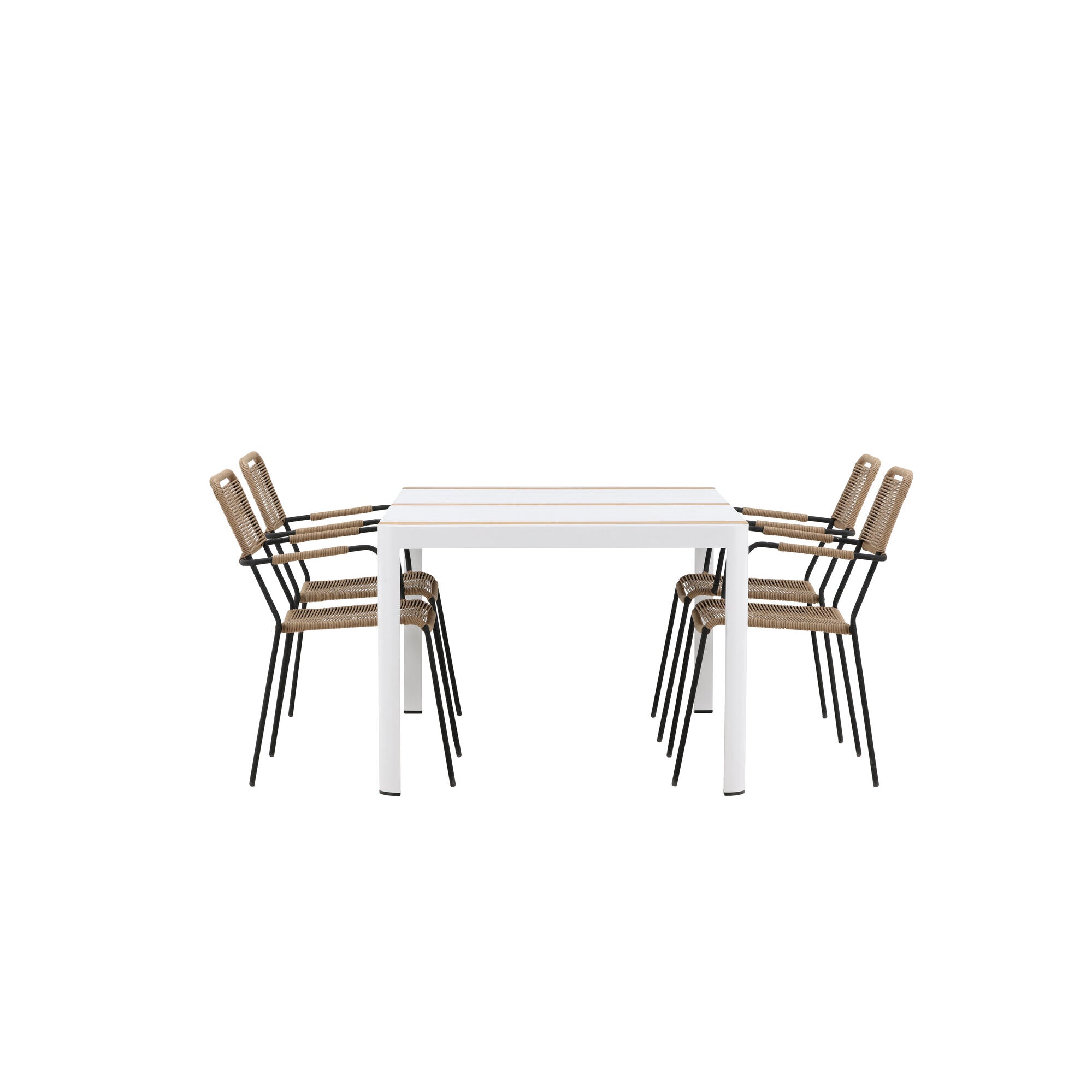 Togo - Jídelní stůl - Bílá / Teak - Allu / Teak - 150*100 _1+ Lindos Stohovací židle - Černá Alu / Latte Latte _4
