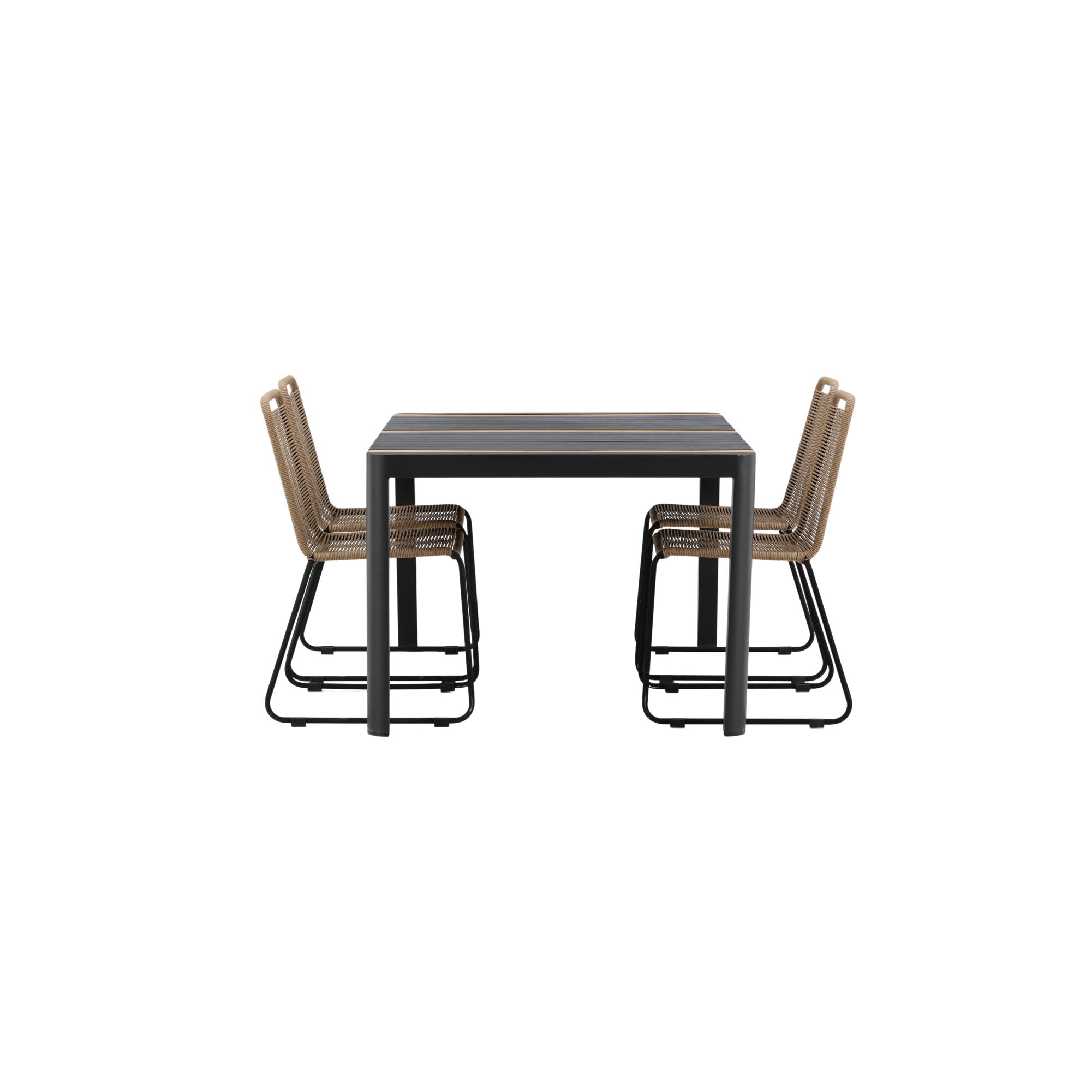 Togo - Jídelní stůl - Černá / Teak - Allu / Teak - 150*100 _1+ Lindos Stohovací židle - Black Alu / Latte Latte _4