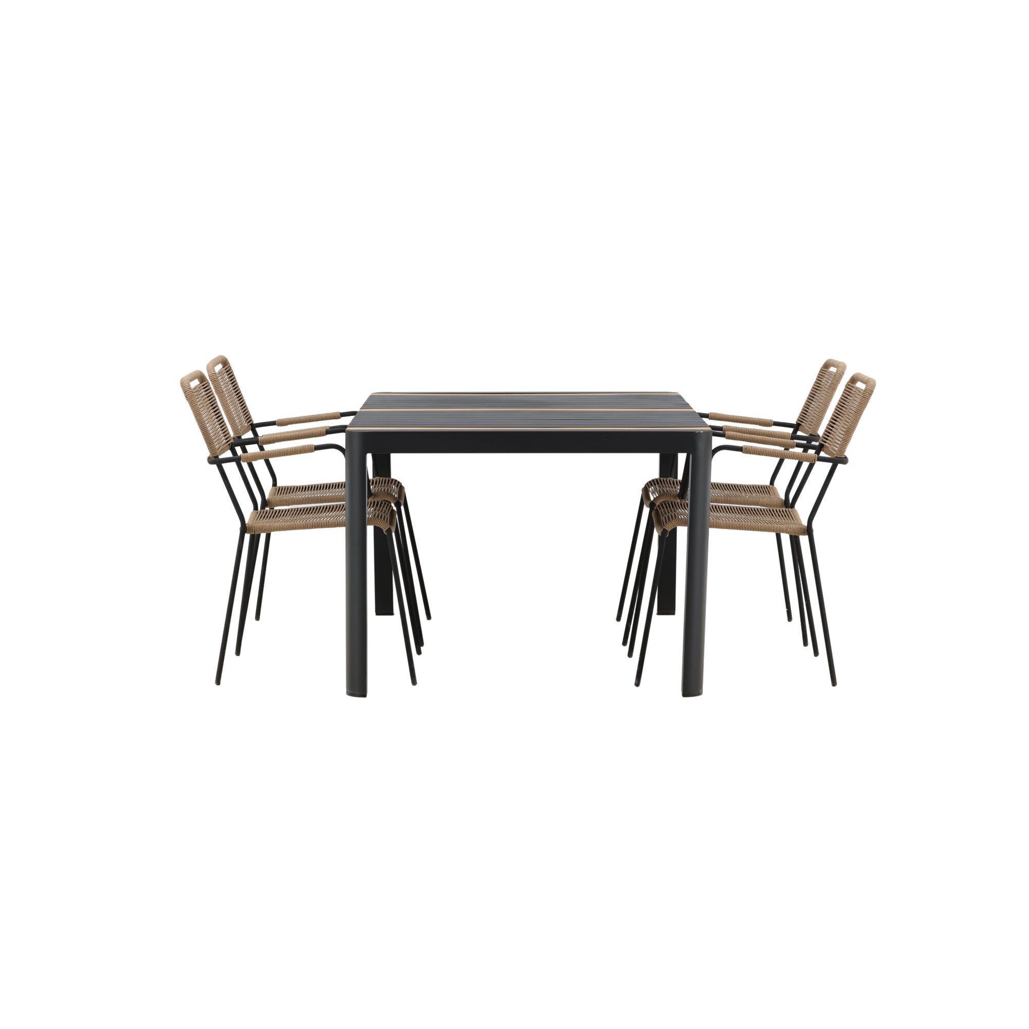 Lina Jídelní stůl – Béžová – 200*90 _1+ Stohovací židle Lindos – Černá Alu / Černé lano _6