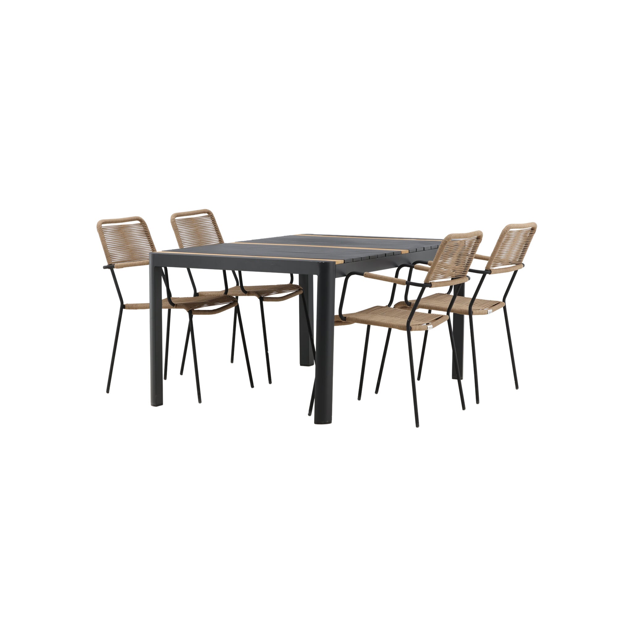 Togo - Jídelní stůl - Černá / Teak - Allu / Teak - 150*100 _1+ Lindos - Křeslo - Black Alu / Latte Latte _4