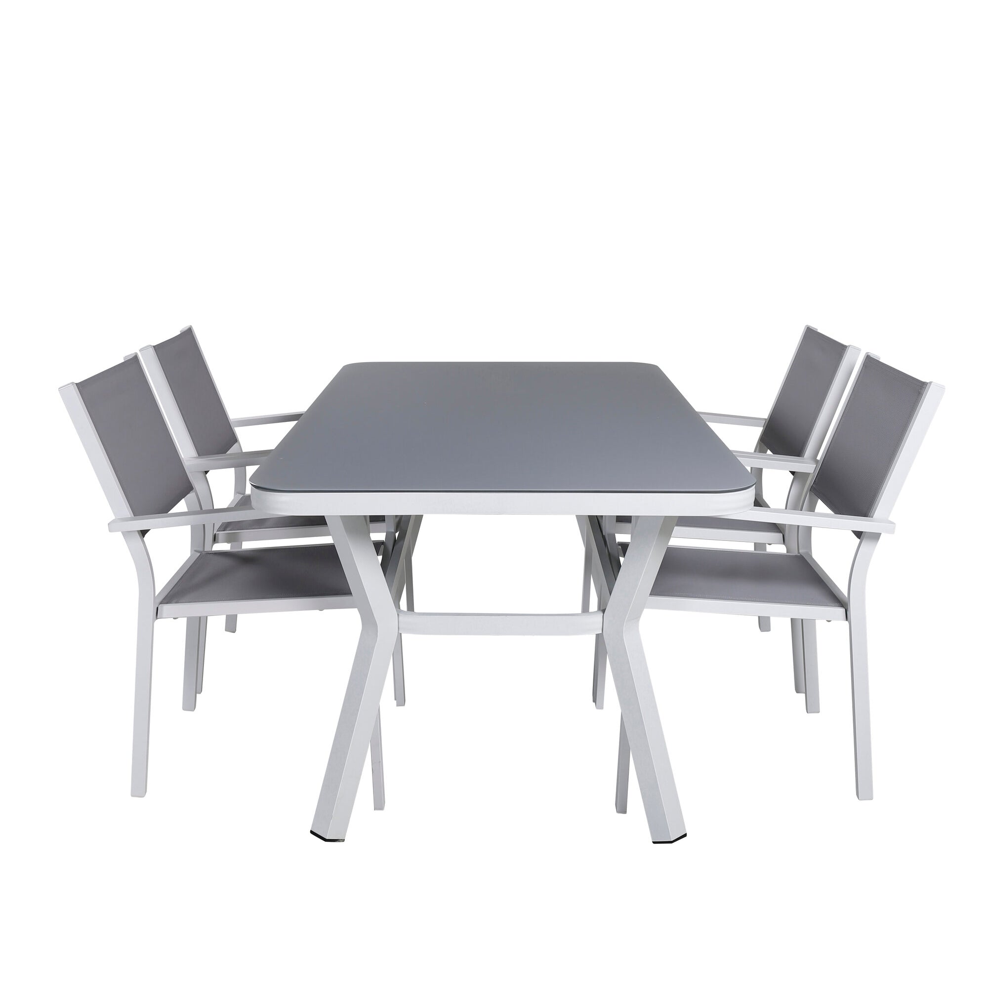 Jídelní stůl Virya - Bílá Alu / Šedé sklo - malý stolek+Albany Light 5-postel bílý alu / Šedá Textilene_4