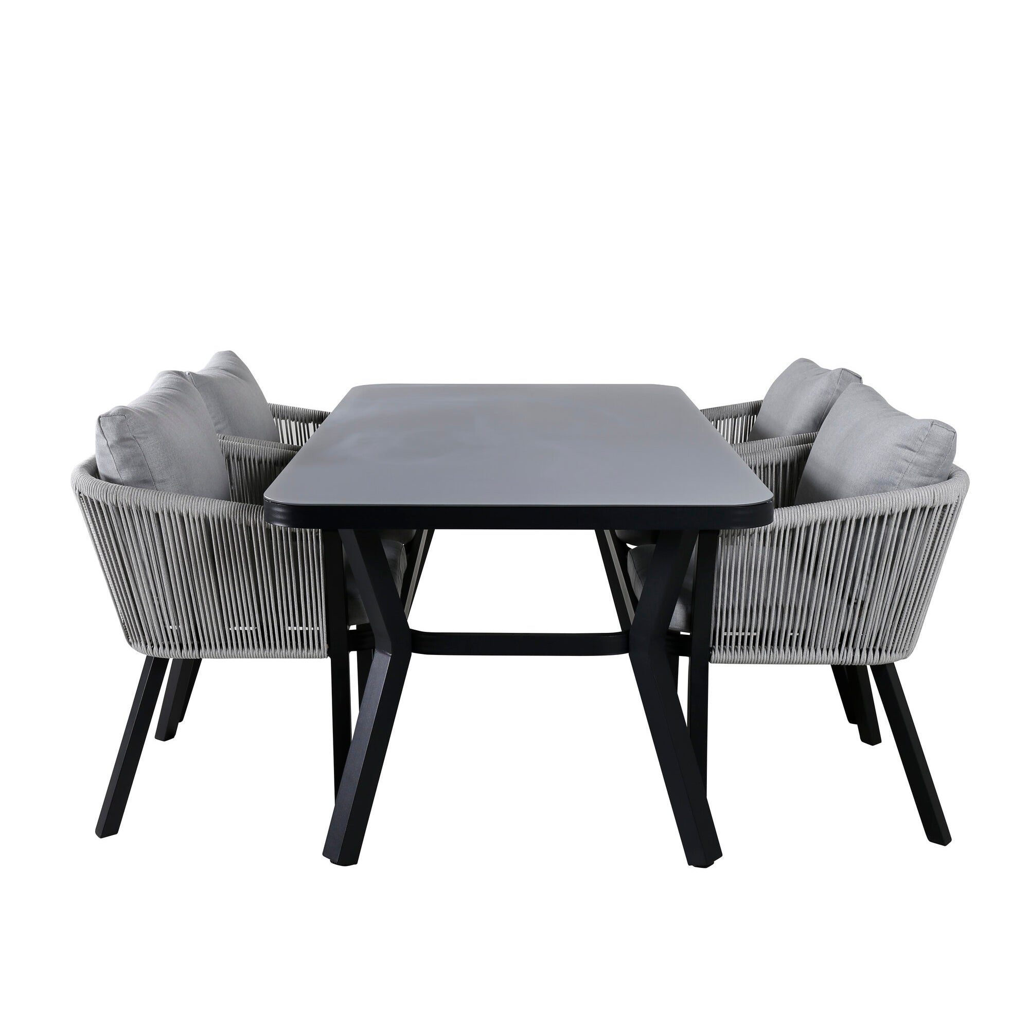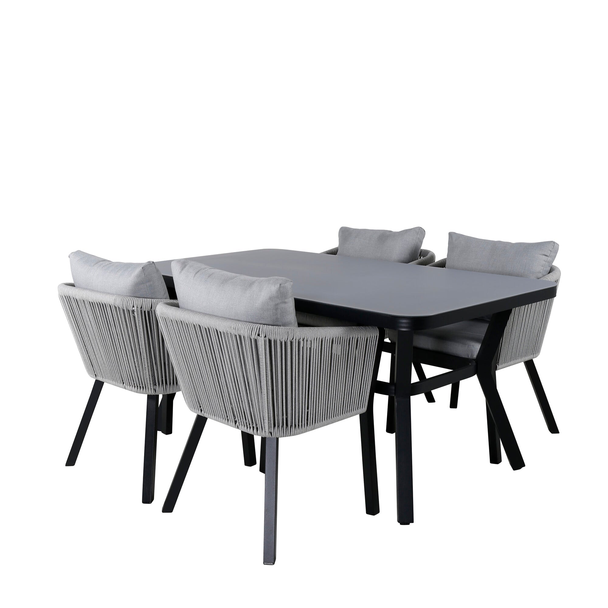 Jídelní stůl Virya - ČERNÁ Alu / Šedé sklo - malý stůl + Jídelní židle Virya - ČERNÁ Alu / Šedý polštář _4