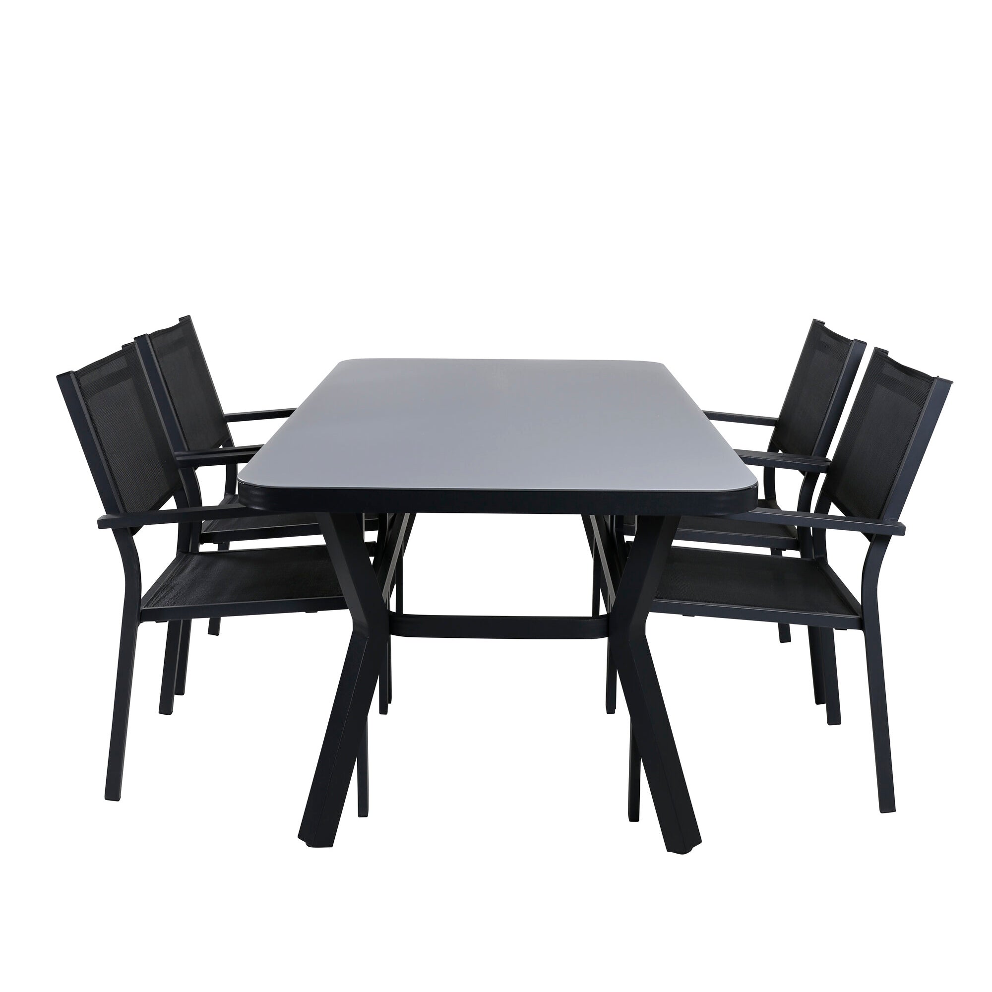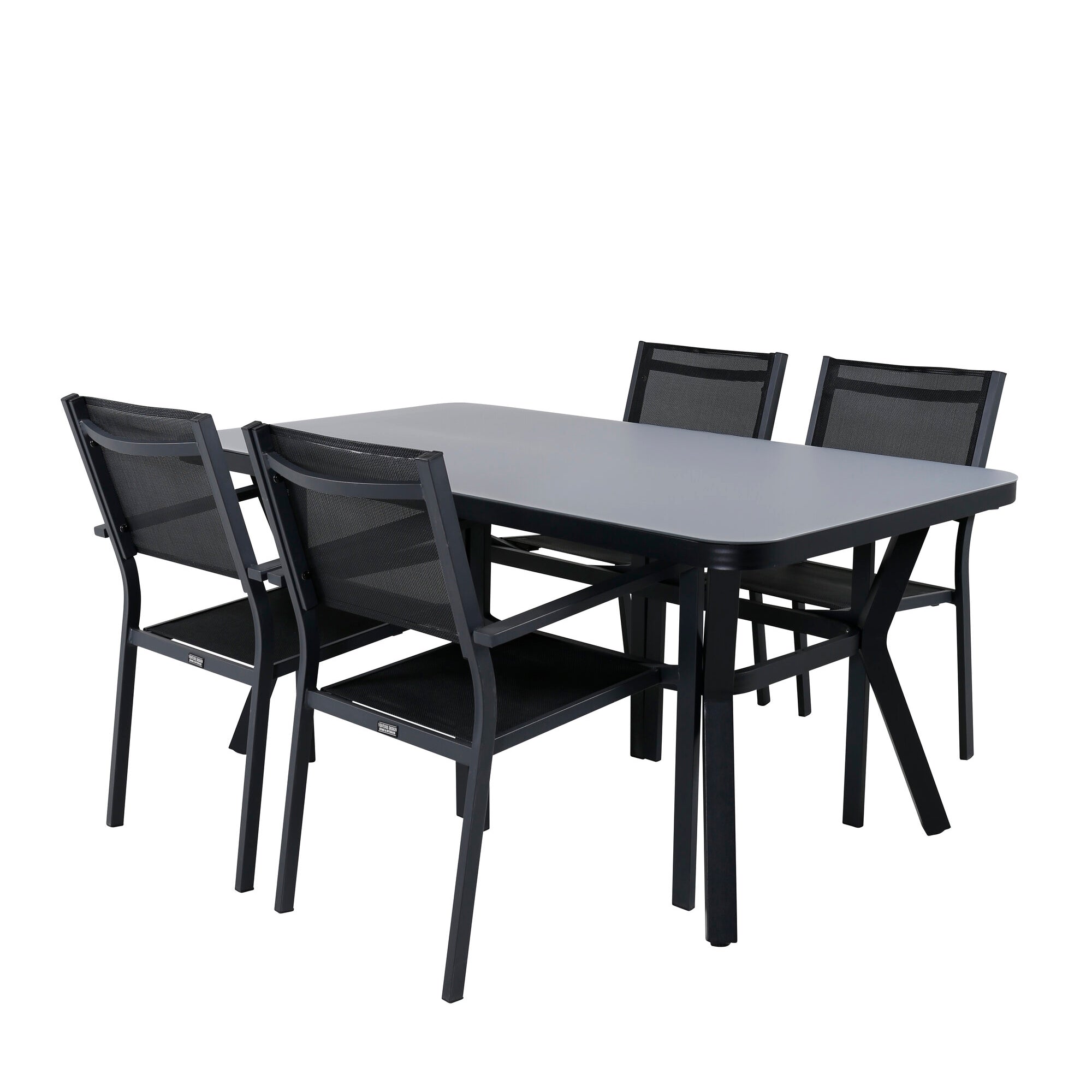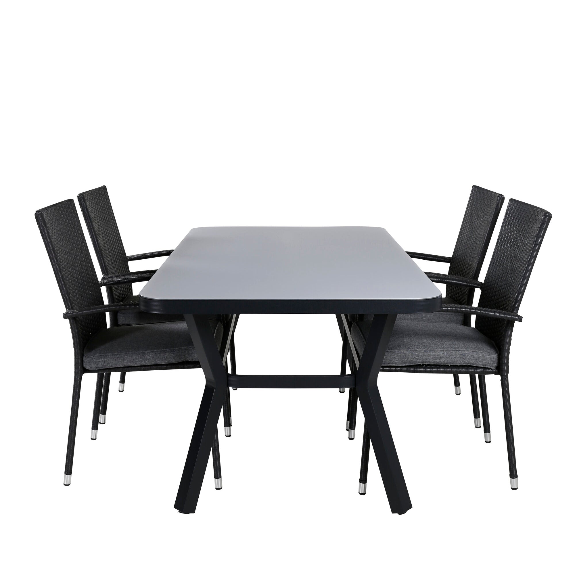 Jídelní stůl Virya - BLACK Alu / šedé sklo - malý stůl + stohovací židle Copacabana - Black/Black_4