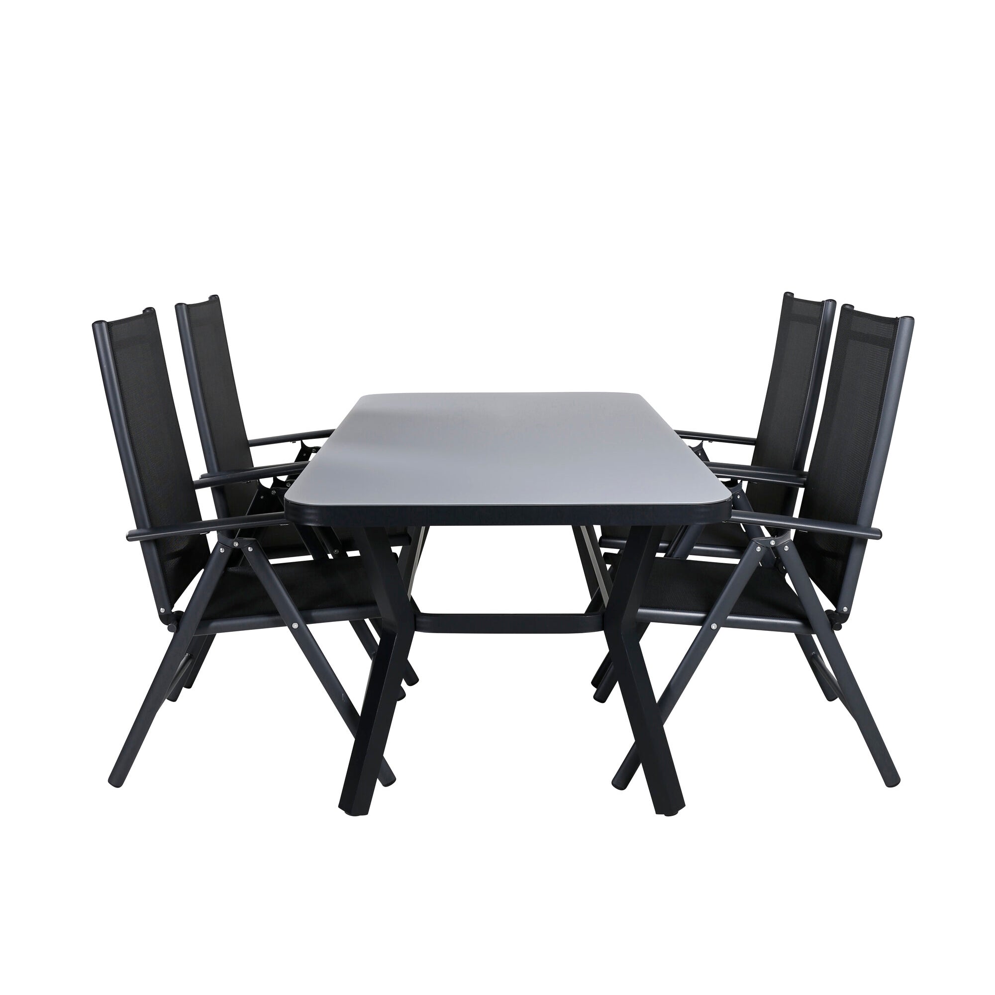 Togo - Jídelní stůl - Černá / Teak - Allu / Teak - 150*100 _1+ Keňa 5poziční skládací židle - Teak _4