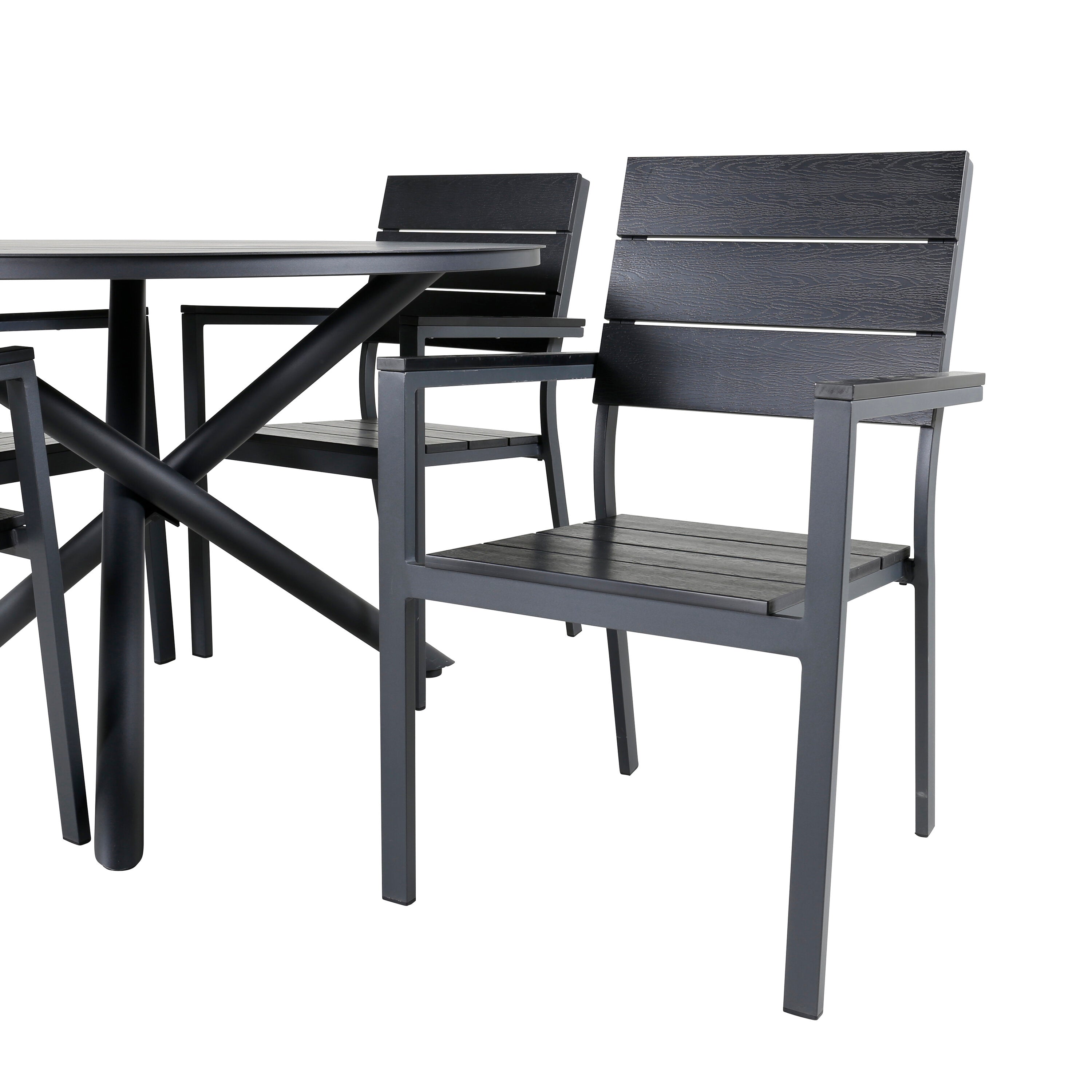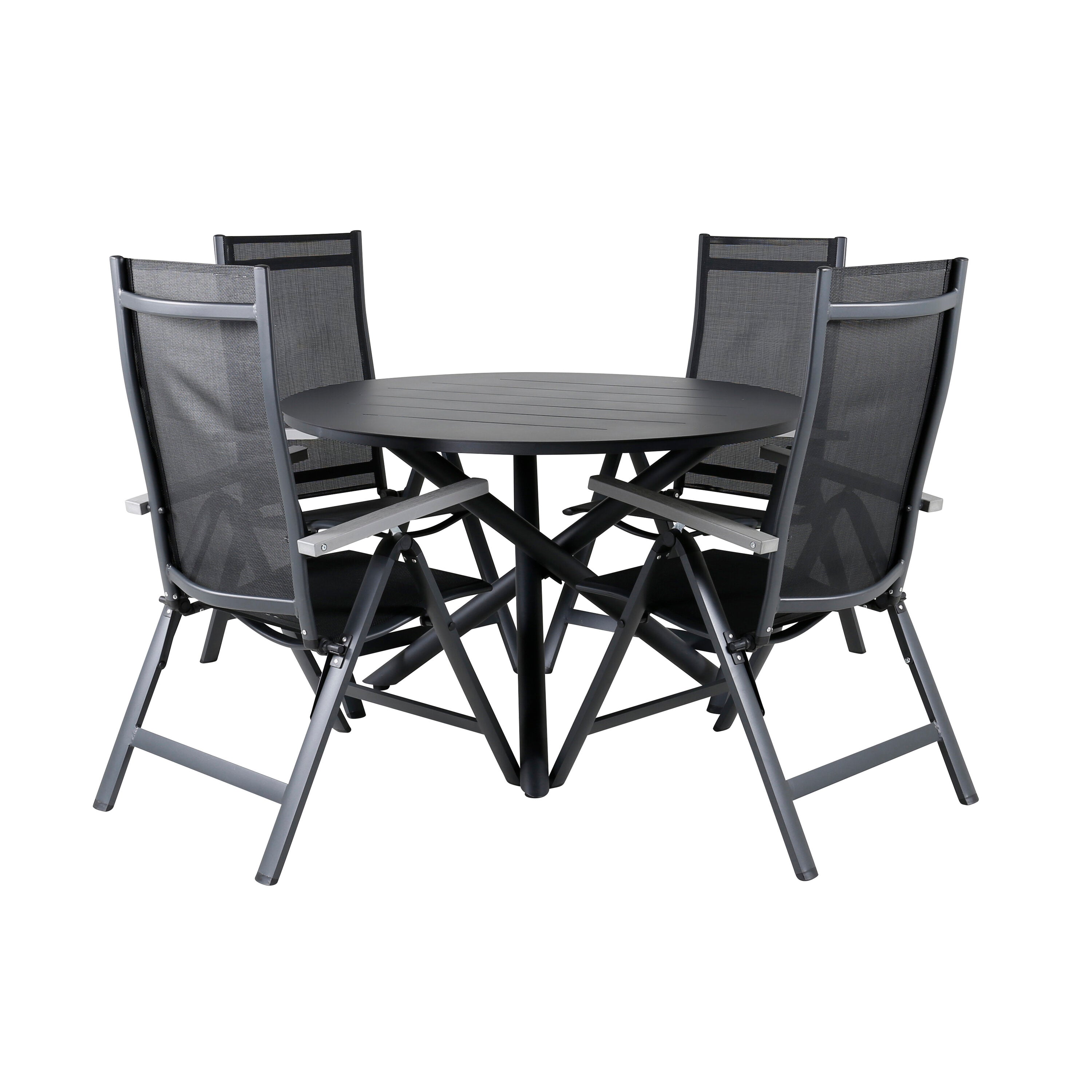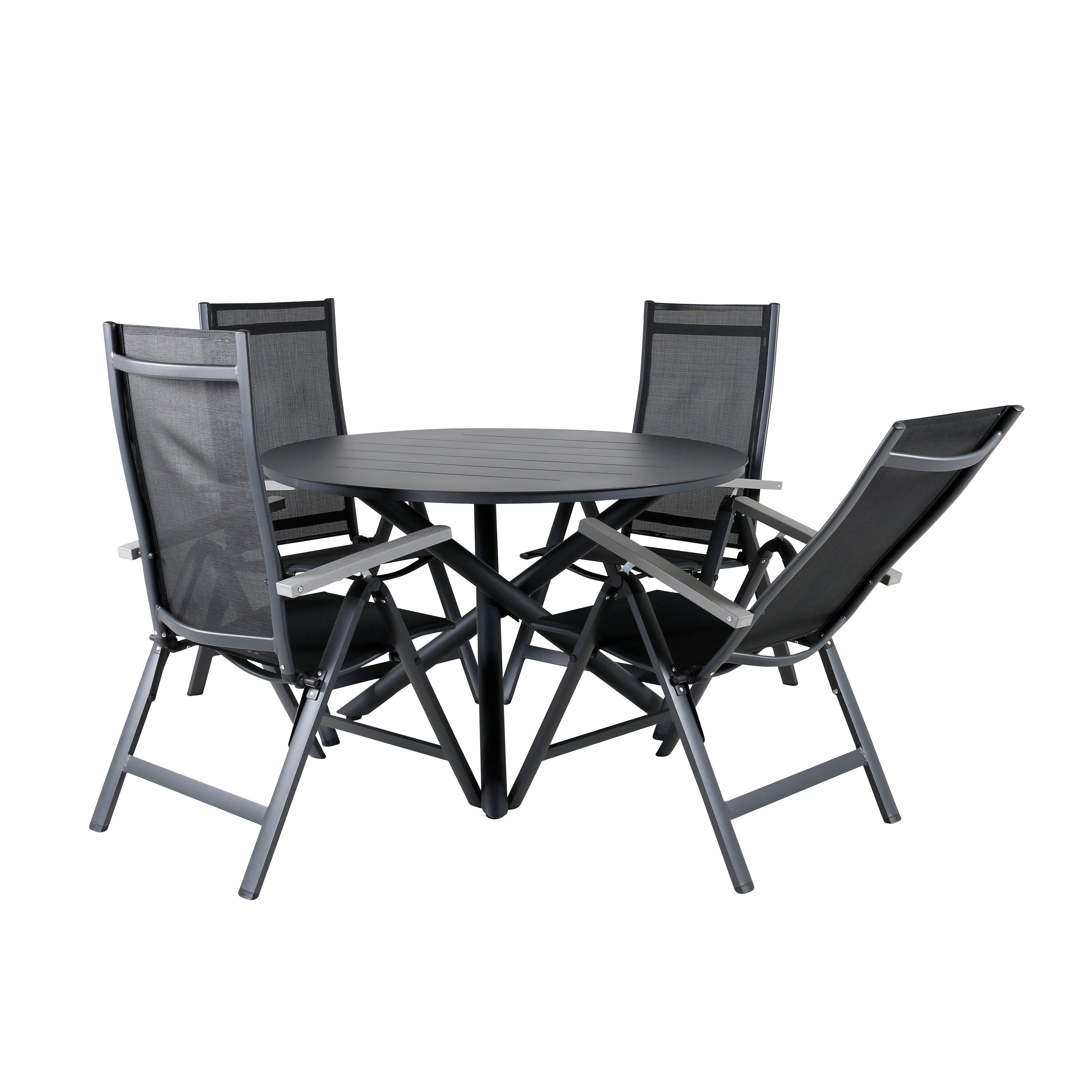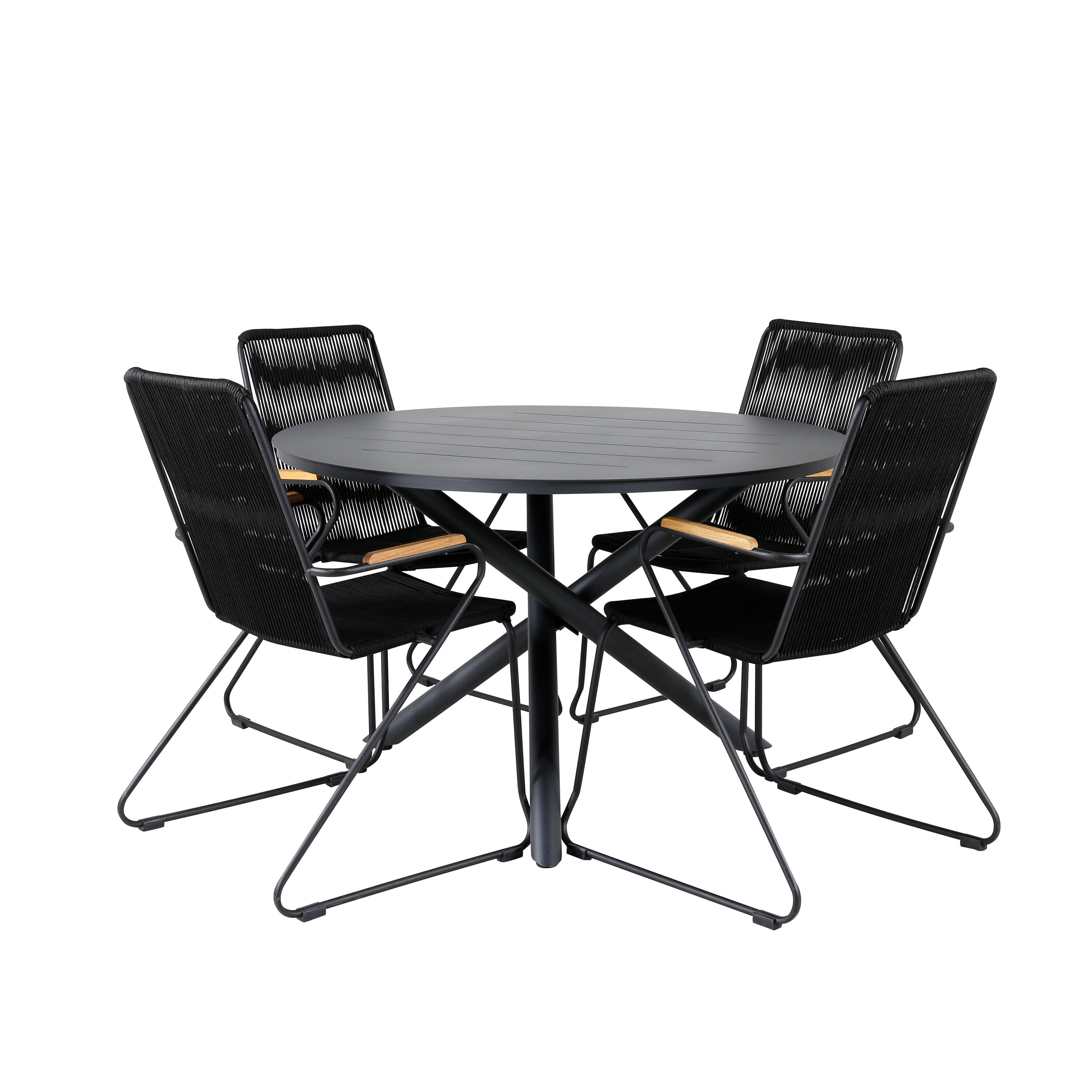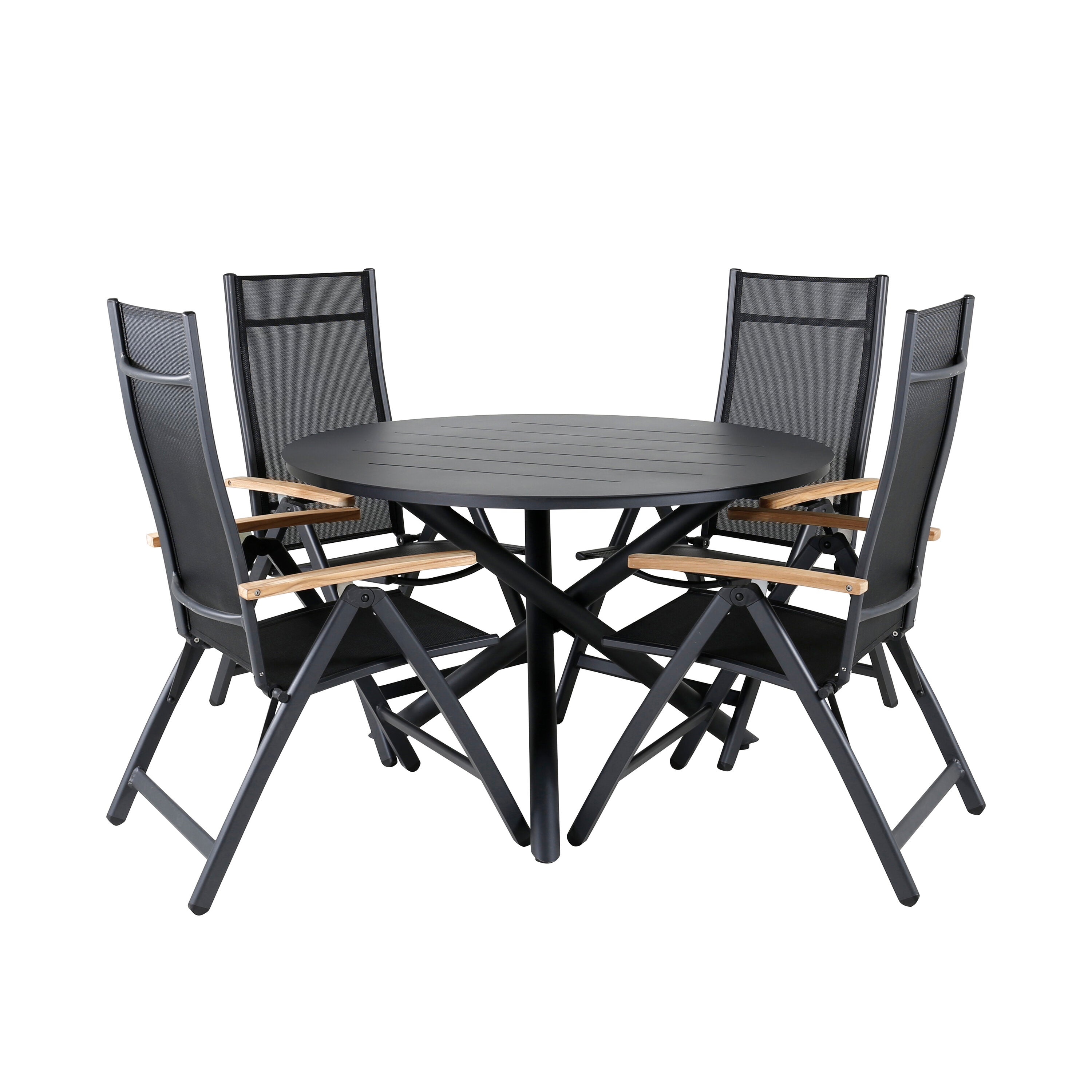 Jídelní stůl Tucumán - Akácie ø120 +Lindos Jídelní židle Aluminium - Černá / _6