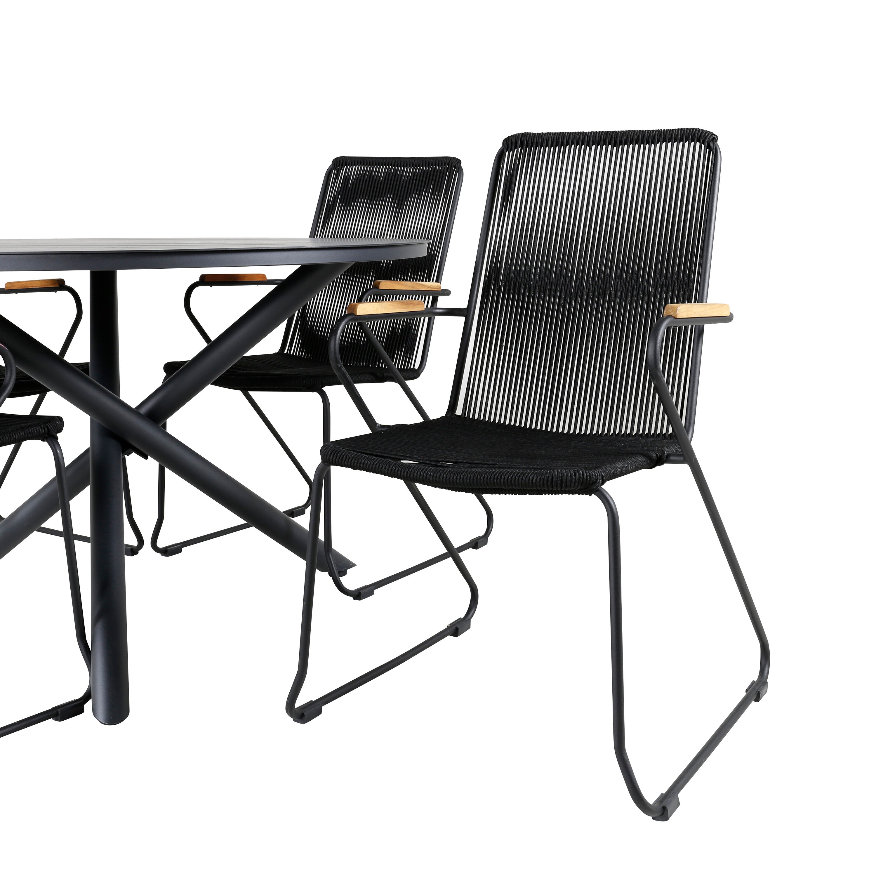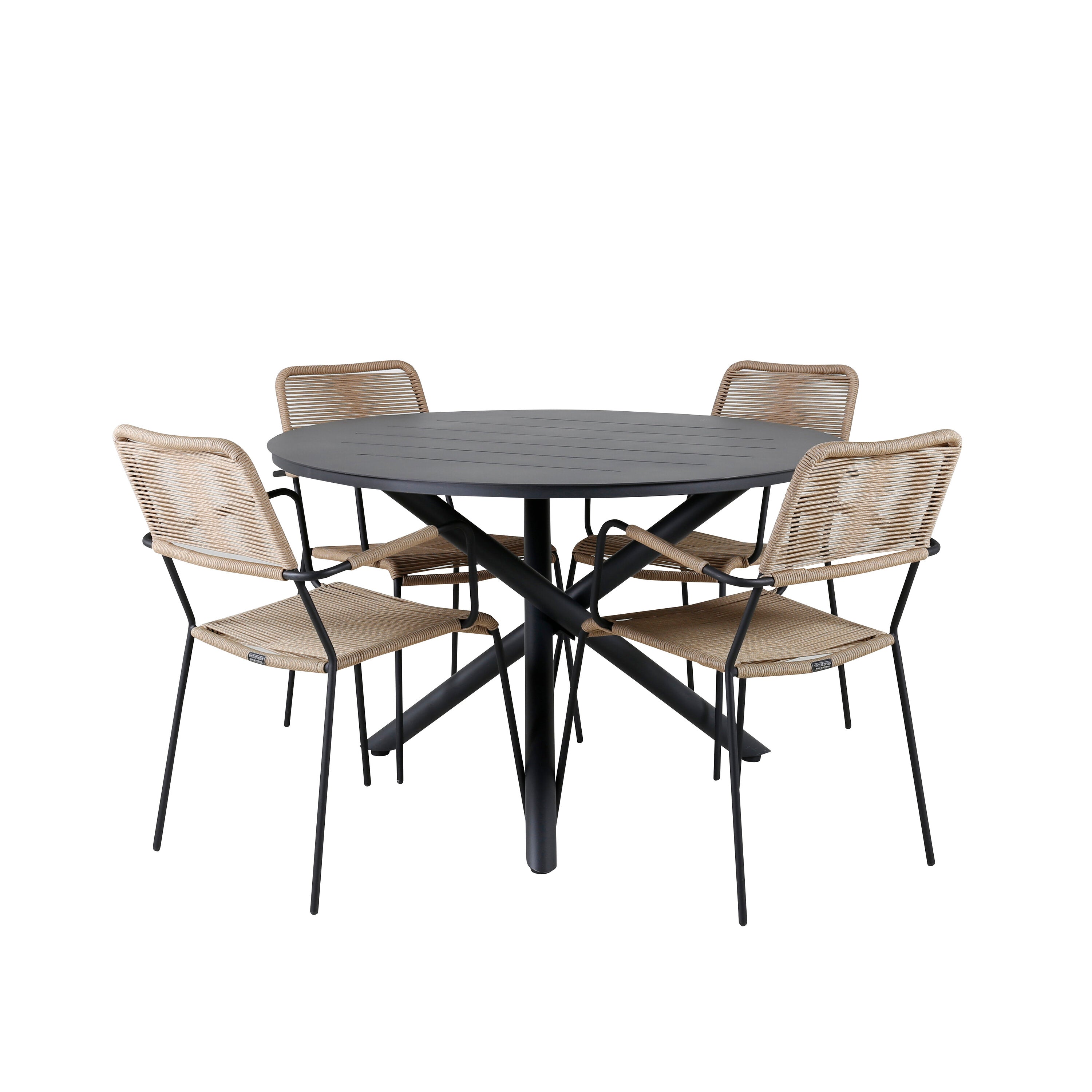 Jídelní stůl Alma - Black Alu - ø120cm+Lindos - Křeslo - Black Alu / Latte Rope_4