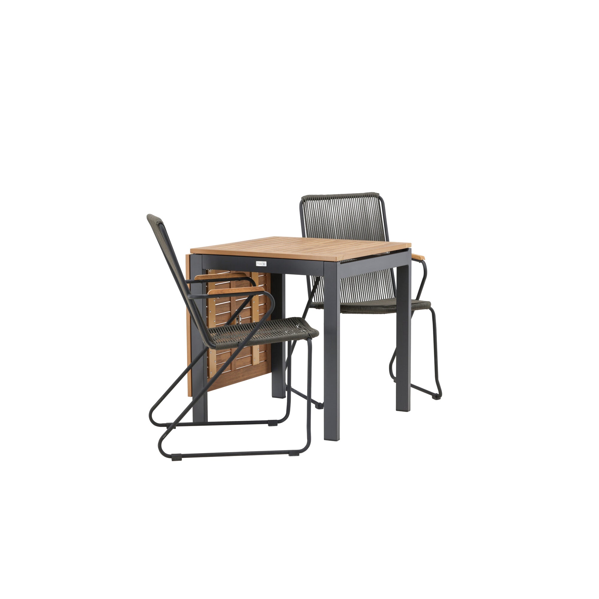 Diego Cafetable Hliník – Černá / Hnědá Aintwood – Obdélníkový 70*70/130* + Bois Jídelní židle Ocel – Černá / Tmavě šedá Lano _2