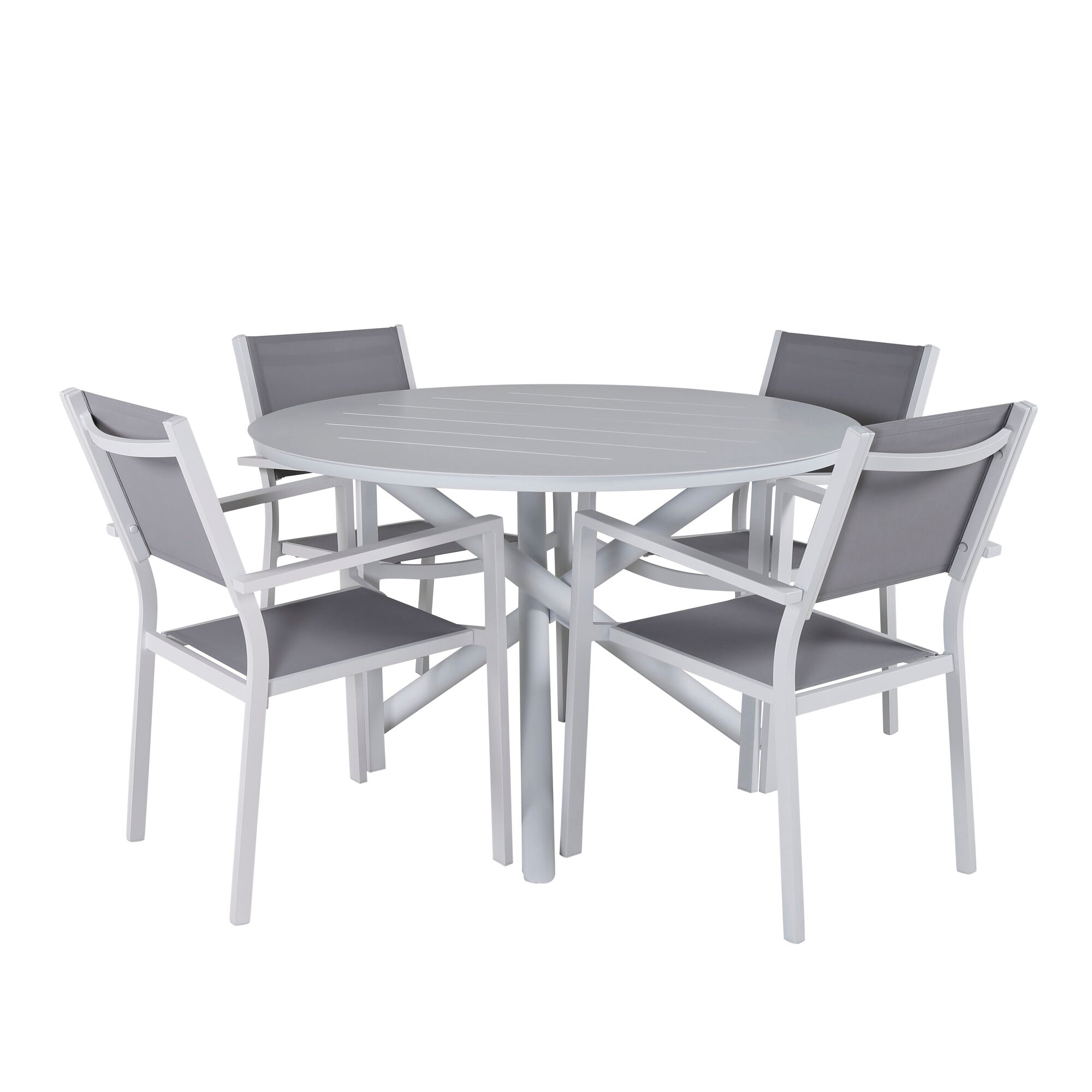 Jídelní stůl Alma - Bílá Alu - ø120cm + stohovací židle Copacabana - Bílá/Šedá_4