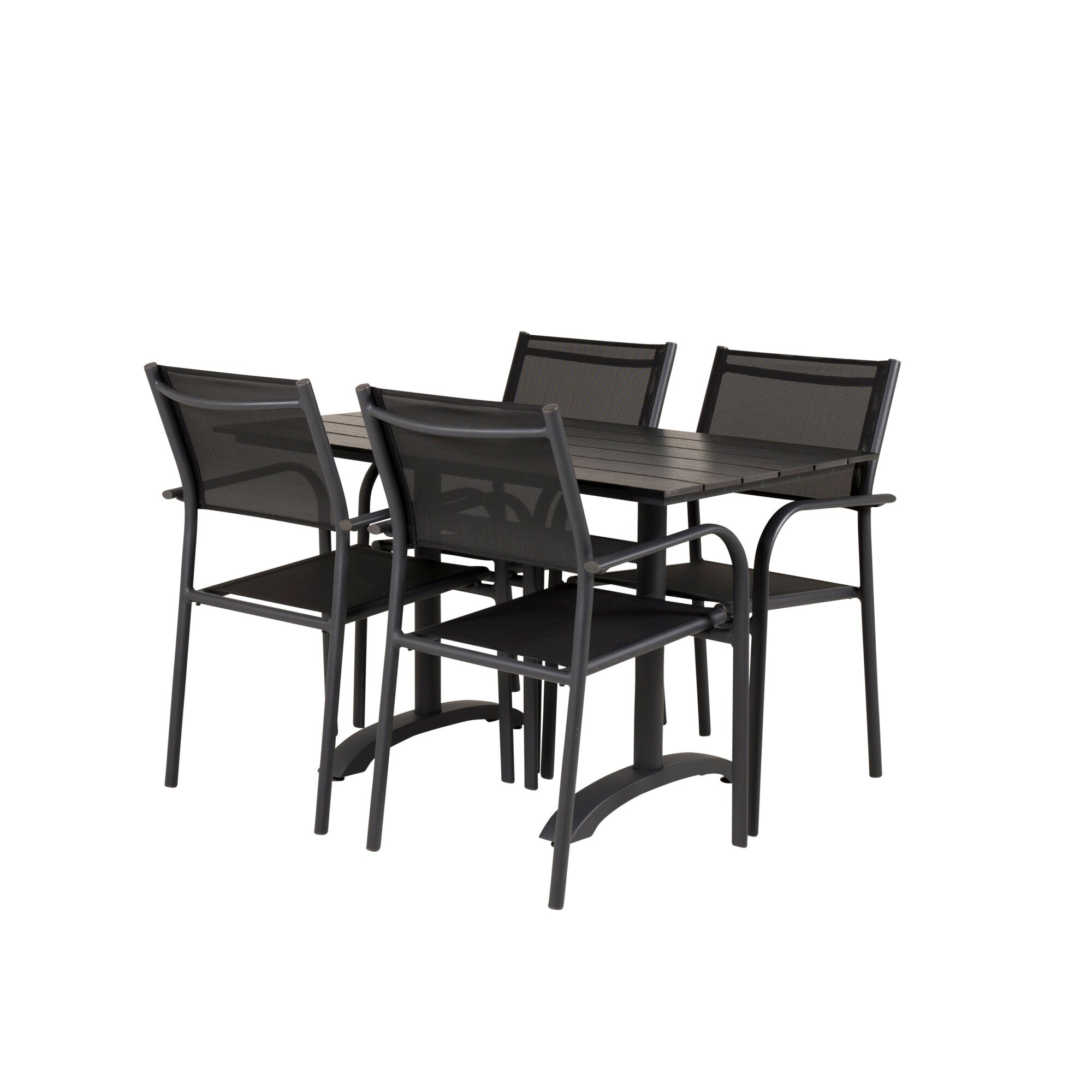Denver Café Table 120*70 - Černá Alu / Černá Aintwood+Santorini křeslo (stohovatelné) - Černá alu / Černá Textilene_4