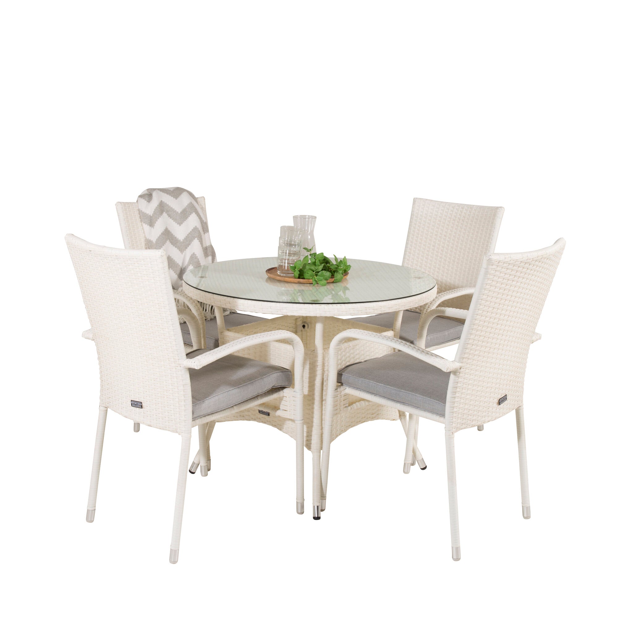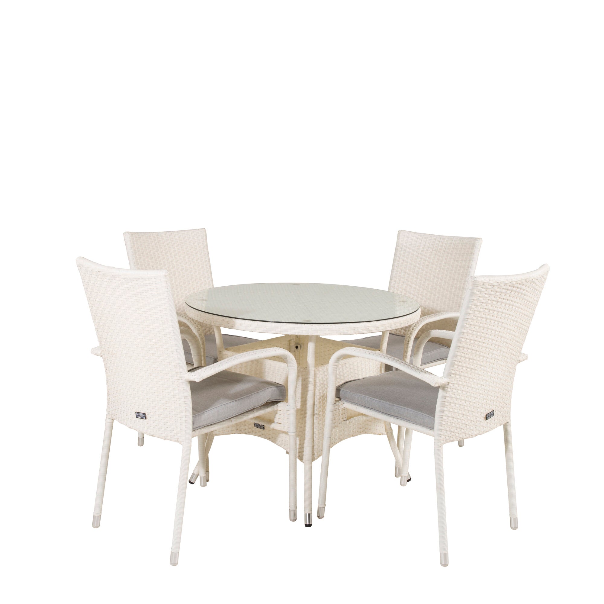 Jídelní stůl Volta - Bílá - ø90+Malin Područka s polštářem - Bílá / Šedá cushion_4