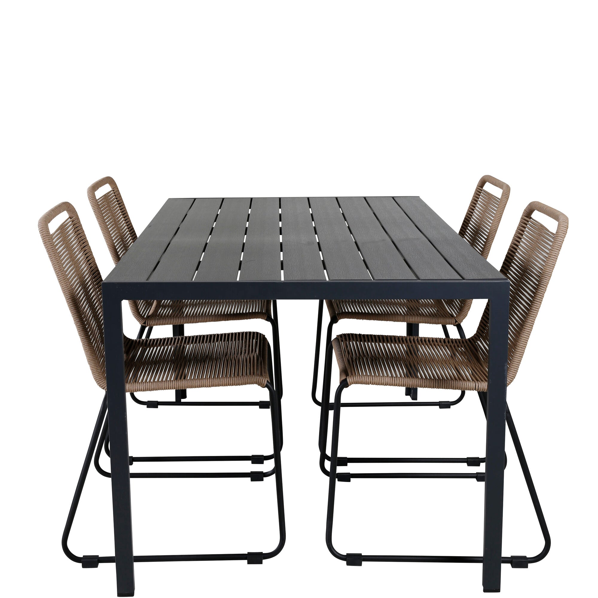 Break Table 150*90 - Black/Black+Lindos Stohovací židle - Black Alu / Latte Rope_4