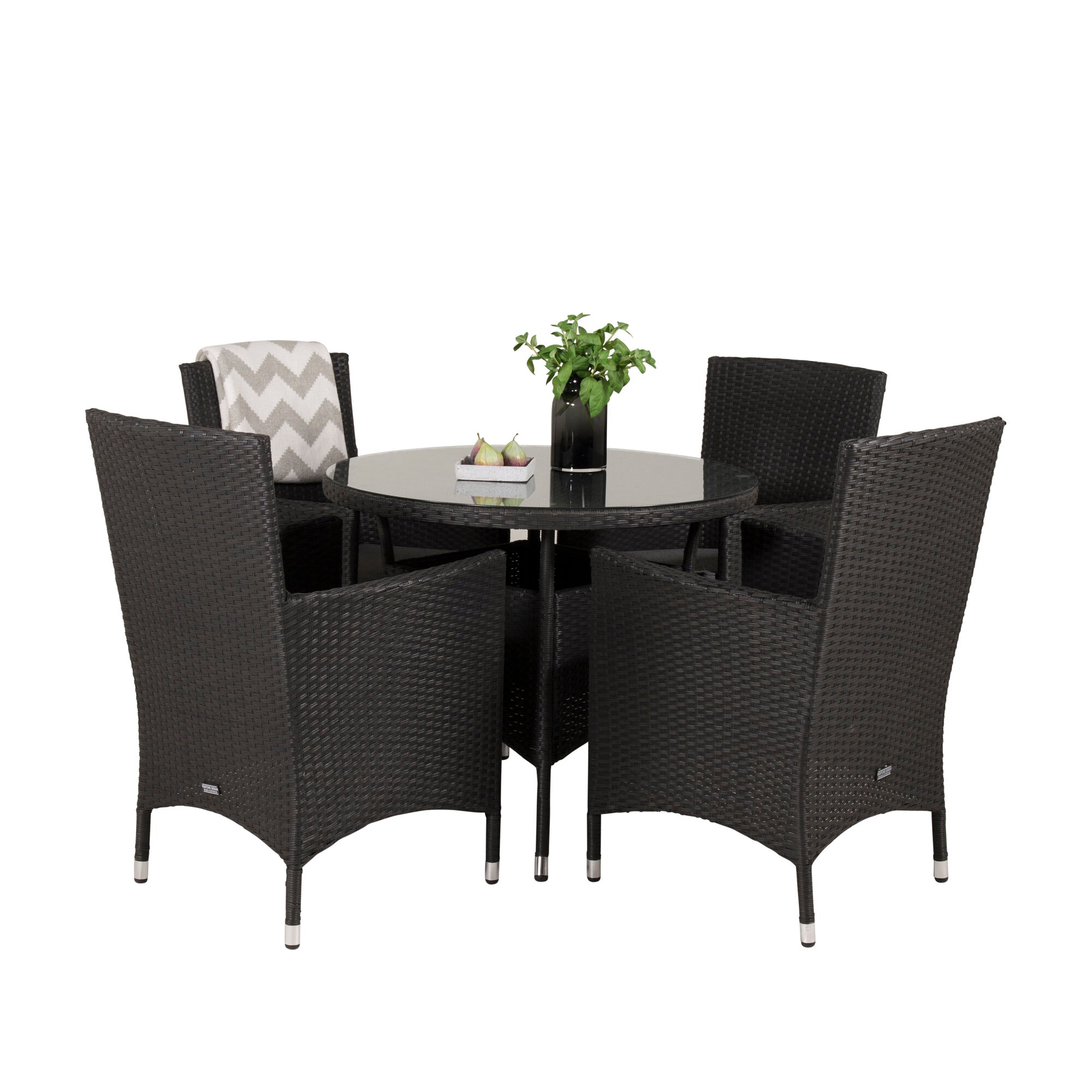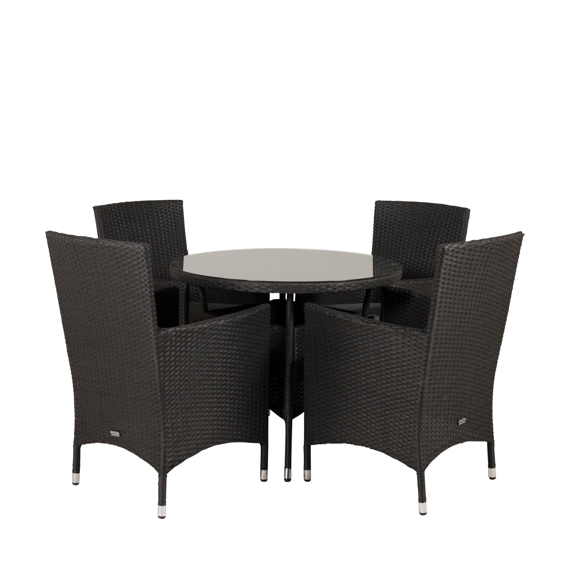 Volta - Stůl - 90 ø - Černá proutěná/skleněná deska (1) + Malin - Jídelní židle - Černá