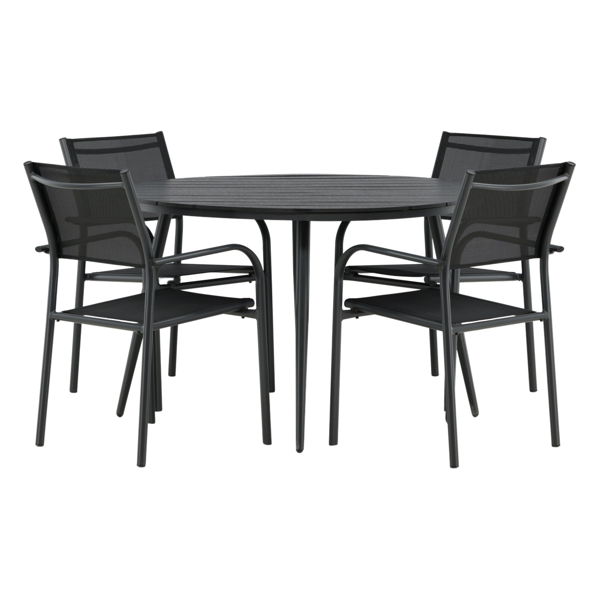 Break - Jídelní stůl kulatý - Černá / Černá - Alu / Aintwood - 120ø _1+ Křeslo Santorini (stohovatelné) - Černá alu / Černá textilie _4