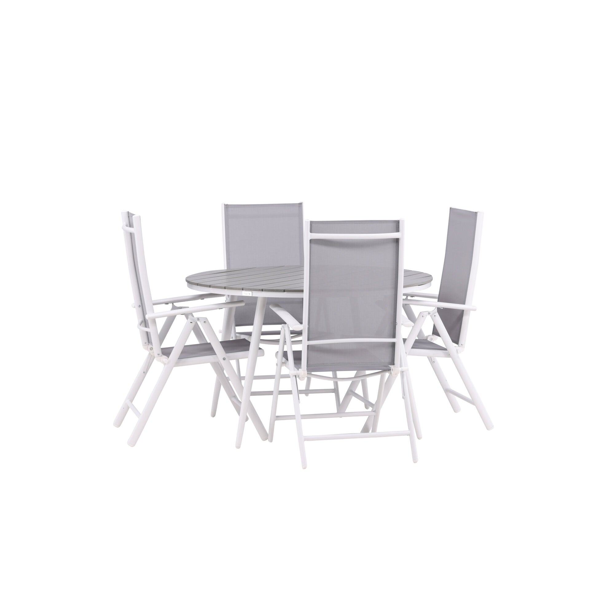 Break - Jídelní stůl kulatý- Bílá / Šedá - Alu / Aintwood - 120ø _1+ Break 5:pos Židle - Bílá/Šedá _4