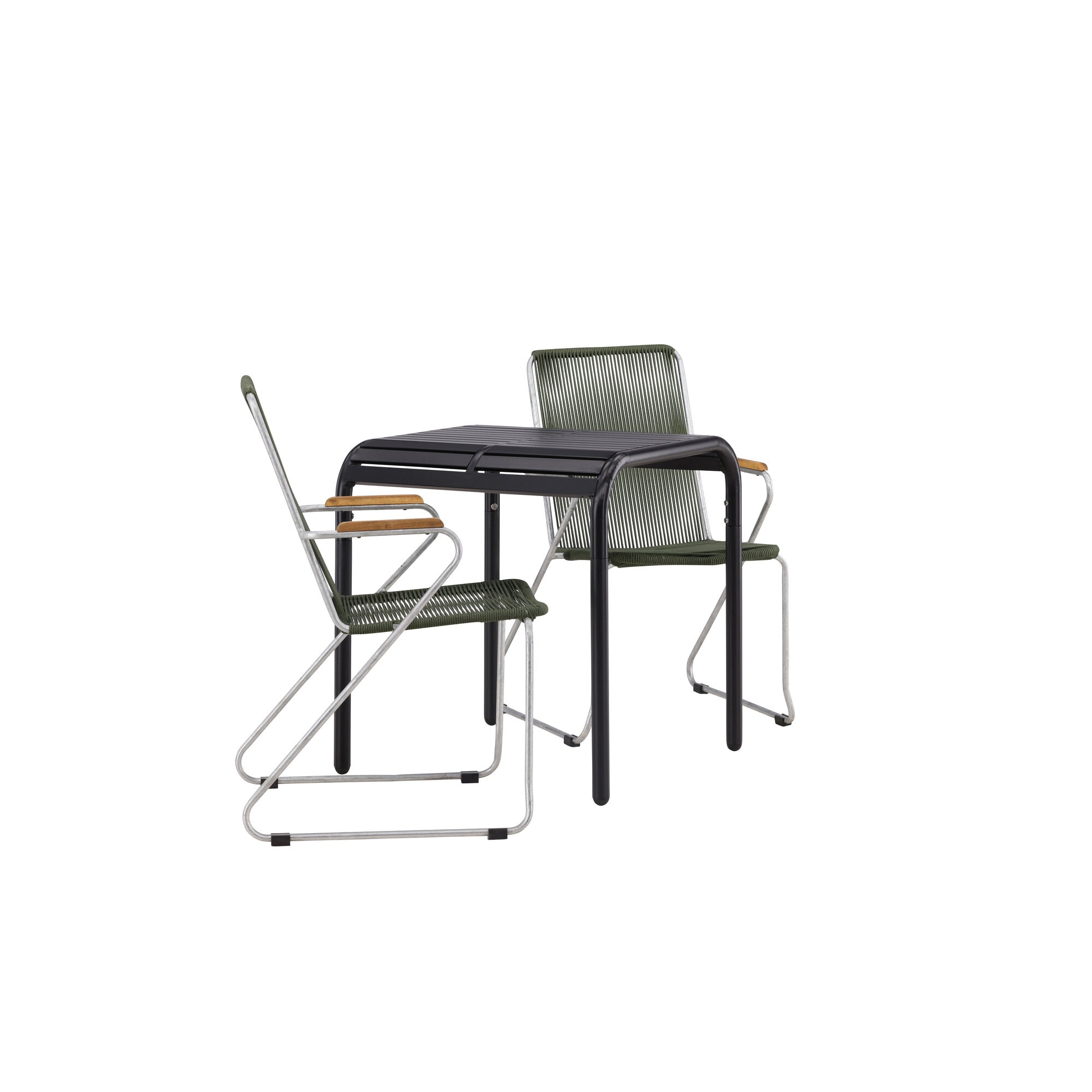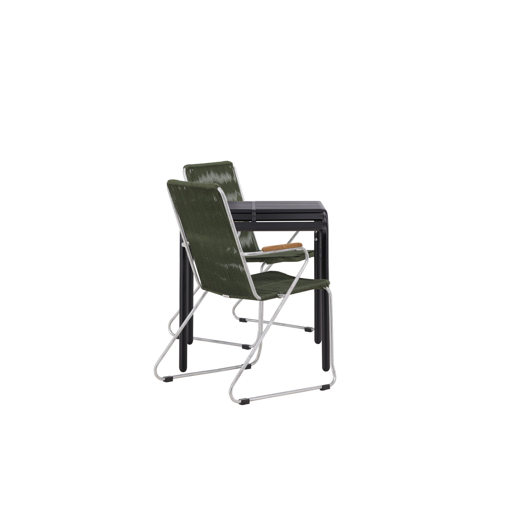 Borneo Cafetable Hliník - Černá / Kvadrat 70*70* + Bois Jídelní židle Ocel - Stříbrná / Zelená lano _2