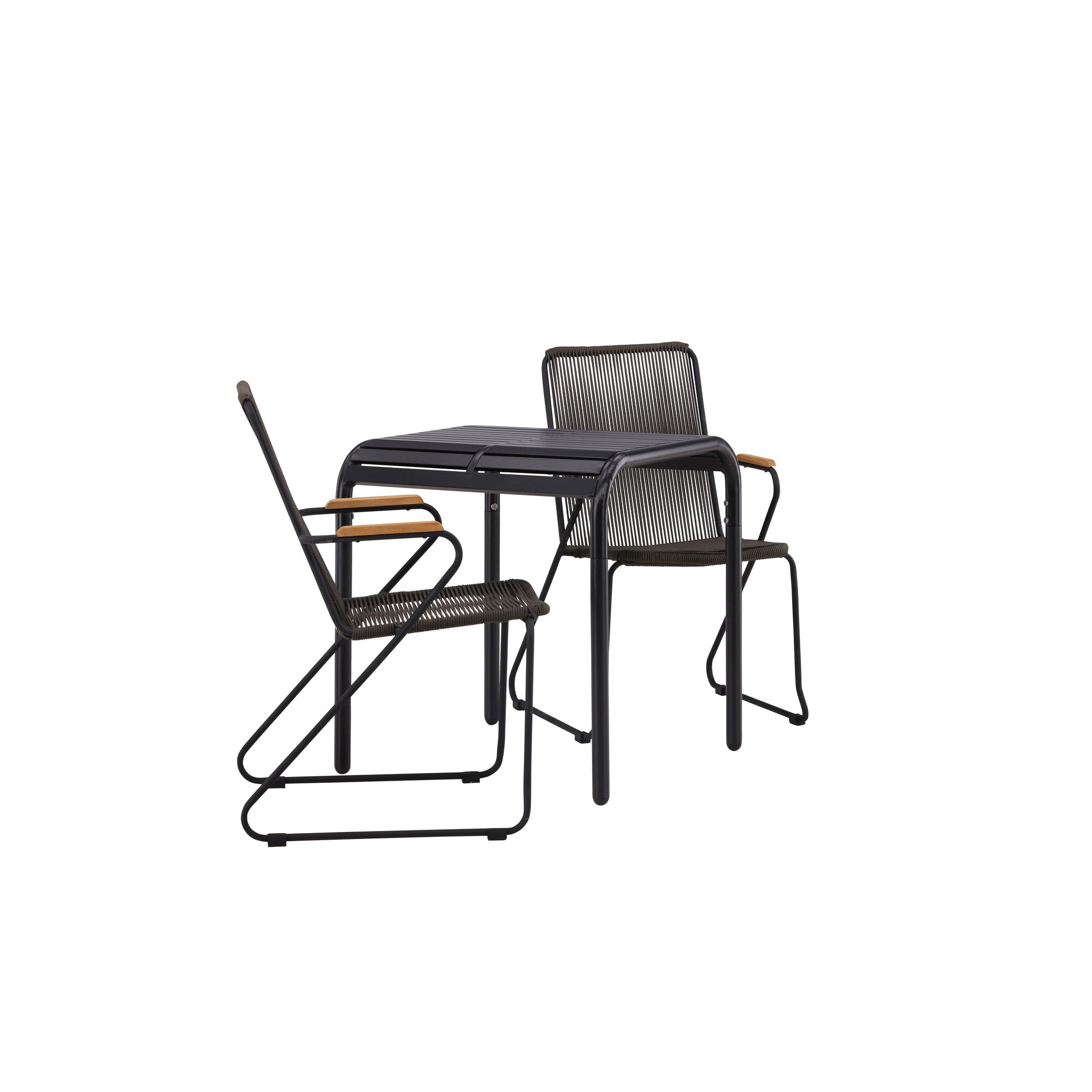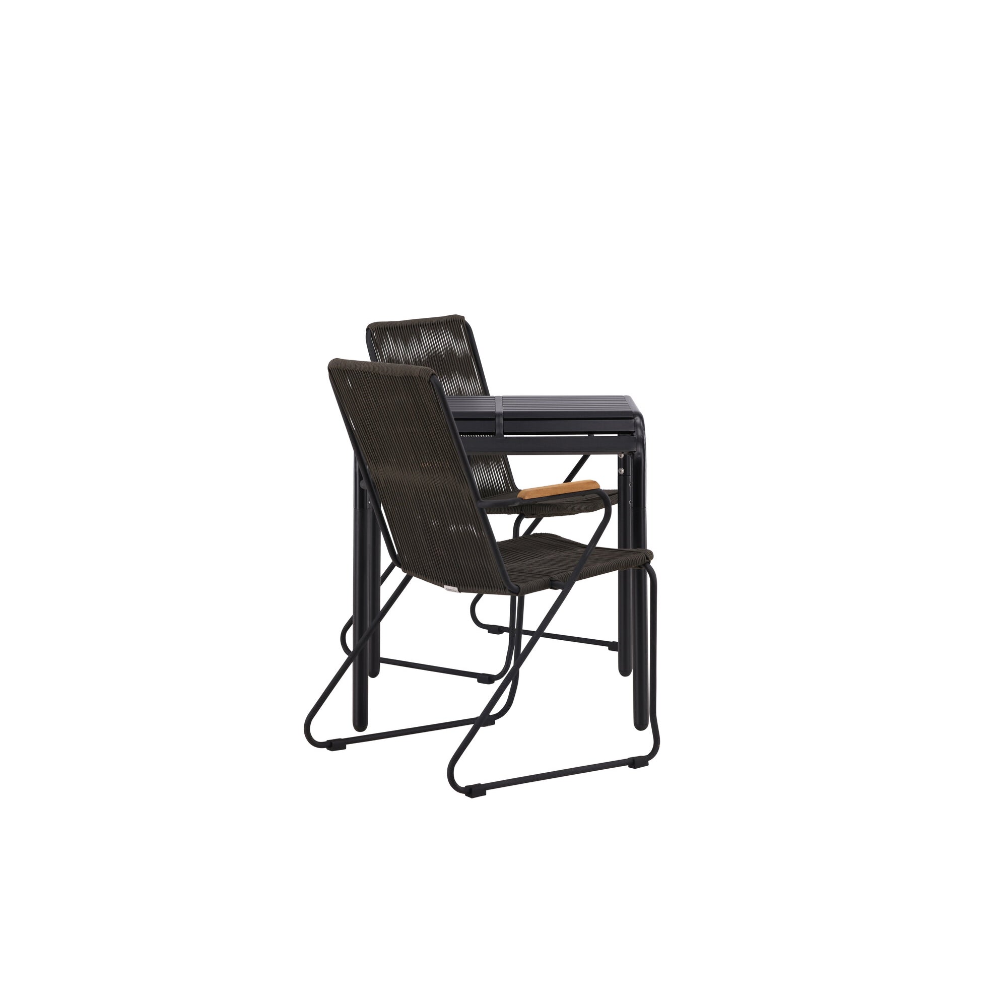 Ghana - Skládací stůl - Natural - Teak - 70*70cm _1+ Křeslo Lindos - Black Alu / Black Lano _2